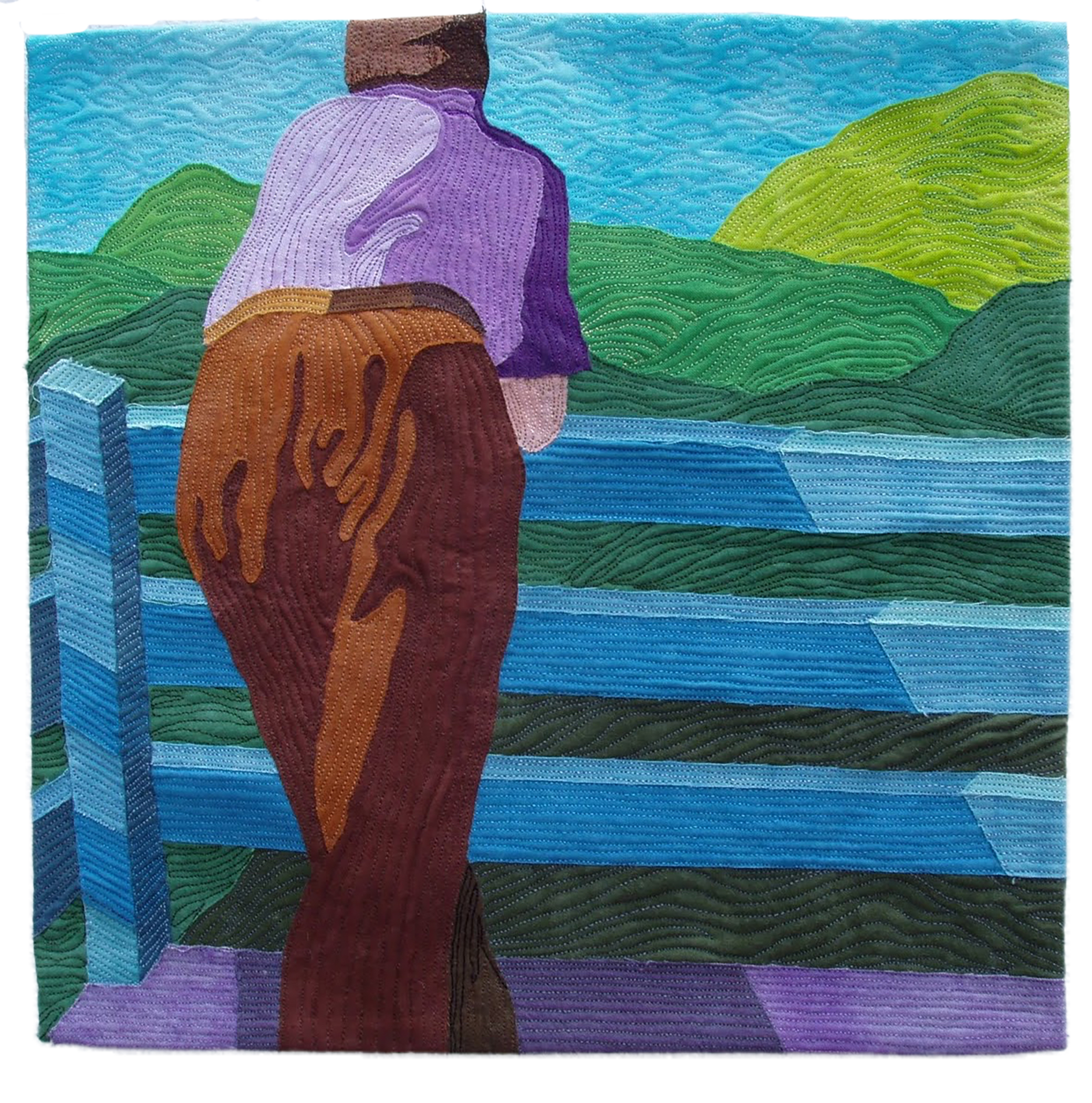 One of the early pieces from my continuing series of figures. The series consists of designs from either my original drawings or photographs taken by me and my family members. "Uncle Mike" was developed from a photo I took. Quilts is this series are machine appliquéd and mostly machine quilted.