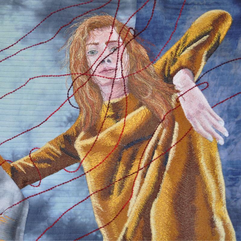Dyed, machine pieced, machine appliquéd, free motion embroidered, pulled thread work, hand embroidered