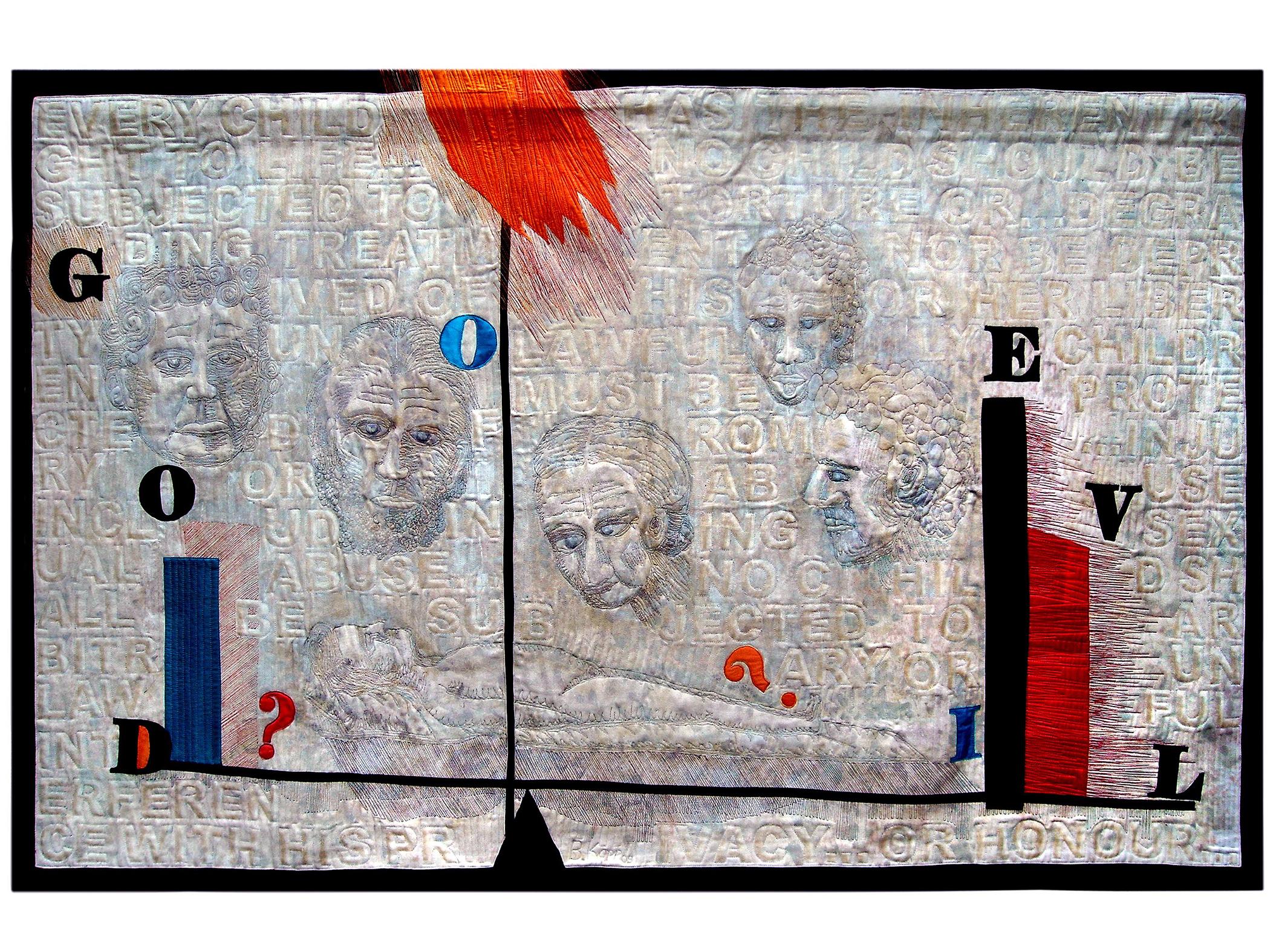 cotton, silk, acrylic paints,oil-paint sticks, cotton, silk and embroidery threads