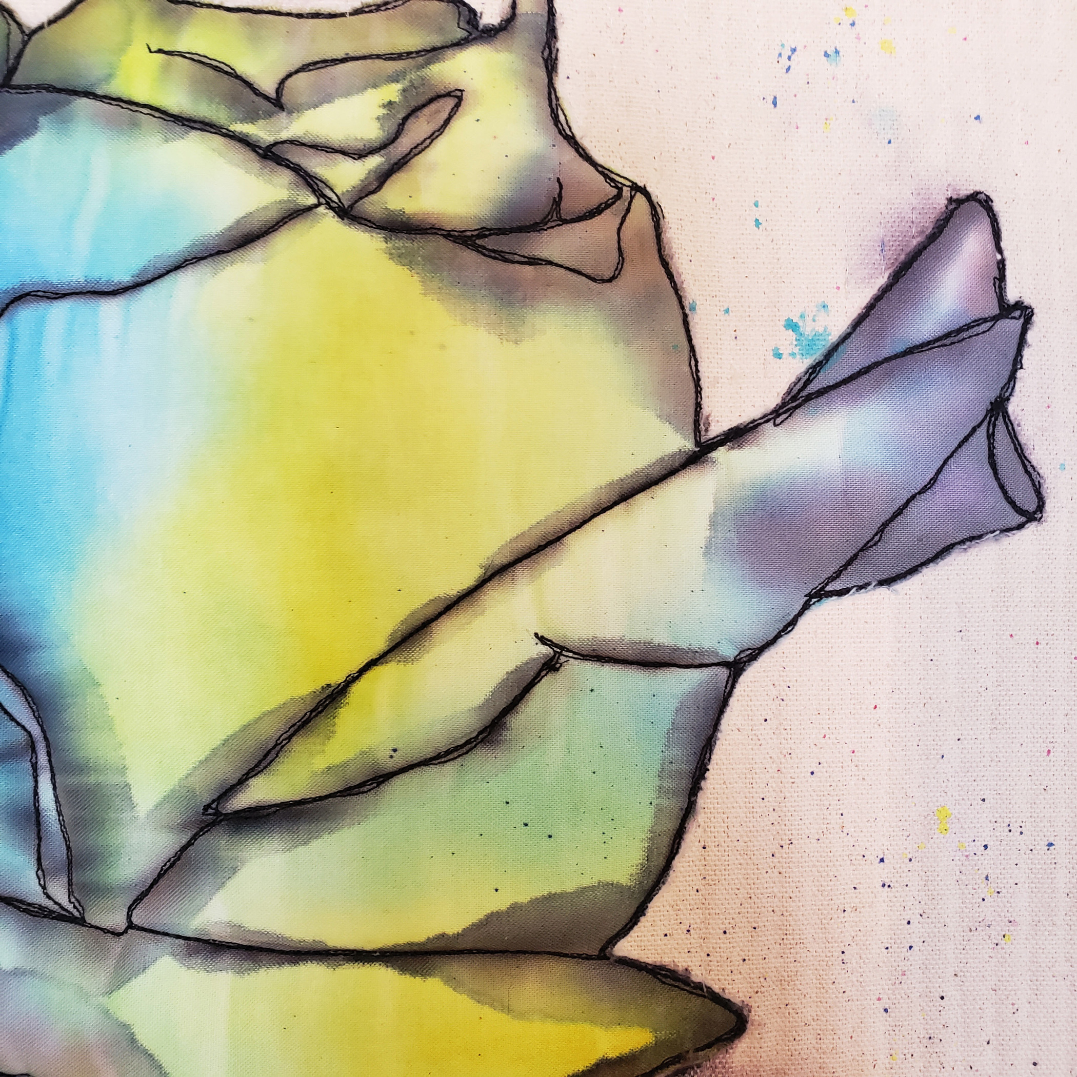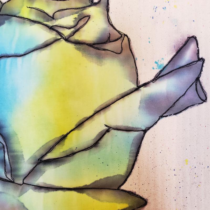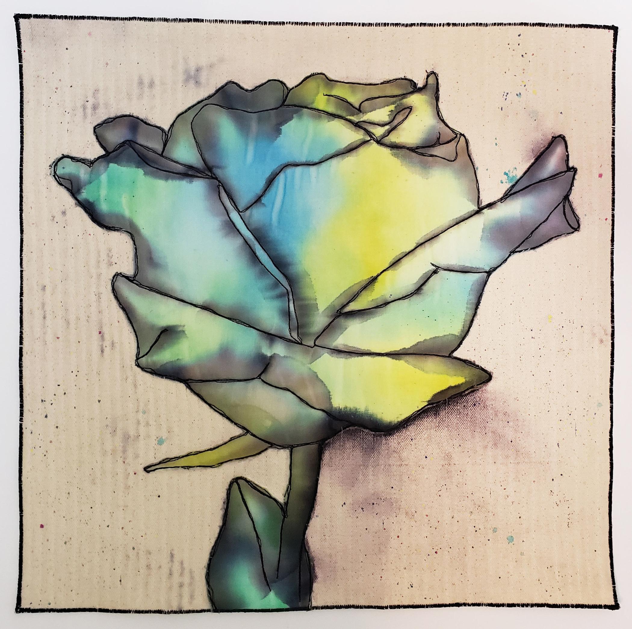 Browse the Collection Urban Rose Lorraine Conway Size 14 in x 14 in (36 cm x 36 cm) Year 2020 Gallery Street Art (SAQA Virtual Gallery) Price $0.00 Buy Now >> A rose is usually depicted as soft, sweet, delicate, beautiful, fragrant. This urban rose is gritty and tough, with a graffiti-like quality, while still being beautiful in its own right.