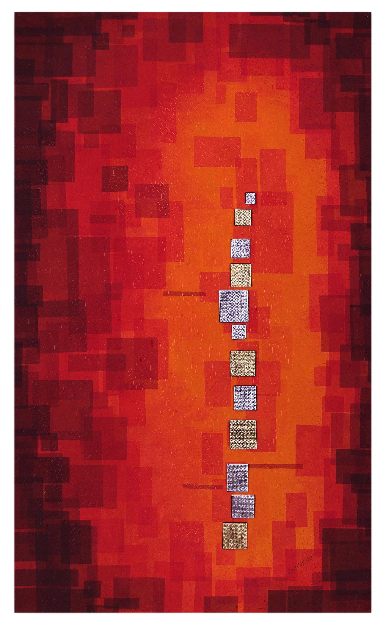 During this decade, my evolution was characterized by a shift from commercial to hand-dyed fabrics and by my growing fascination with nuanced contrast to create an illusion of depth. "Veni Sancte Spiritus," which is covered with stab stitches, is the only piece I've ever embellished with hand stitching.