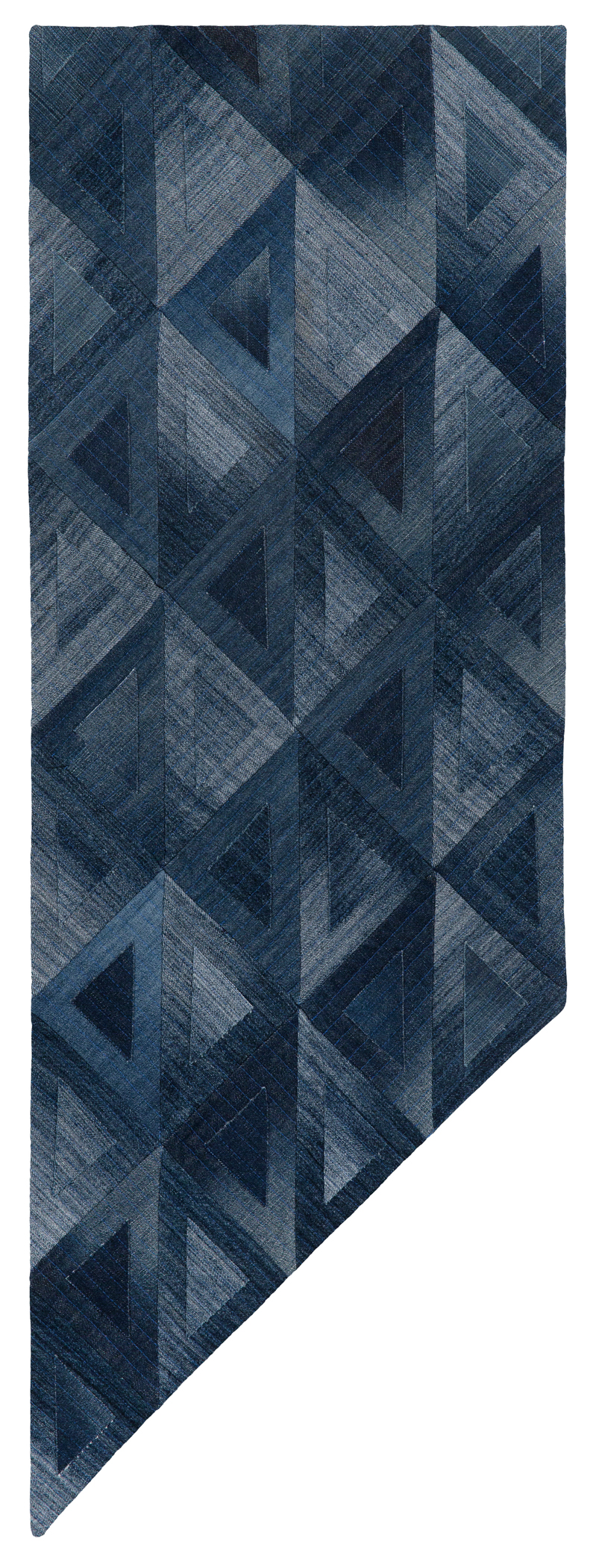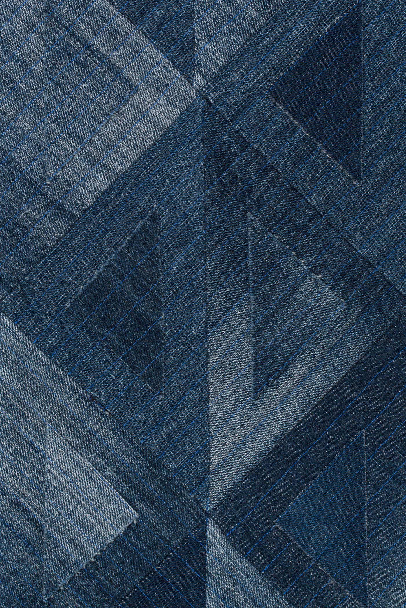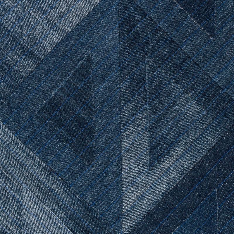 There is a water sculpture in the forecourt of the High Court in Canberra with water rippling over square cut stone. In this piece, the grain of the denim, and the muted color and cut, is used to evoke the rigid structure and the soft flow of water over stone.