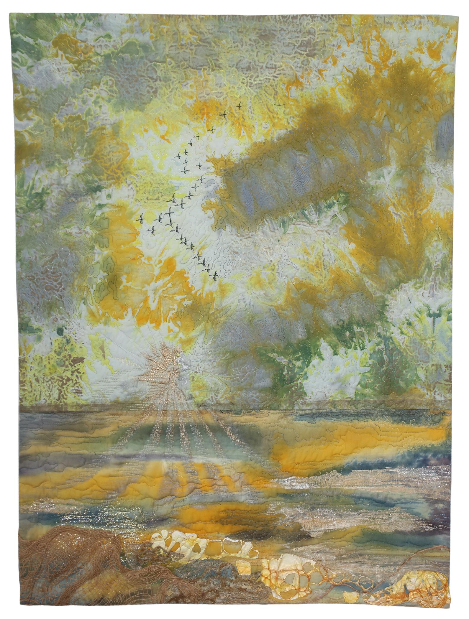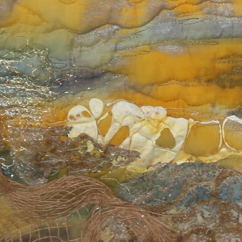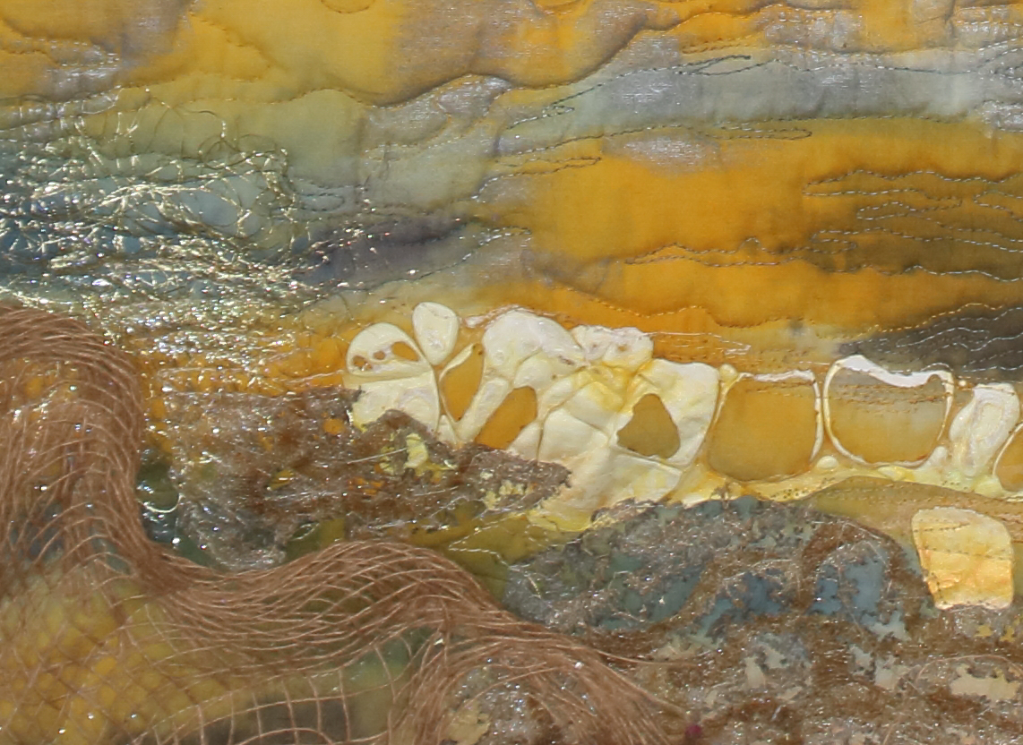 Fabrics made by snow paints have been used for the background. For the Wadden coast I used paint sticks, tyvek and jute.