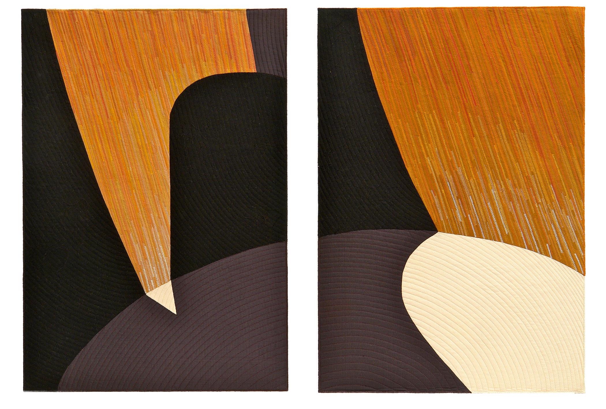 Various silks, salvaged kimono fabric, cotton canvas, cotton batting, thread,
