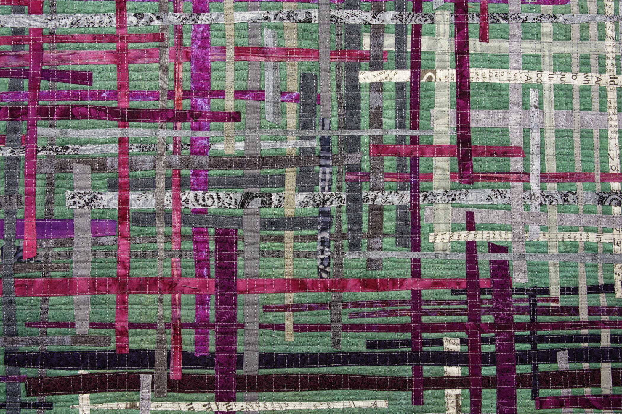 Hand dyed and commercial cotton fabric, cotton batting, assorted threads
