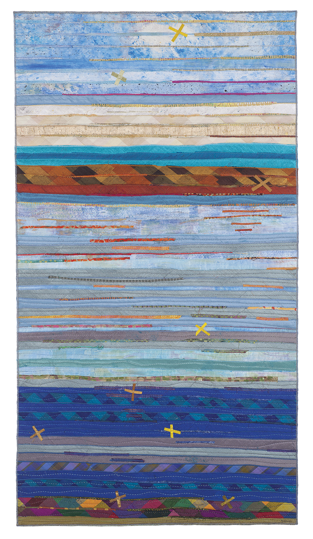 Hand painted and commercial silks and cotton strips.