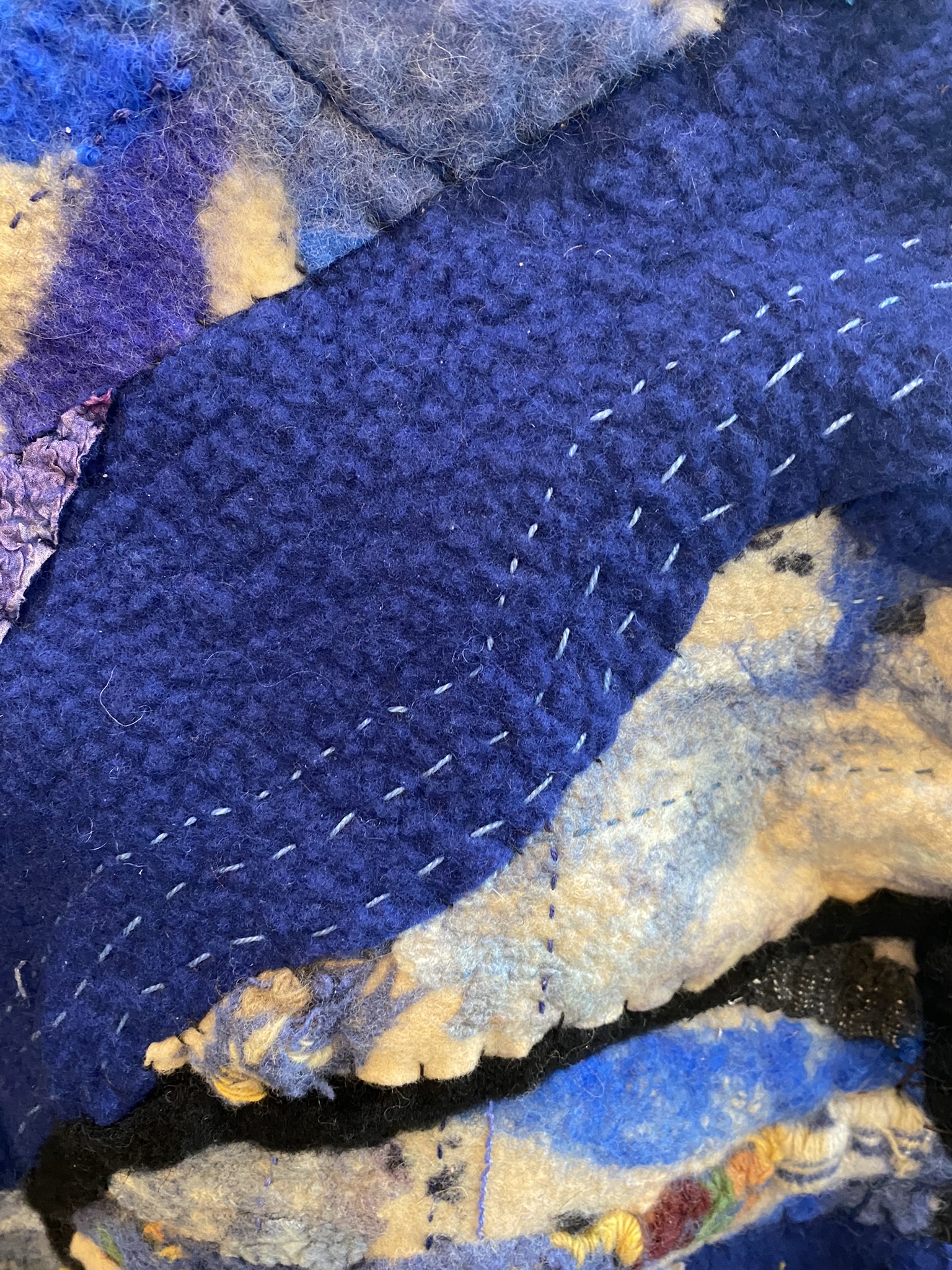 Wet felting, nuno-felting, hand stitching