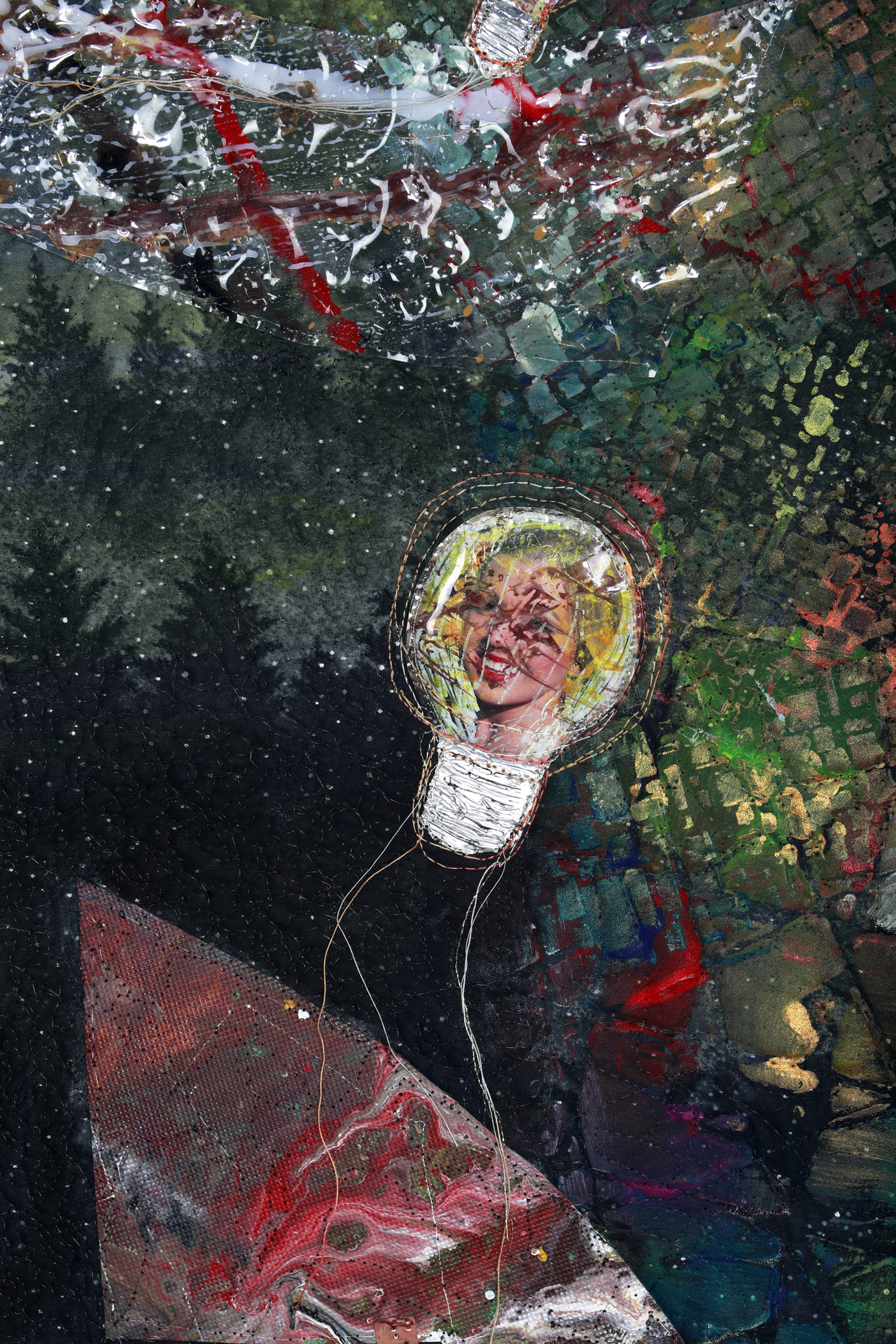 Painted, stenciled, hand dyed, acrylic poured, machine appliquéd, hand and machine quilted