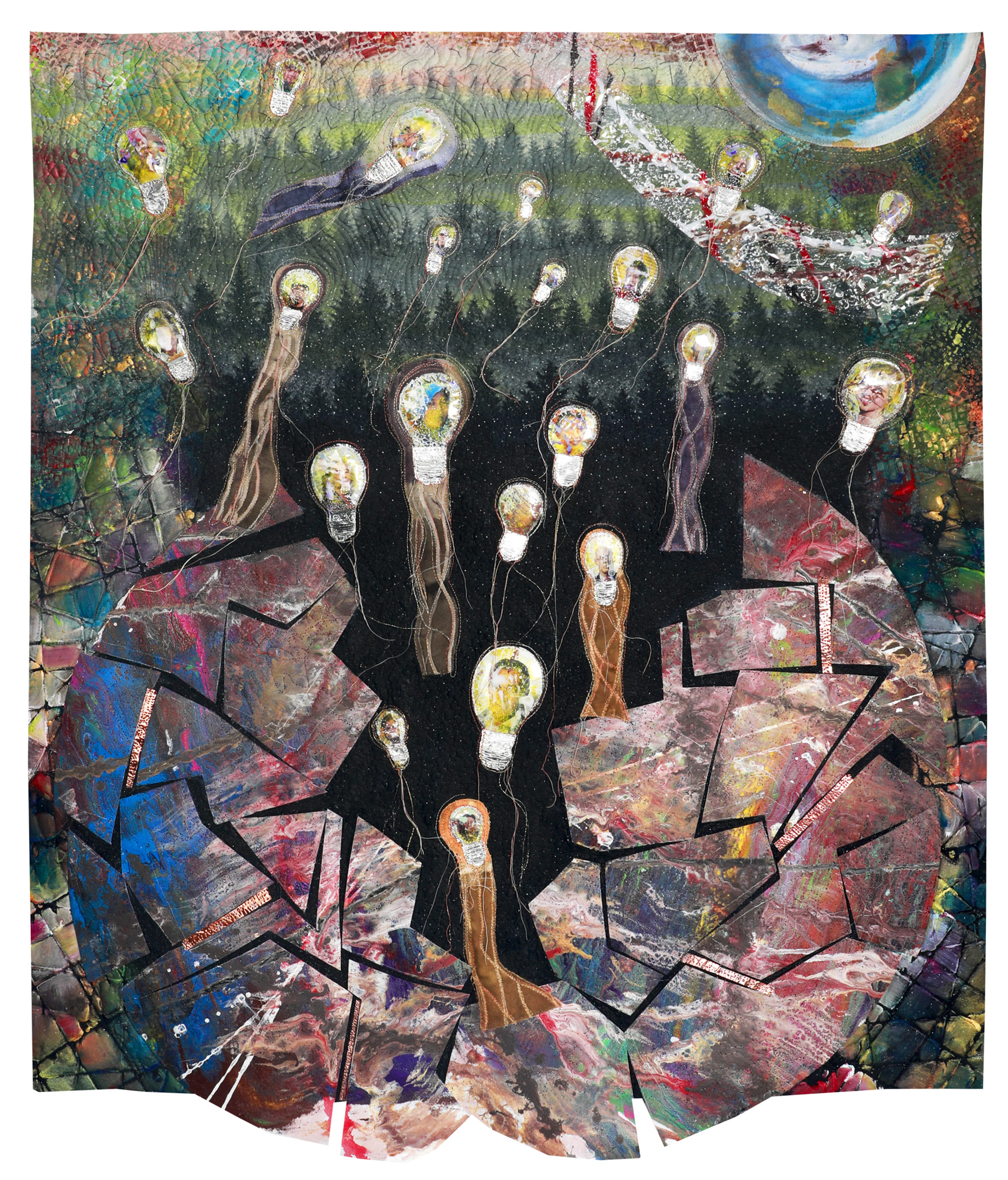 We live in a shattered, wounded world where we are all looking for hope. We are now going through the light at the end of the tunnel. This quilt is based on the proposition that we cannot only expect the world to change around us and become more pleasant and livable. We also need to seek change within us. There is no going back to an old life—we have to build a new one. That new world can only come true with collective awareness and ethics that emerge from the ruins of the old world. Each person with this awareness can move forward and light the way. We are all lights.