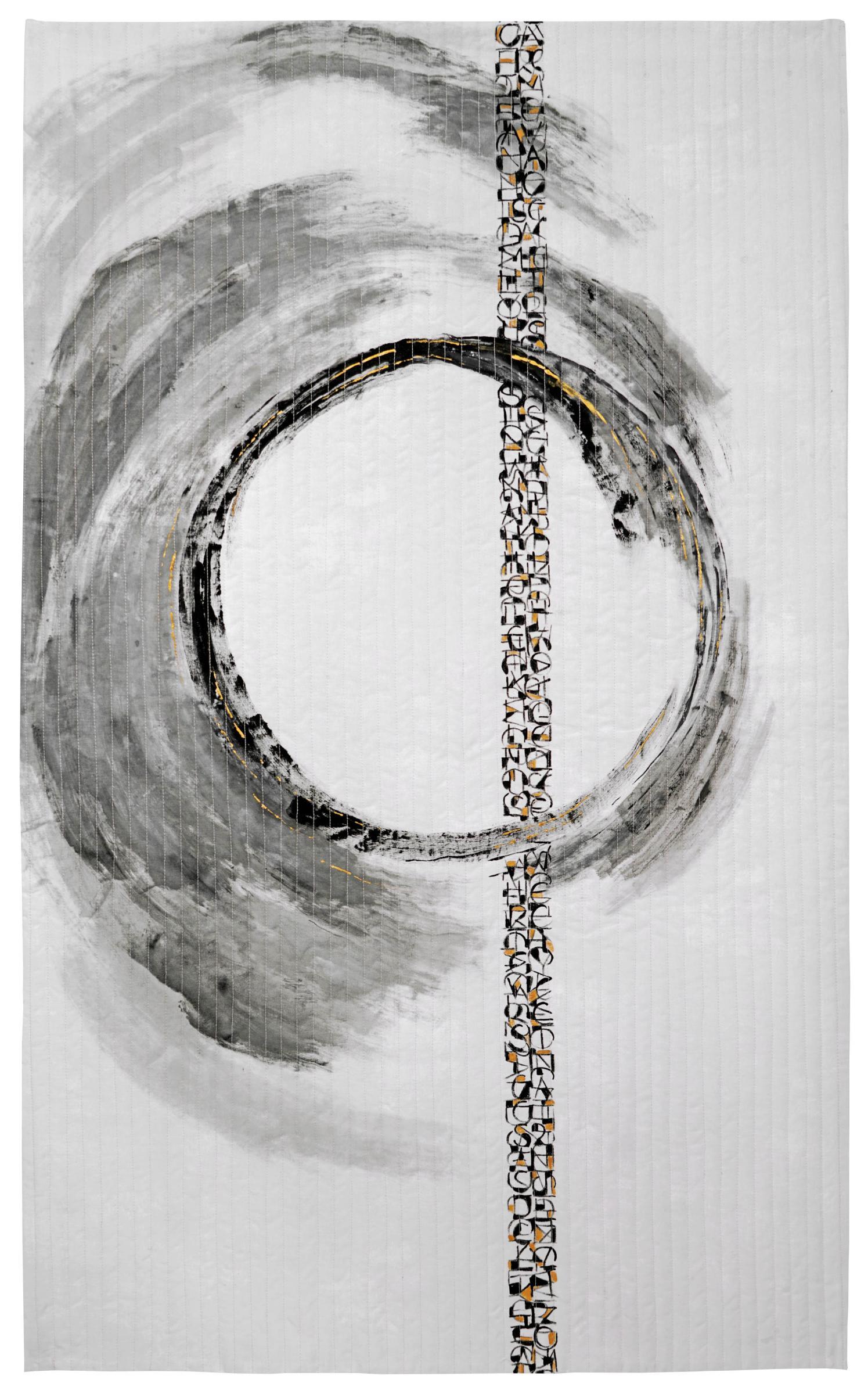 While the center of Whirlwind draws your eye, the outer rims leave room for wonder. Where will the storm go? How long until it fades? Is it fading as I watch? The empty space in the middle is intriguing. What is there? What WAS there? Did the black and gold emerge from the white? The center space seems to offer refuge from the swirling whirlwind.