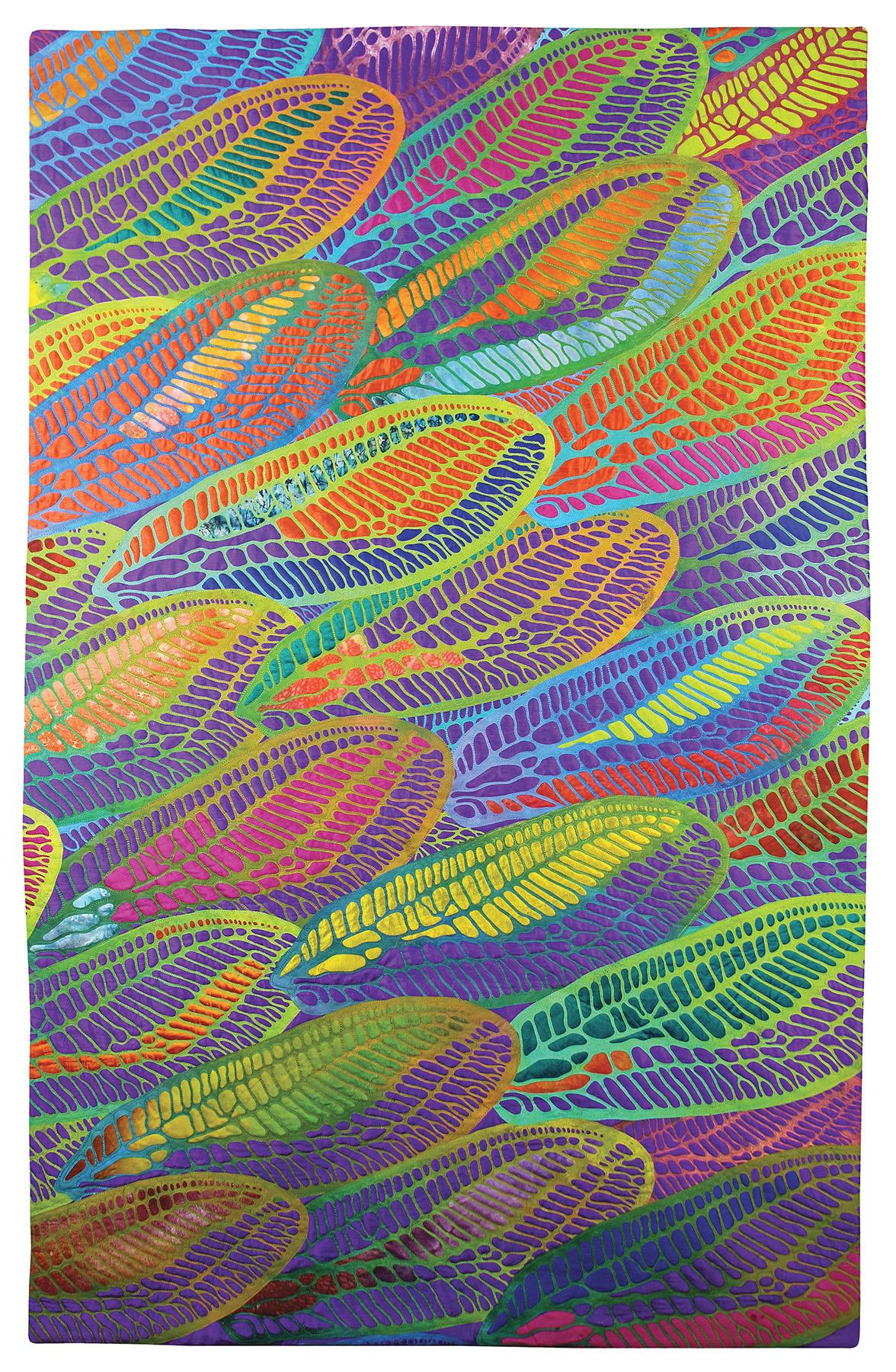 I drew out a pattern from the wing veining, and used it as a pattern to frame brilliantly colored silks.