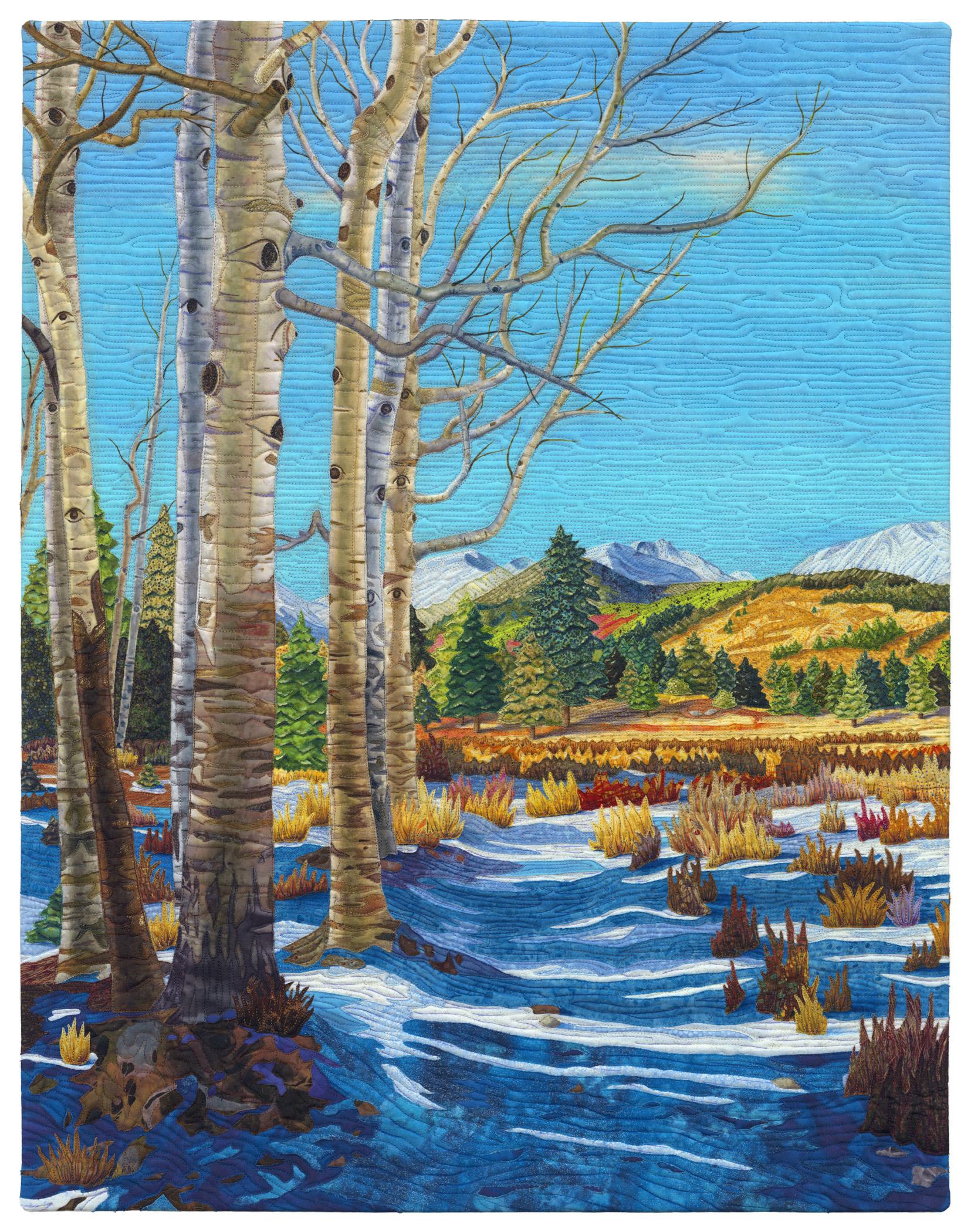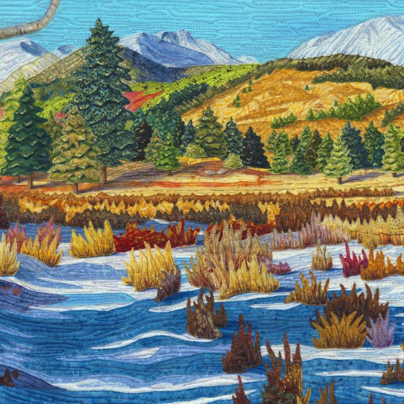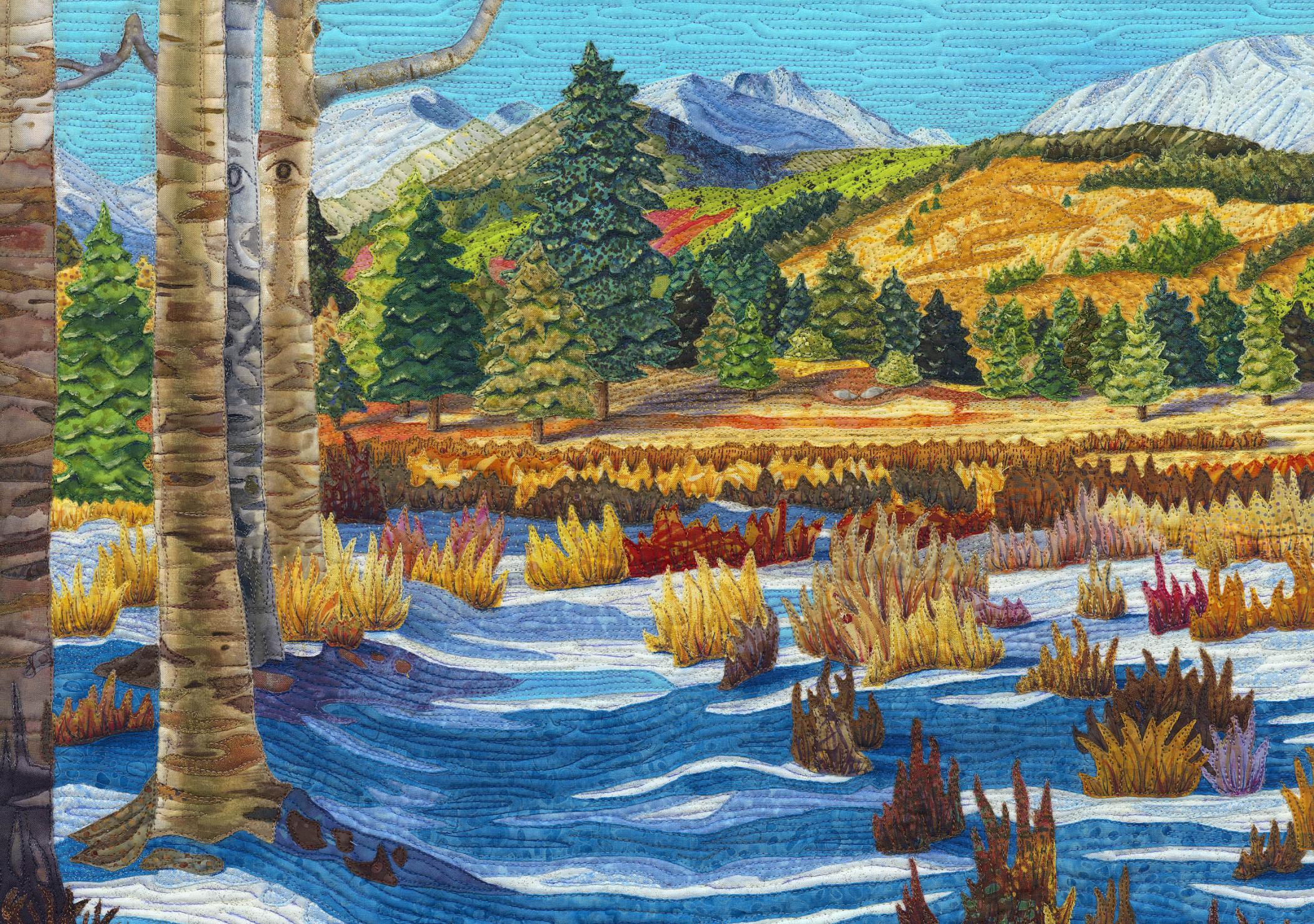 In creating Winter Song, I wanted to create a feeling of peace, beauty, and warmth, despite the season of snow. Spending time in Nature calms my racing mind and bolsters my spirits. It helps me to refocus on what’s important and allows my creativity to surface. I’m hoping you’ll feel some of that while engaging with Winter Song, or something else that is healing or brings warmth to your heart. This piece was inspired by a hike in Rocky Mountain National Park.