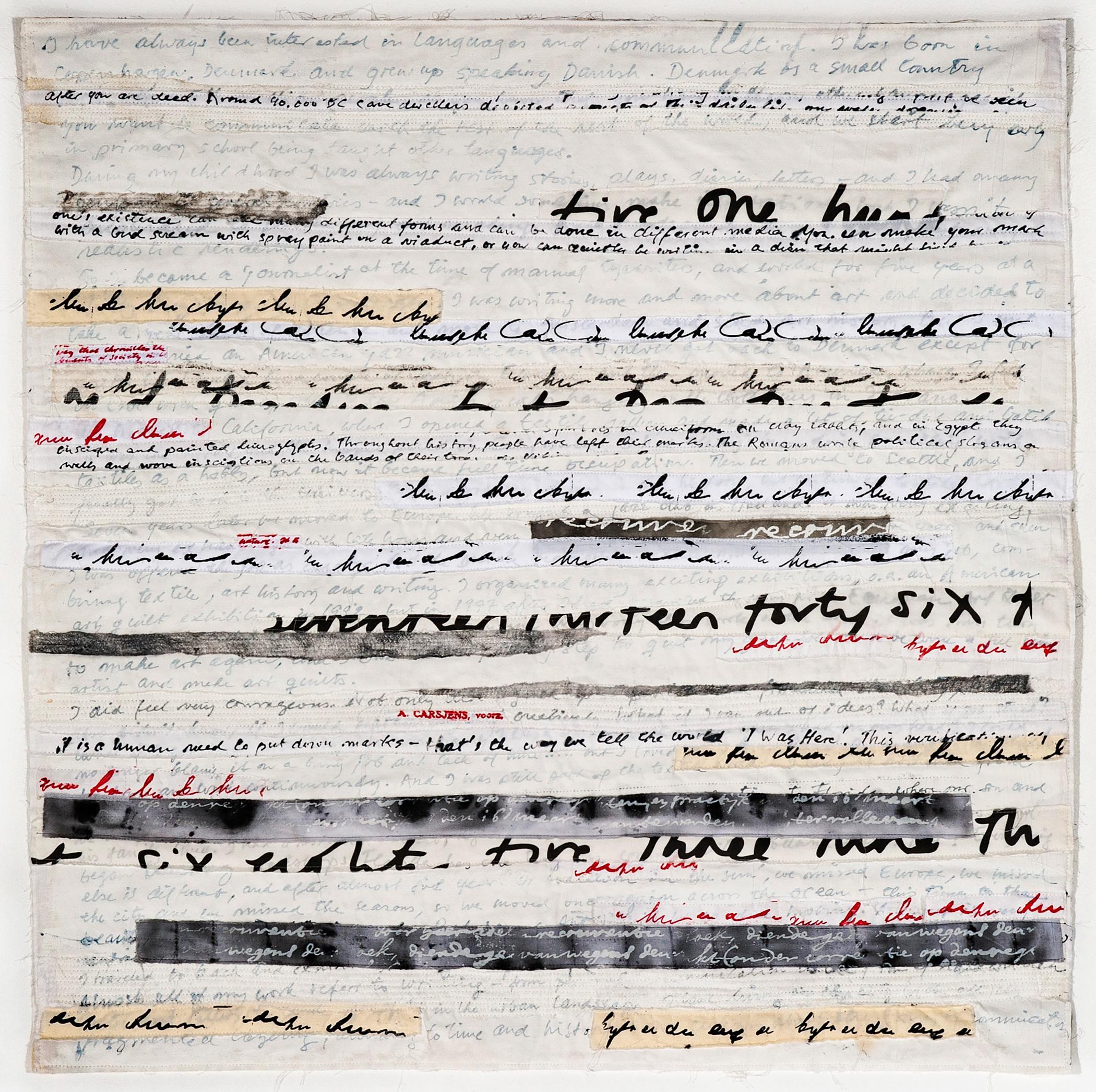 I love words. They have shapes and sounds and they convey meaning. Spoken and written words are the means with which we communicate with each other. I used to be a writer, and now printing and stitching has become a new way of writing for me - a slow intimate process during which one becomes aware of the marking of time.