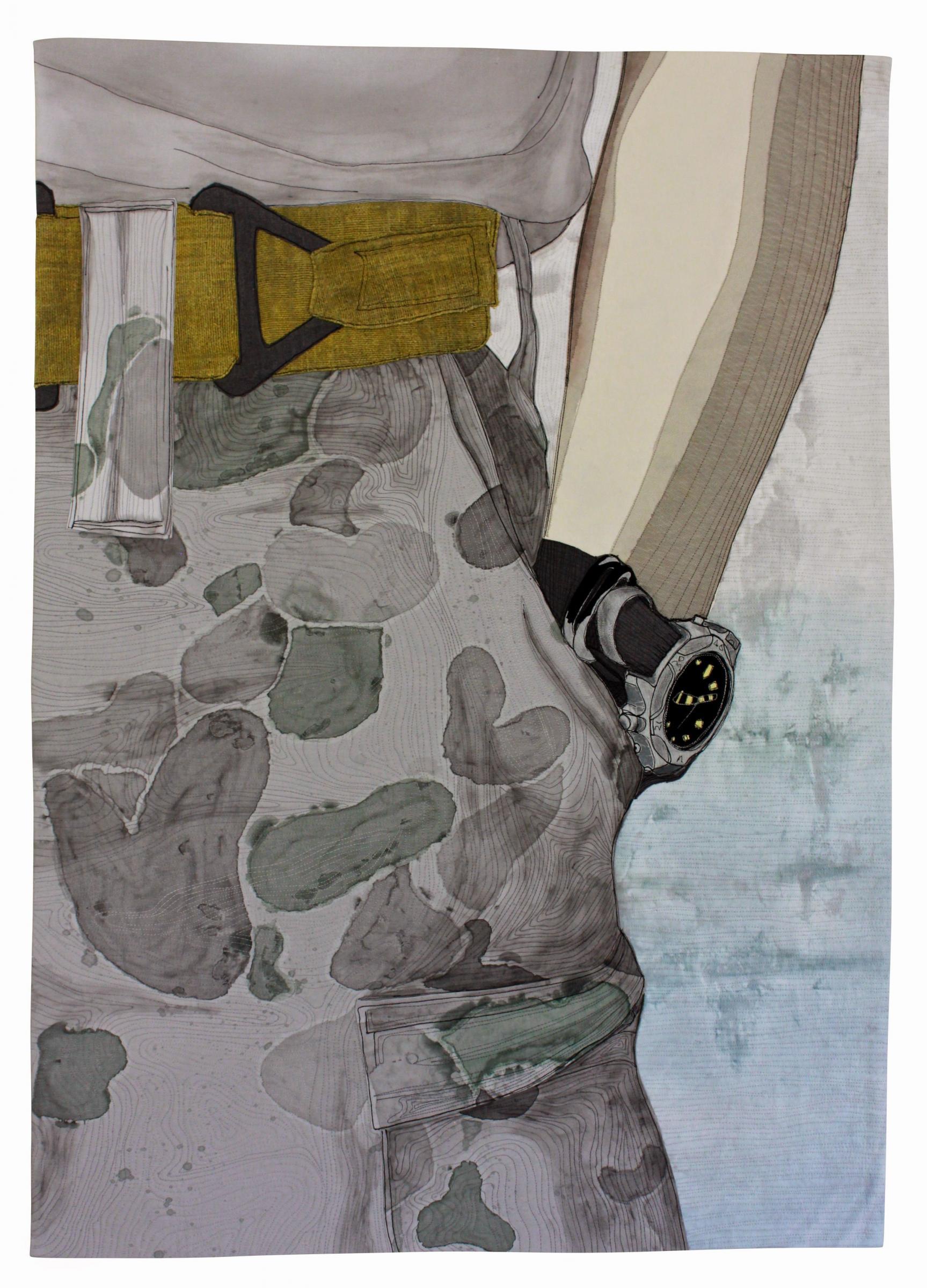 I quickly snapped a few photos one morning of him just getting ready, nothing special. The change of viewpoint offers a glimpse of him, a suggestion of his preparation for his job, and honors his decision to retain a link to his family.