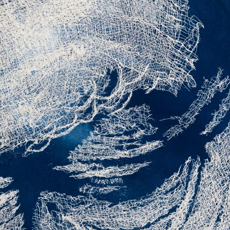 Hand-dyed cheesecloth sculpted with PVA adhesive, machine-stitched with monofilament thread to hand-painted cotton canvas; soft-mounted on felt