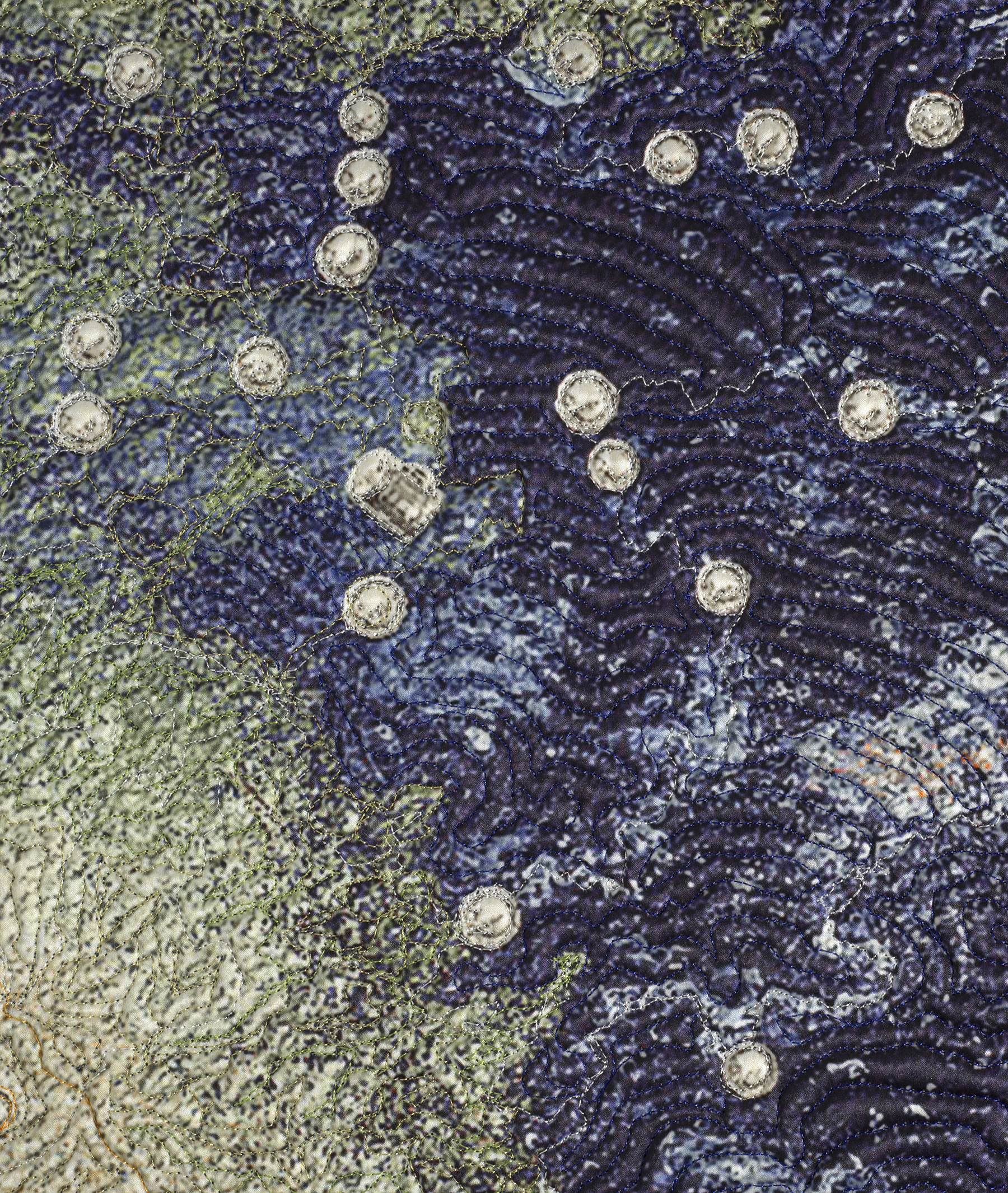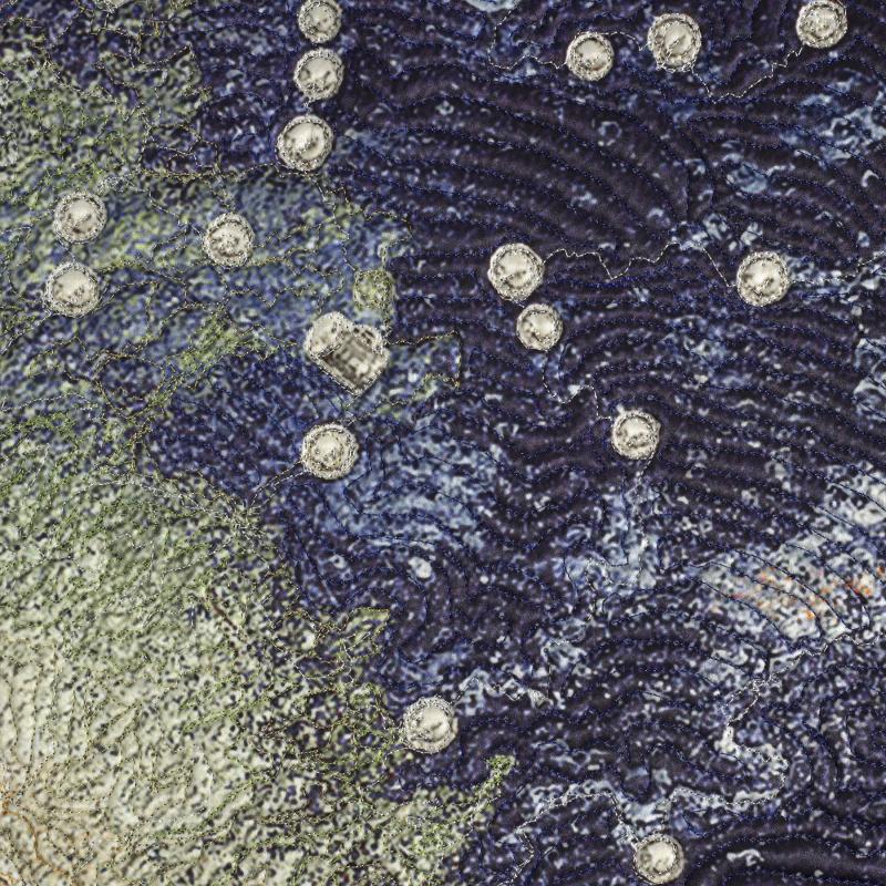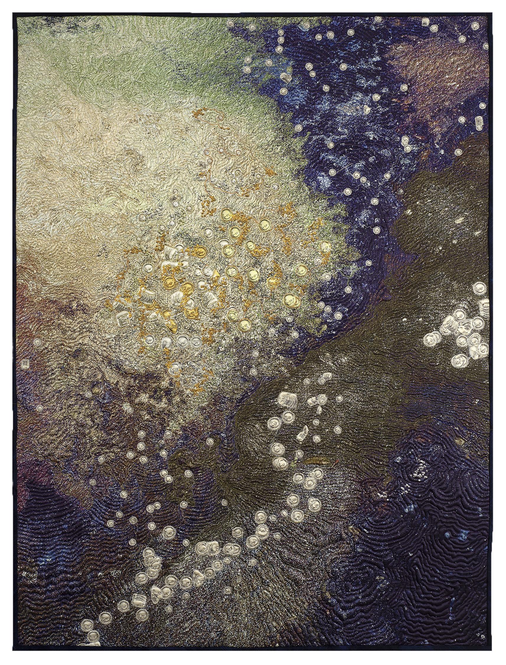 I love going for walks in my neighborhood, and I am constantly taking pictures of anything that captures my interest. I then survey my photographs and highlight the most interesting ones based on their composition and how full of movement and joy they are. Within a ten-minute walk from my home, there is a bridge over a small stream. In winter, this stream freezes into crackled ice brimming with fantastic shapes, bubbles, and watery streaks. Worlds within Worlds began its life as one of my most interesting photographs of this lively, frozen stream.