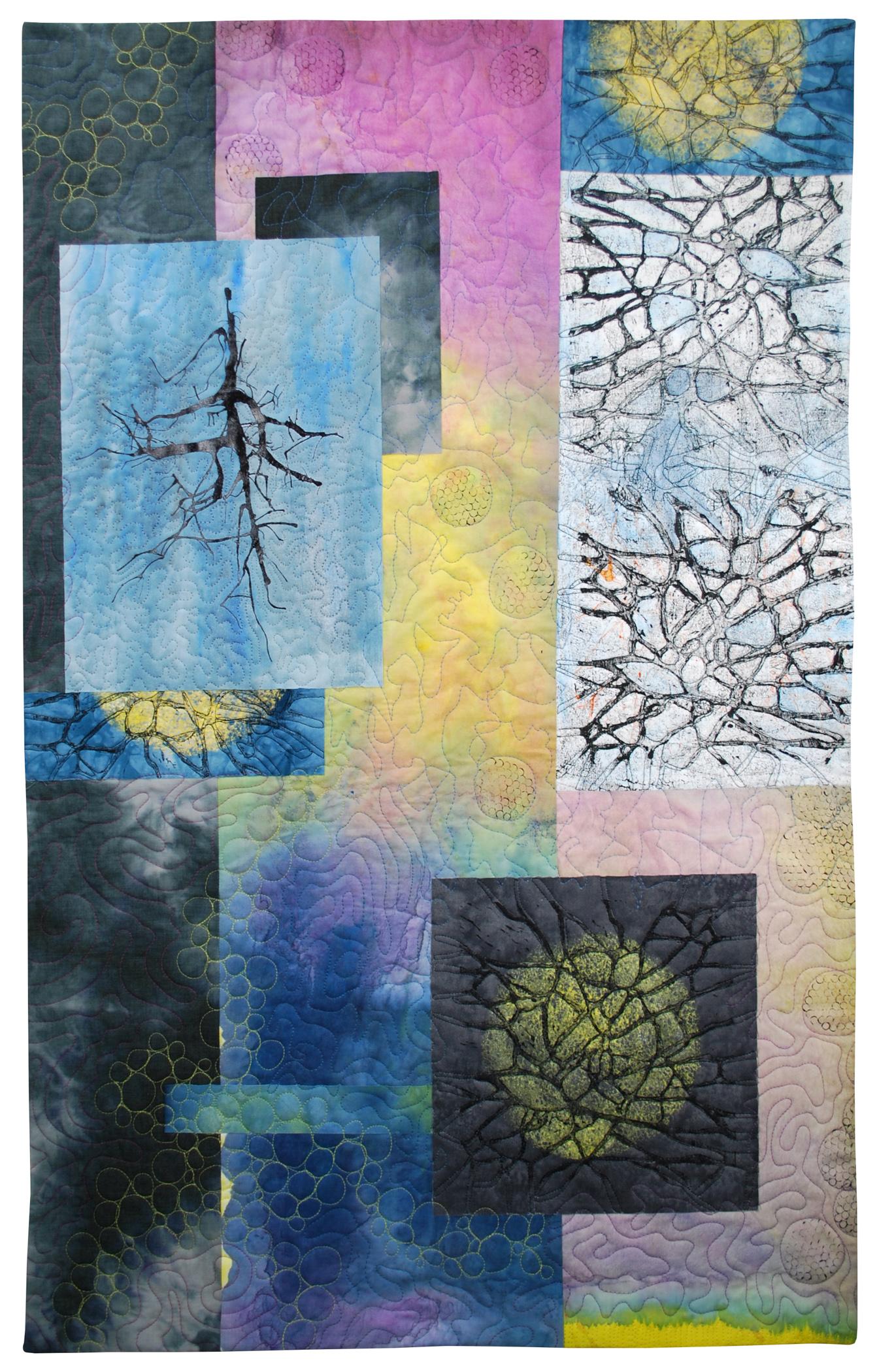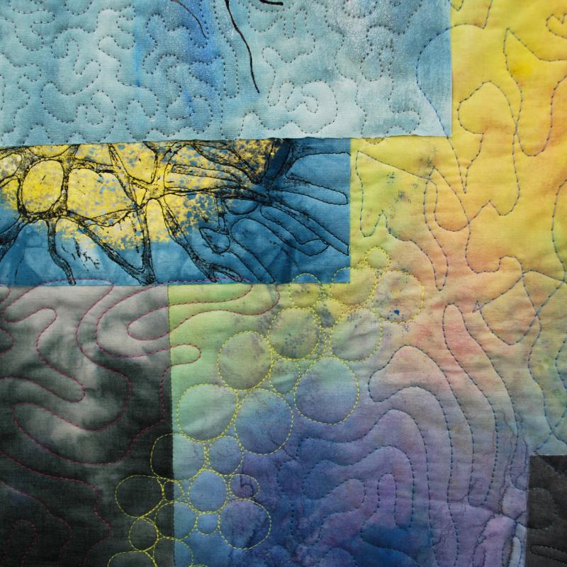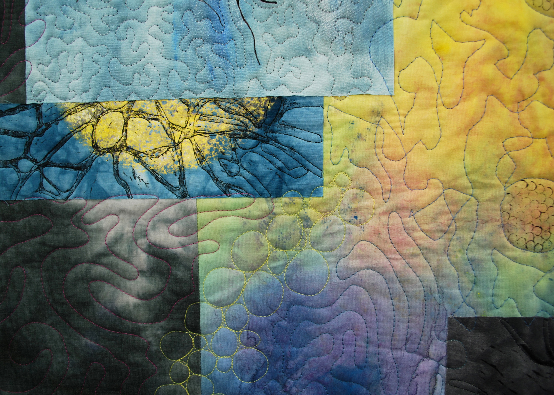Pieced, raw-edge appliquéd, screen printed, painted, dyed, stamped, machine stitched