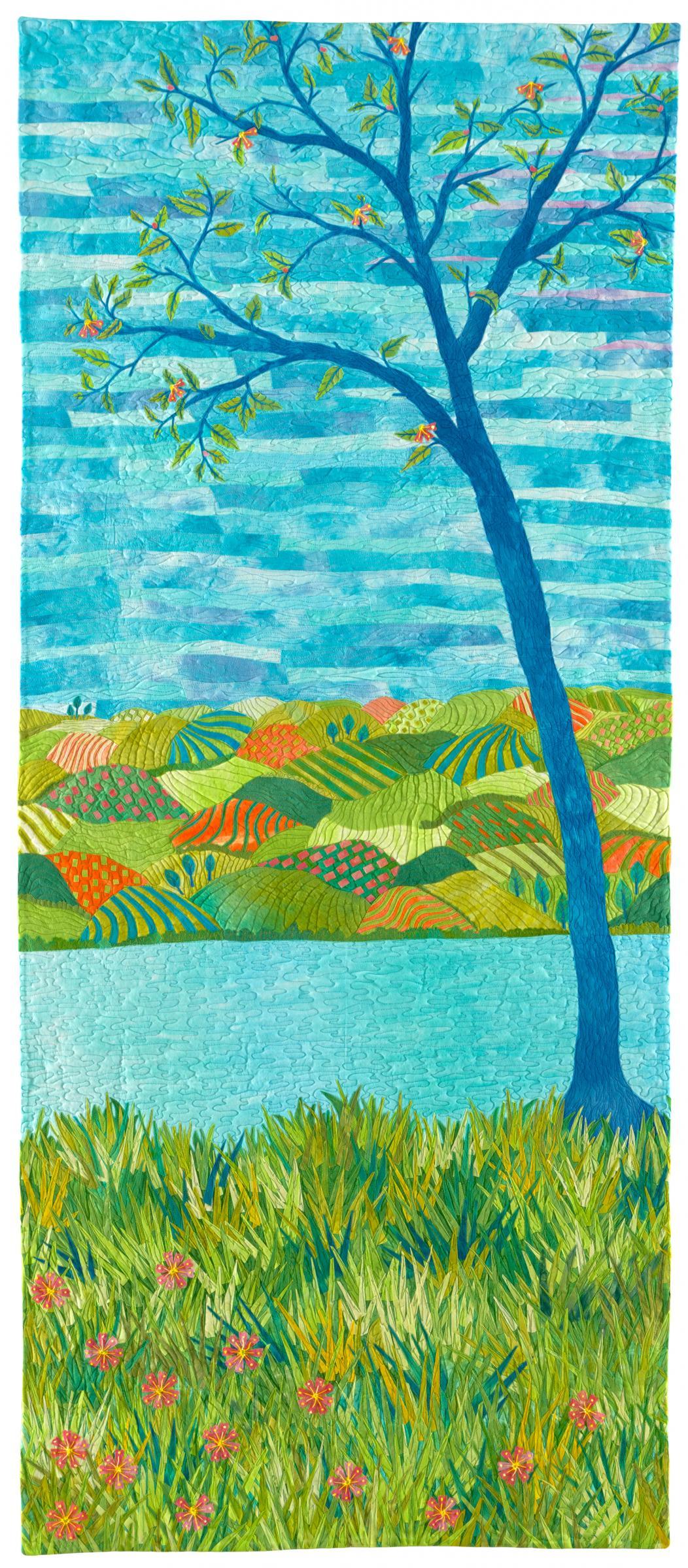 Fused appliqué, machine stitched, hand embroidered