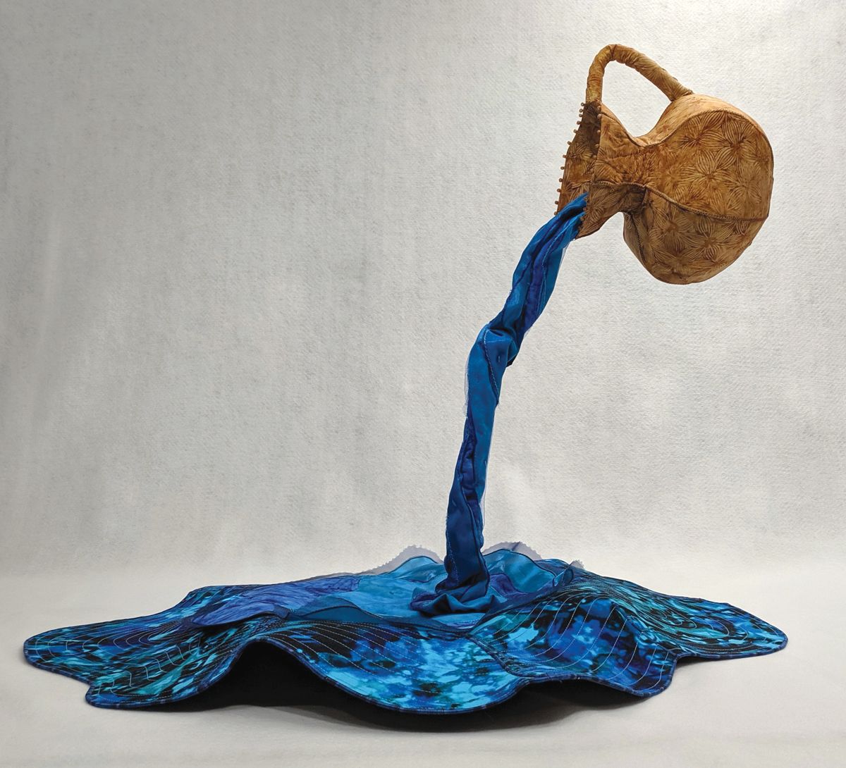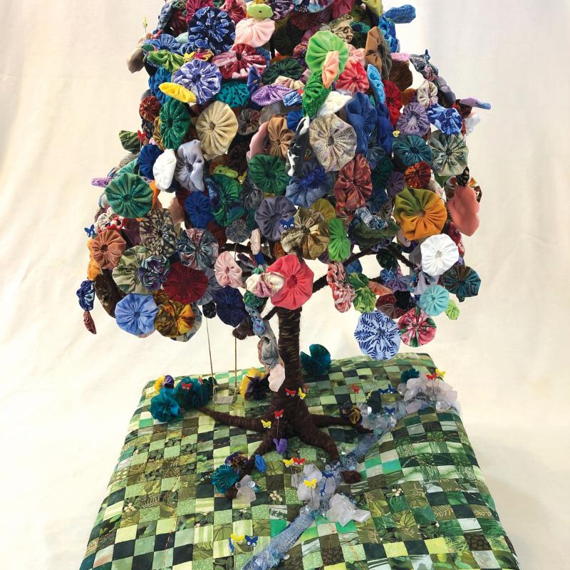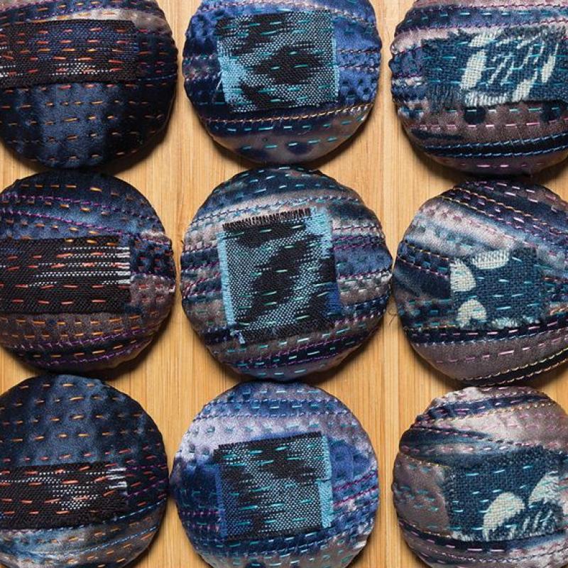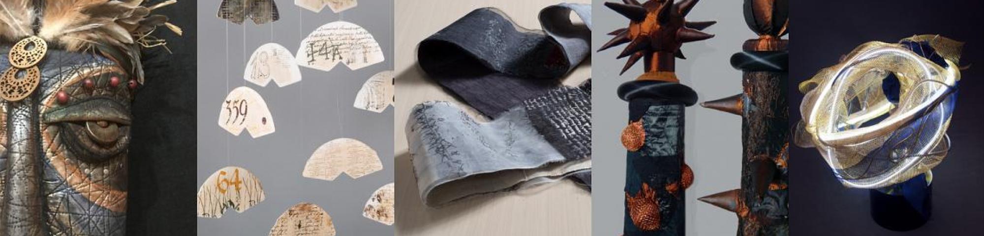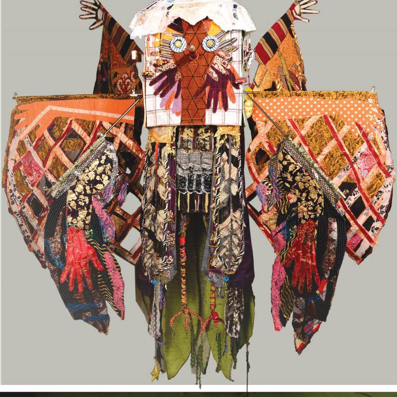 SAQA Global Exhibition 3D Expression offers an intriguing glimpse into a new dimension of art quilts, creatively interpreted by artists from 14 US states and 10 countries. The wide variety of pieces selected by juror Bruce Hoffman include vessels, wearables, wall-pieces, and sculptural artworks.