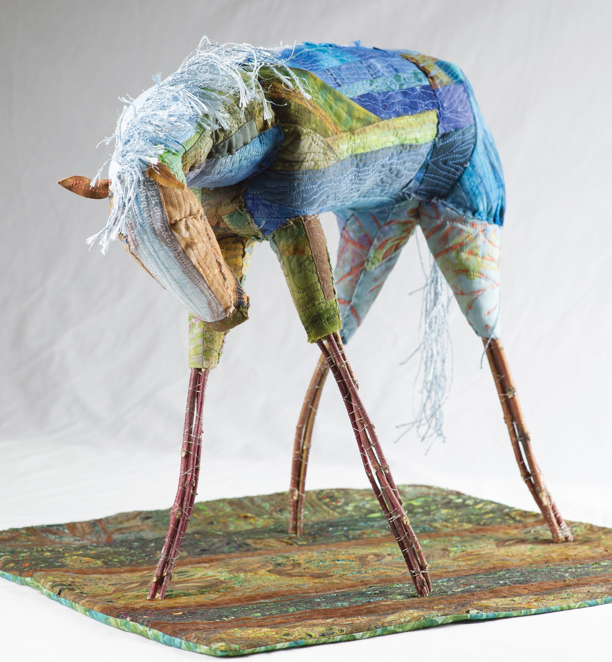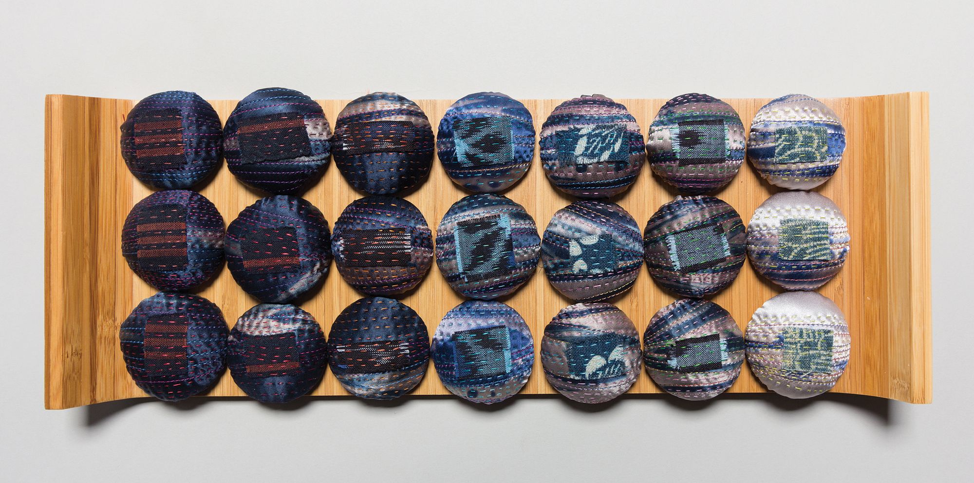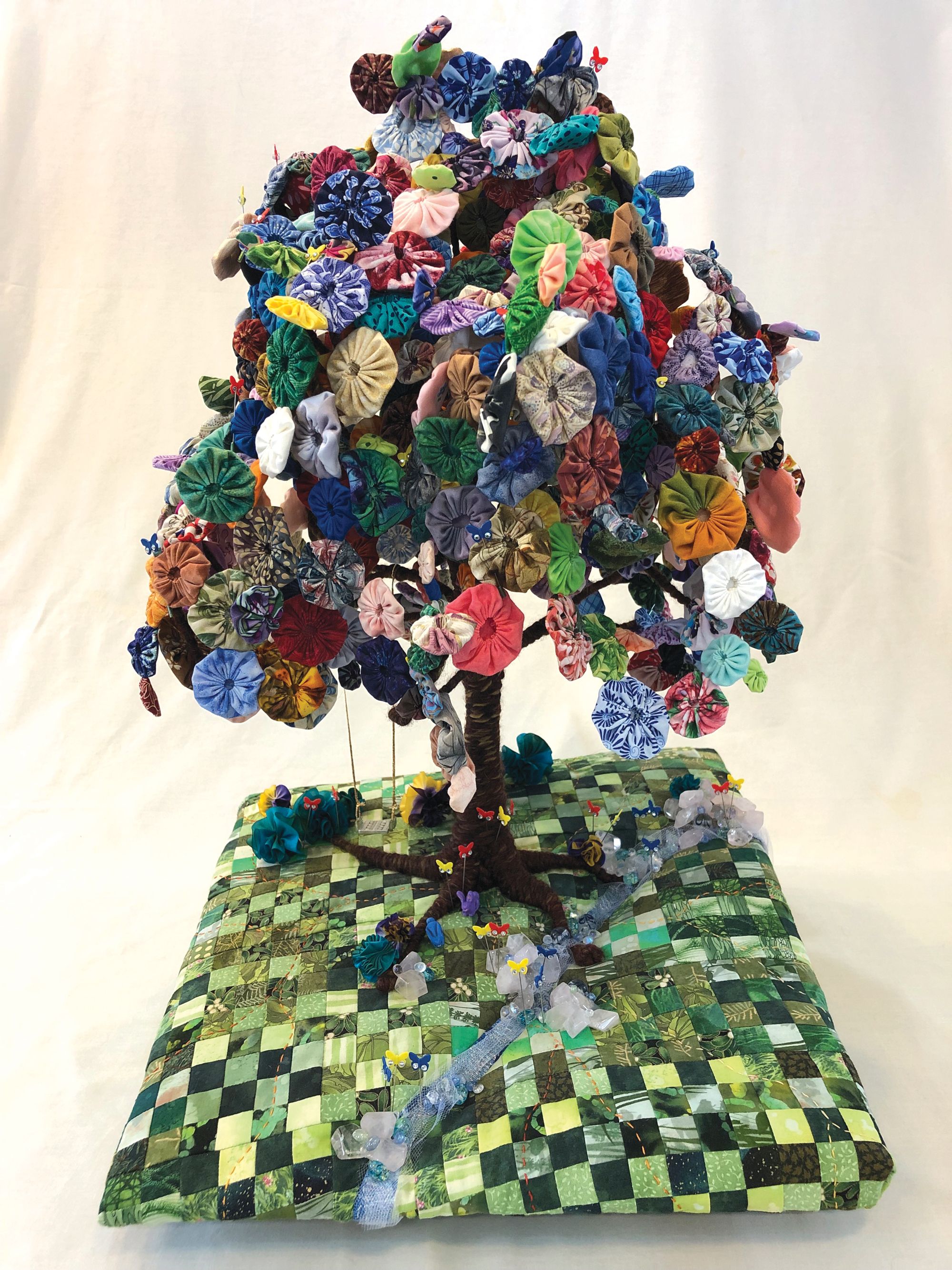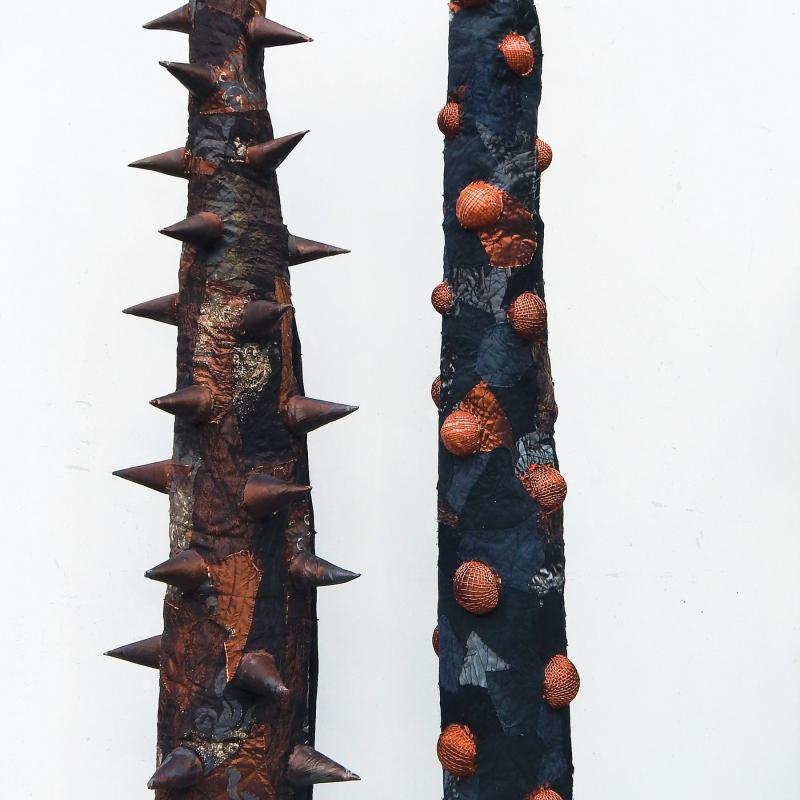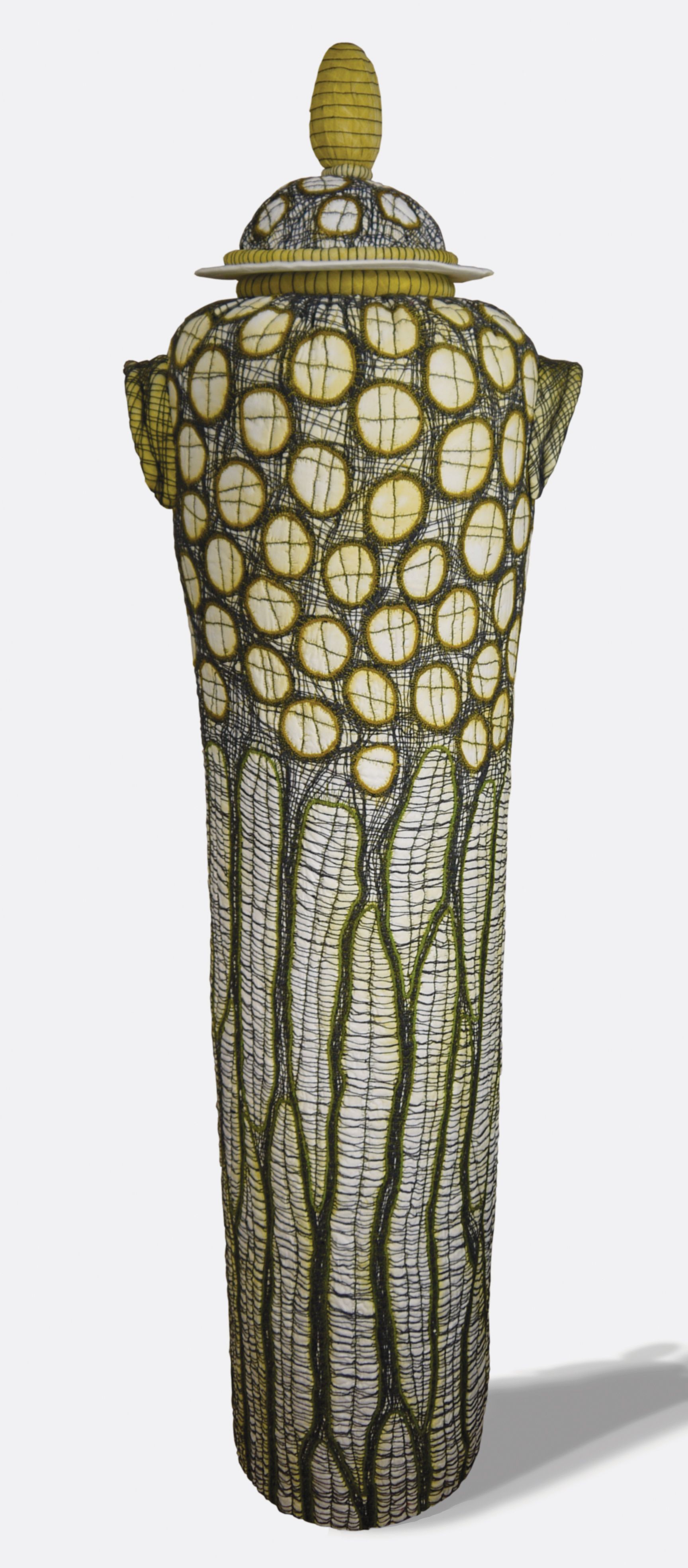 SAQA Global Exhibition 3D Expression offers an intriguing glimpse into a new dimension of art quilts, creatively interpreted by artists from 14 US states and 10 countries. The wide variety of pieces selected by juror Bruce Hoffman include vessels, wearables, wall-pieces, and sculptural artworks.