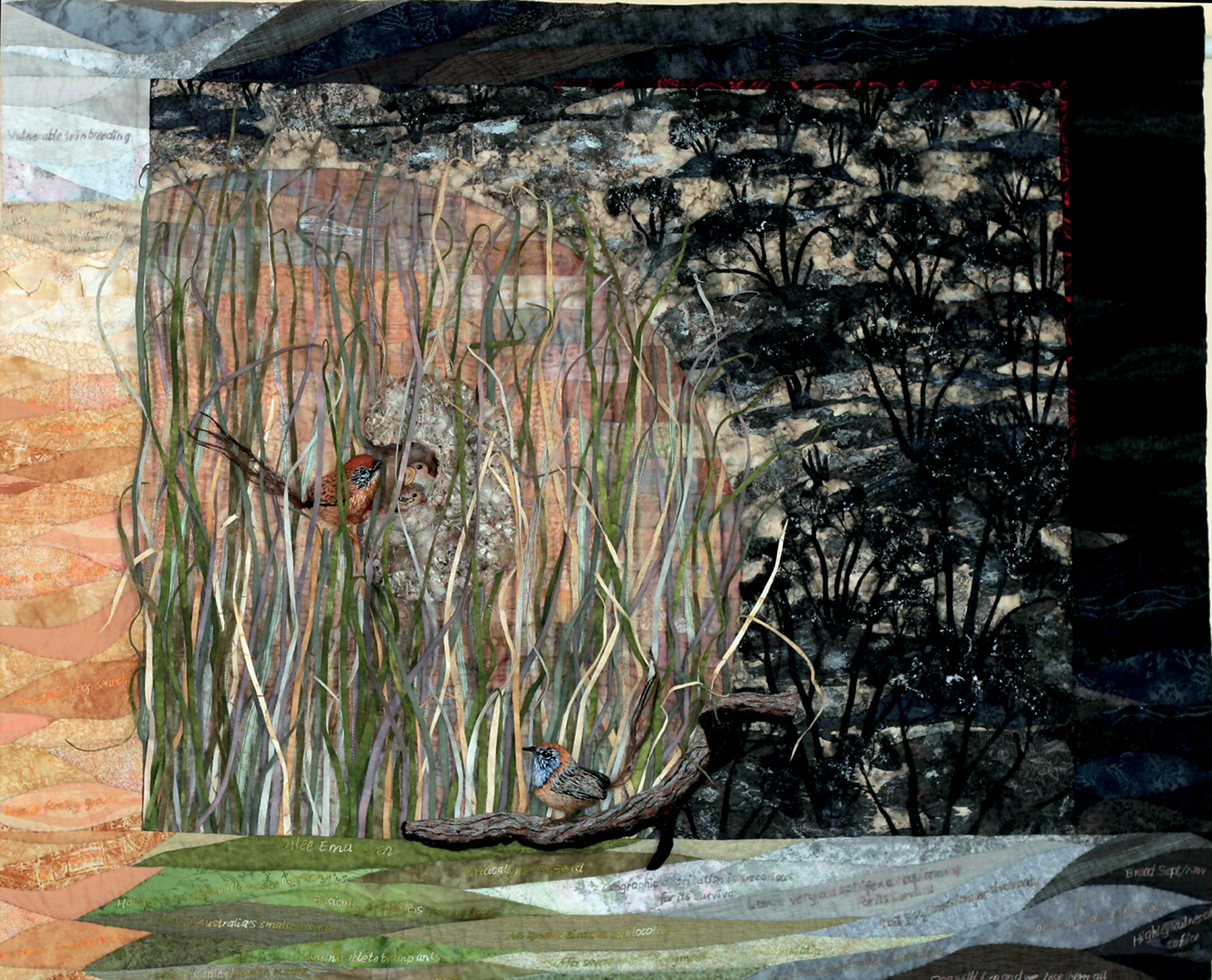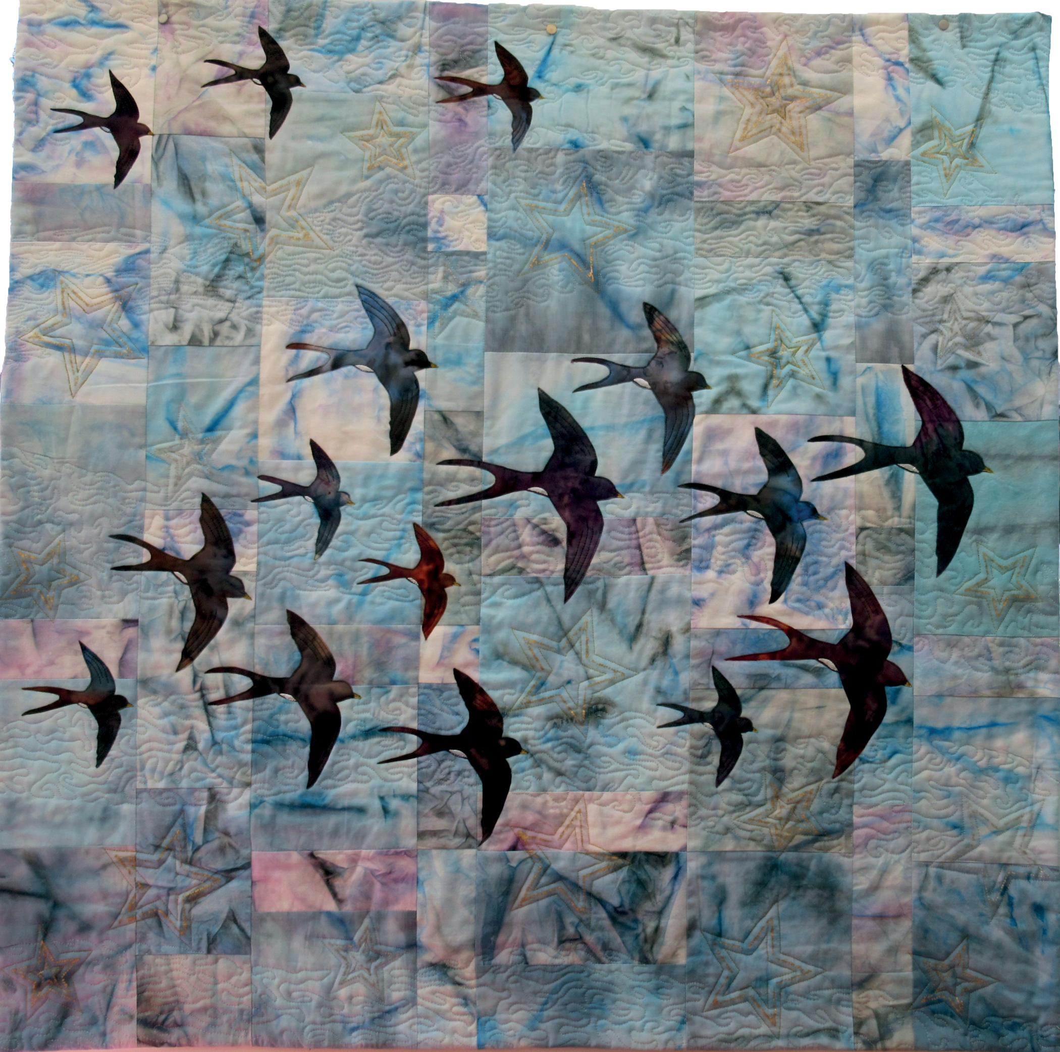 Aviary is based upon “Stitched Journeys with Birds: Inspiration to Let Your Creativity Take Flight” (Schiffer, late 2023) by SAQA’s Executive Director Martha Sielman. This publication is available on Amazon.