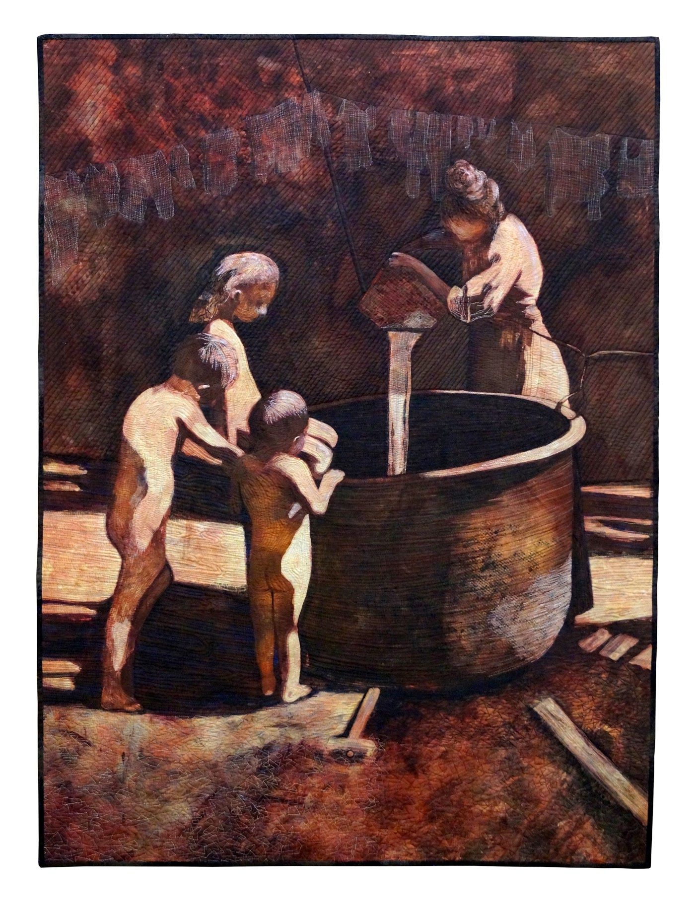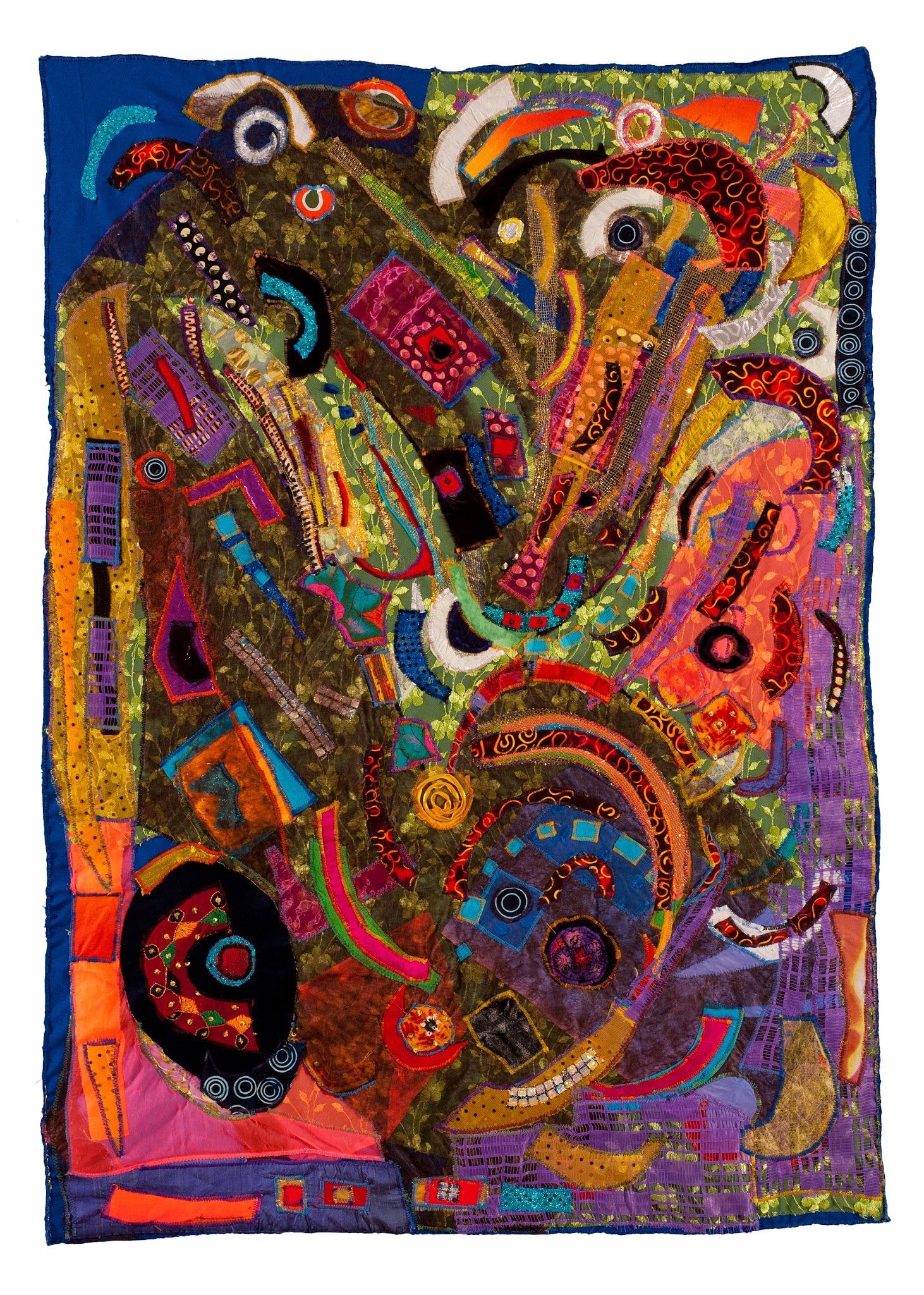 This show celebrates women past and present; what we have accomplished that we now enjoy as rights and freedoms that our grandmothers and their grandmothers did not; and what obstacles we have left to conquer. As art quilting is a predominantly female pursuit, this exhibit is particularly personal. It is an opportunity to show works that explore the daily lives, both internal and external, of women. As artists we were free to explore what and who inspires us; what we find frustrating; what we are most proud of.
