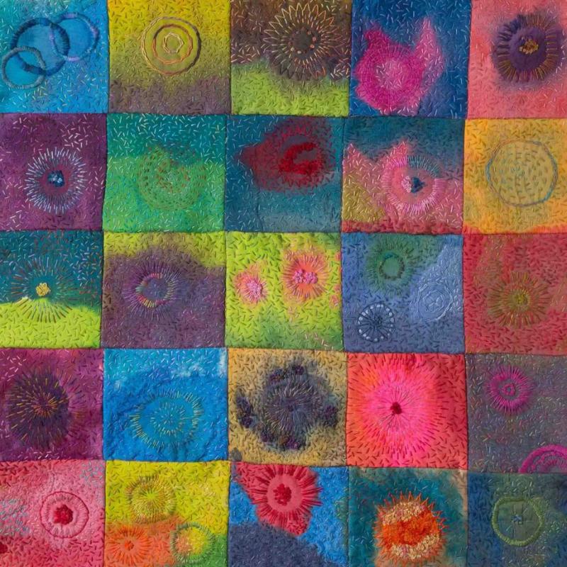 This book is available for purchase on Amazon (digital and print) and venues are being scheduled for in-person viewing of selected pieces. Additional images can be viewed on the SAQA Oregon website.