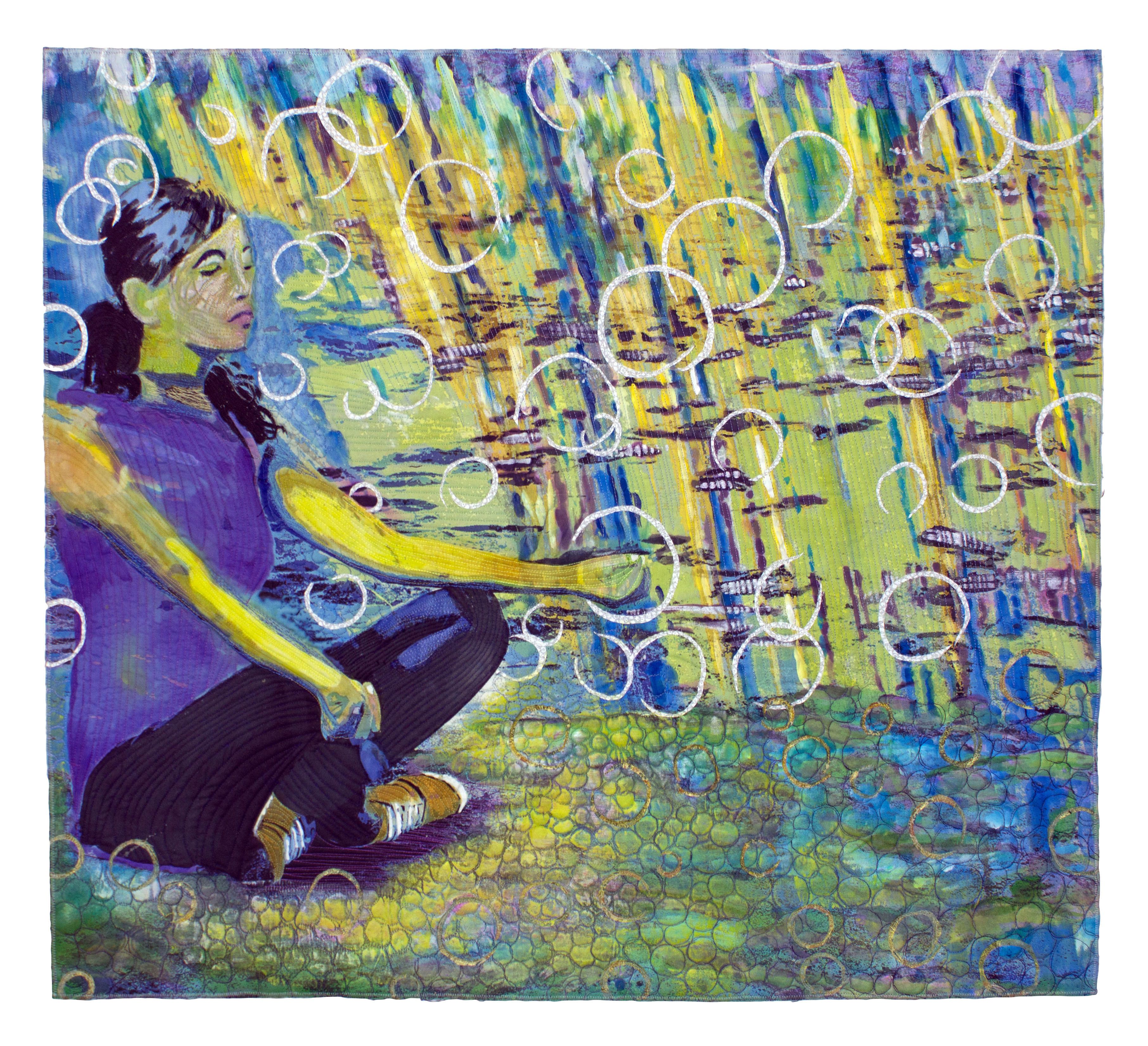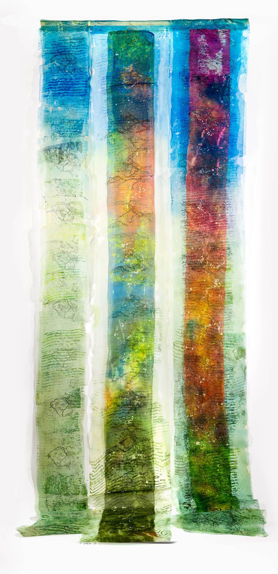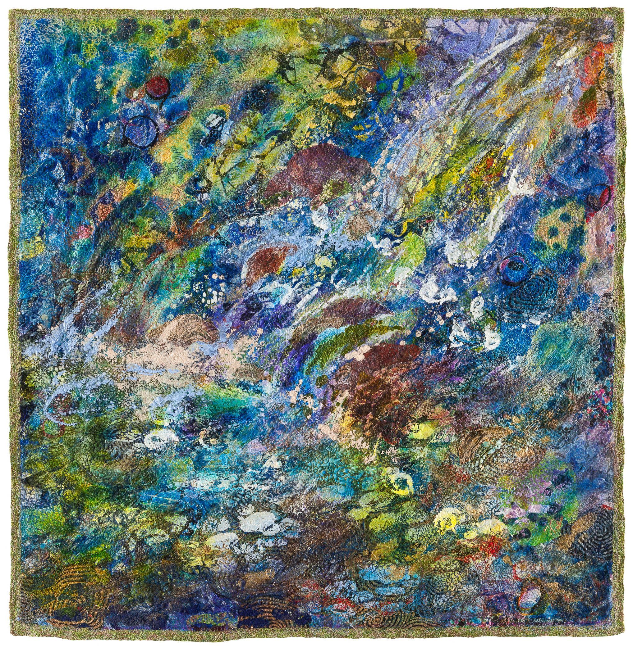 Linda Gass combines environmental activism and artmaking to bring awareness to land use and water issues in California. Using the lure of beauty, her colorful and highly textured stitched paintings encourage people to look at the hard issues we face.