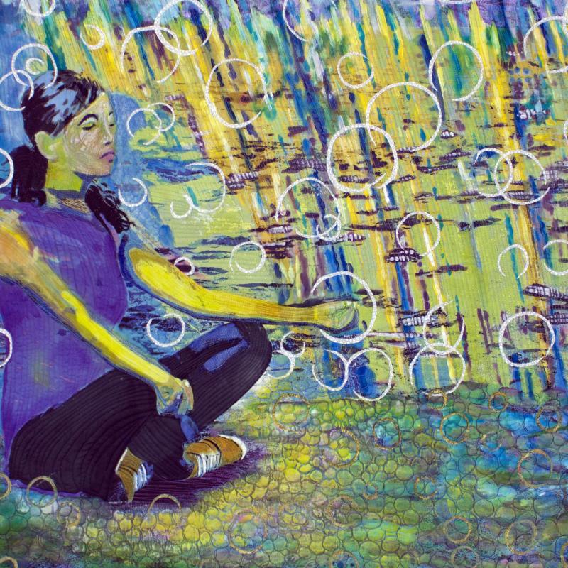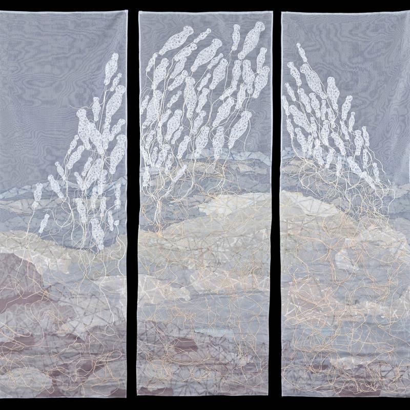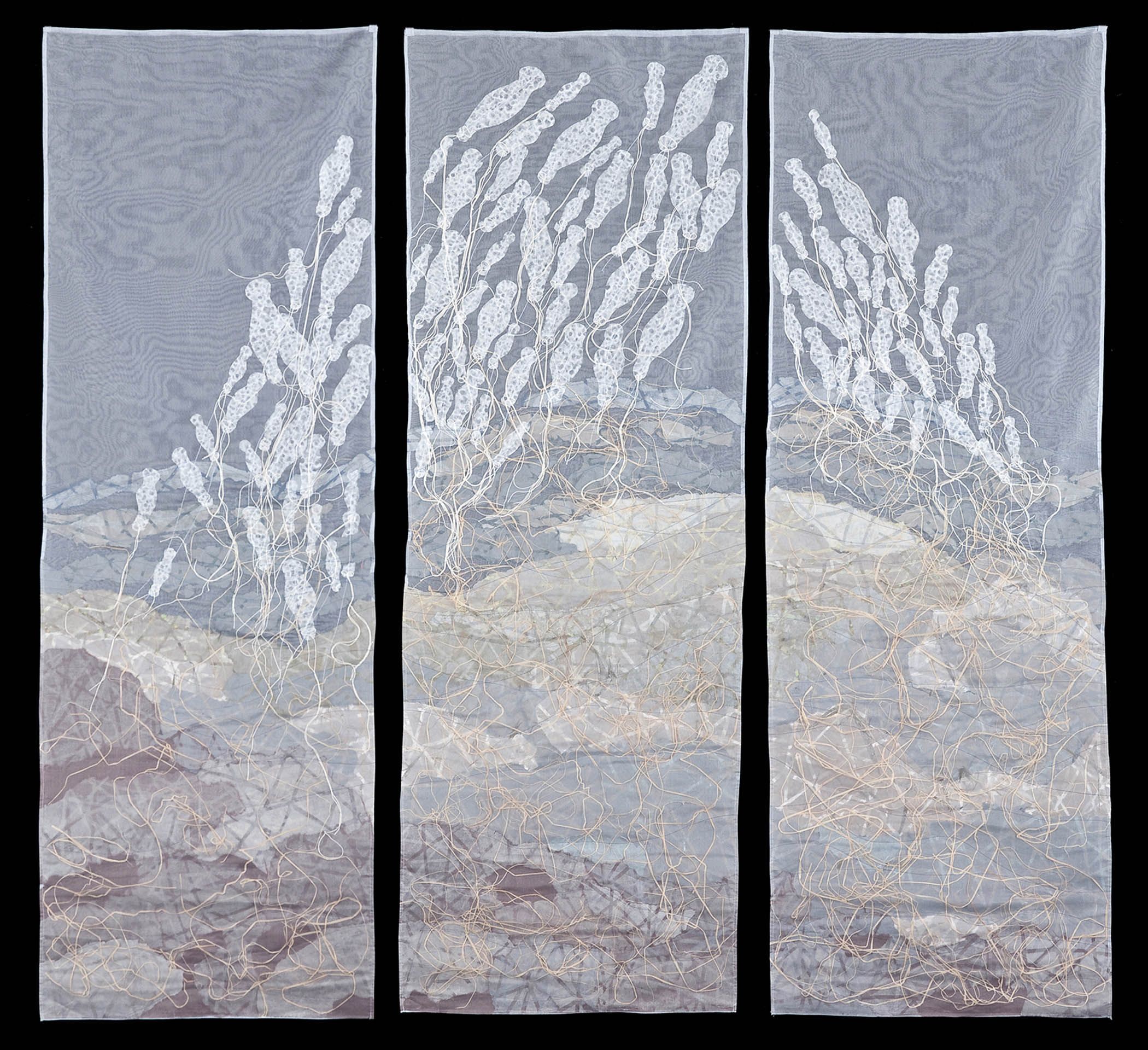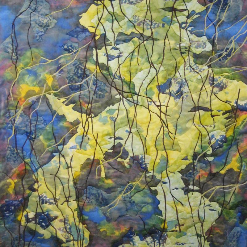 Linda Gass combines environmental activism and artmaking to bring awareness to land use and water issues in California. Using the lure of beauty, her colorful and highly textured stitched paintings encourage people to look at the hard issues we face.