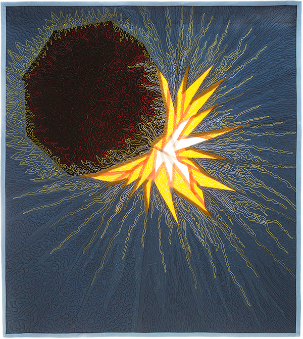 Let the Sun Shine In! has filled that call. Many of the participating artists used this exhibition to channel their own emotions as the seclusion they experienced was left behind. Others celebrated, as we all did, with the freedom gained when shutdowns were lifted. It is our hope that you, the viewer will identify artwork as it relates to your own experience; that you may find some solace from the art quilts displayed here and share in sentiments of each of the artists represented in this exhibition.