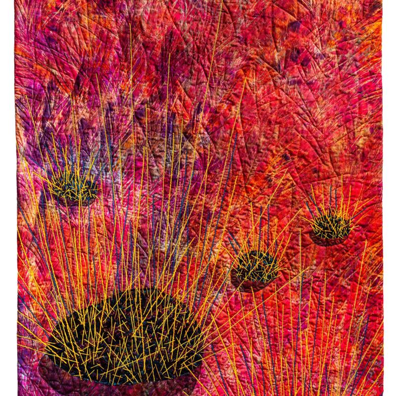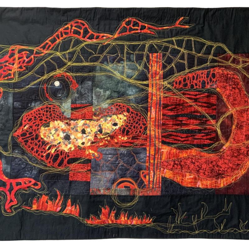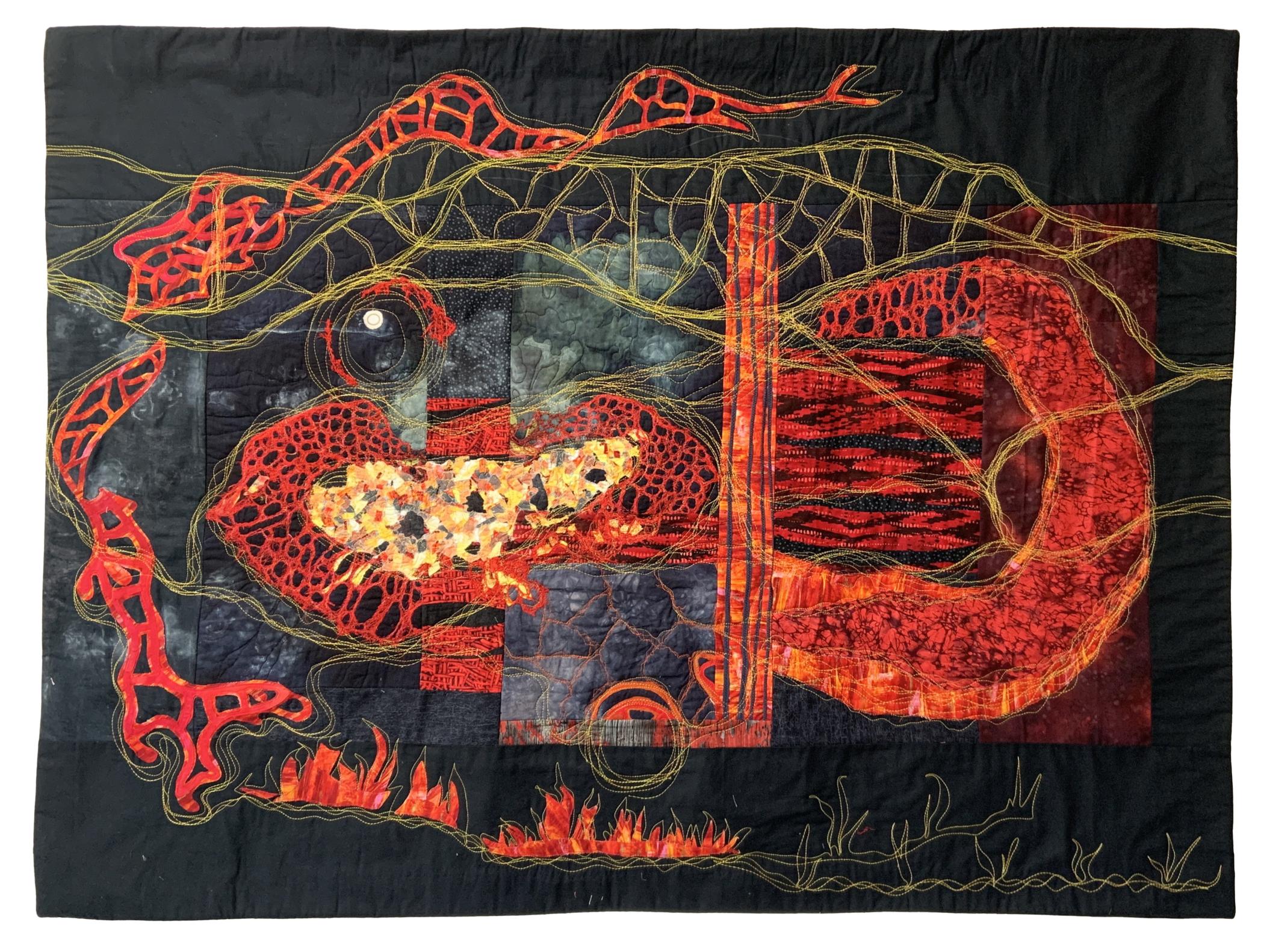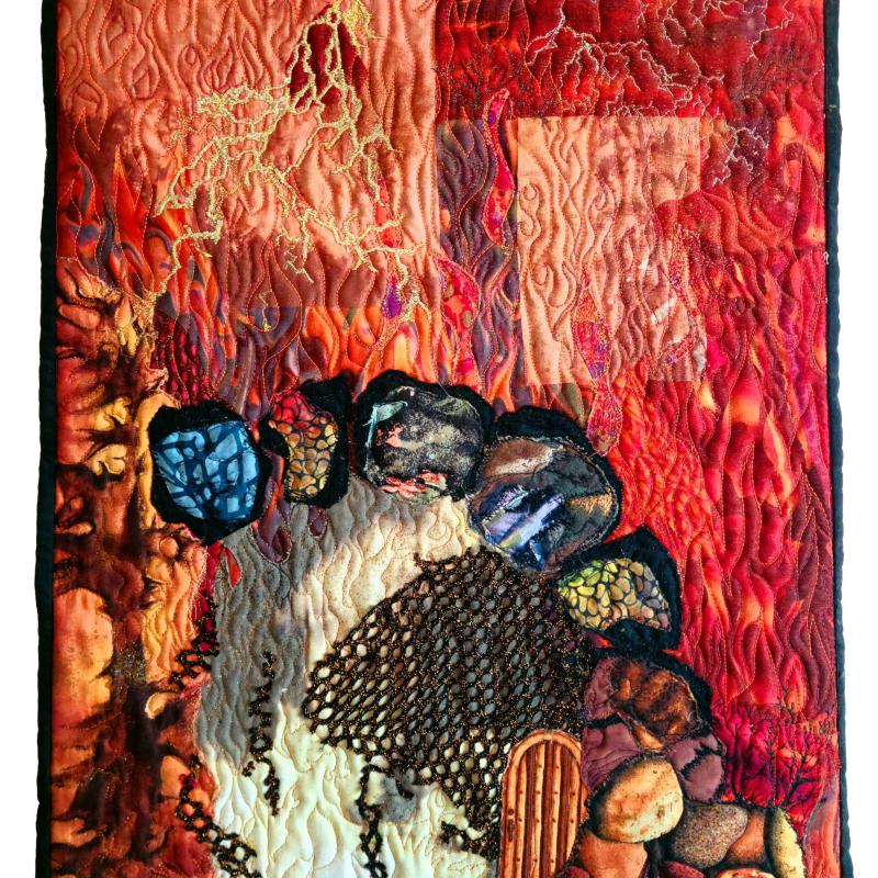 Fire is the third and final component of our elemental series premiering at the National Quilt Museum. Previous exhibitions included Primal Forces: Earth and Primal Forces: Wind.