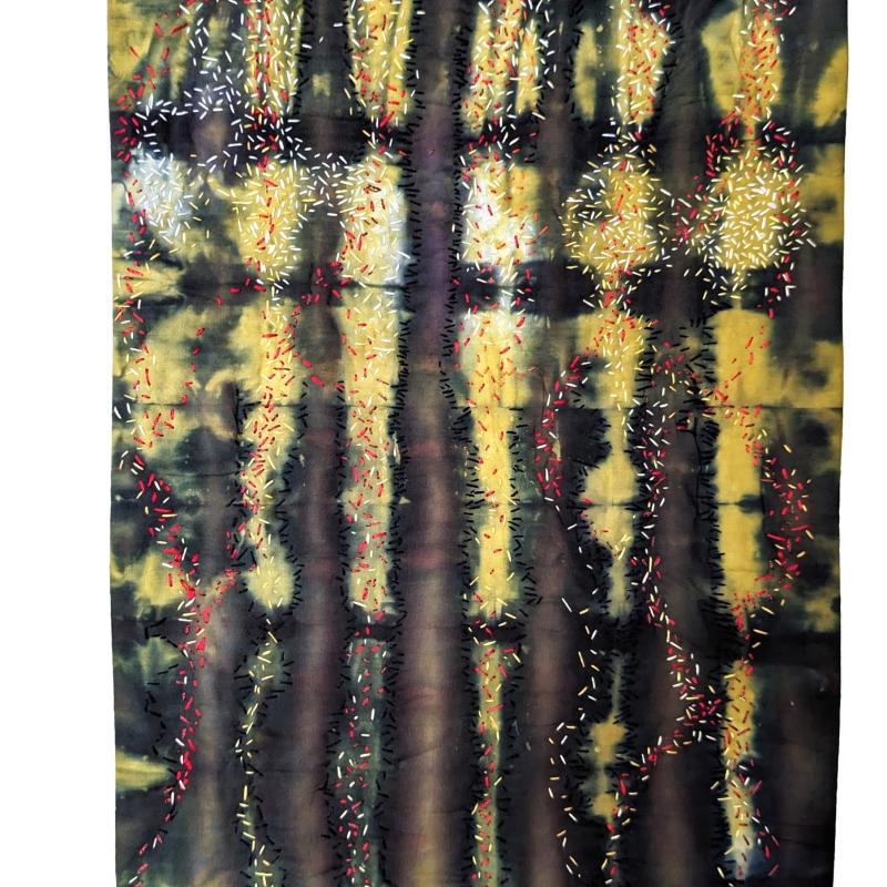 Okore has a B. A degree from the University of Nigeria, Nsukka [N-su-ka), and an MA and MFA at the University of Iowa. Added to numerous national and international awards, Okore is a recipient of the Fulbright Scholar Award and Creative Victoria Creators Fund. Her works have been featured in major exhibitions at the Museum of Art and Design, NY; Museum of Contemporary African Diasporic Art, New York; Spelman Museum of Fine Art, Atlanta; Museu Afro Brasil, Sao Paulo, Brazil; Memphis Brooks Museum of Art, and the Cleveland Museum of Art, among others. Okore’s recent exhibitions include the Bruges Triennial Exhibition, in Belgium and the Chengdu International Biennial in China.