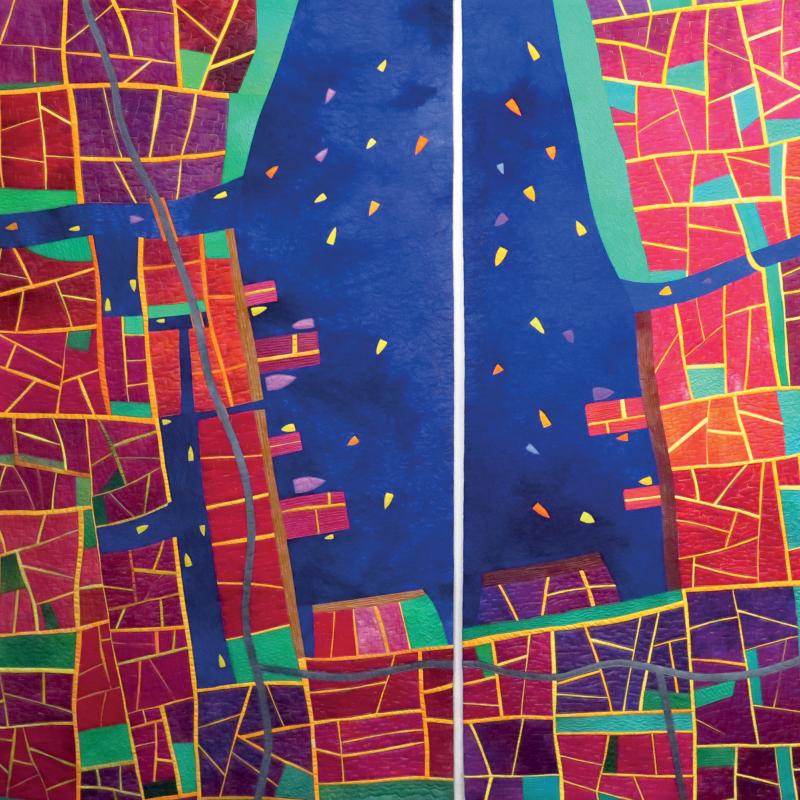 I work in series: music; Shakespeare’s plays and sonnets; nature; the urban environment; maps and aerial views; magic and science; the interpretation of ideas. Issues such as climate change have informed my work.