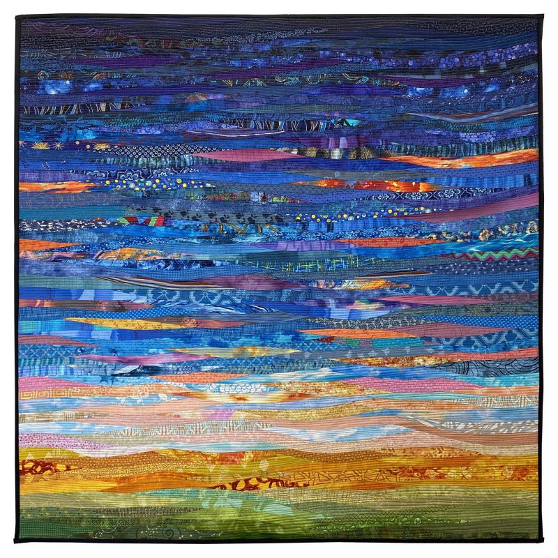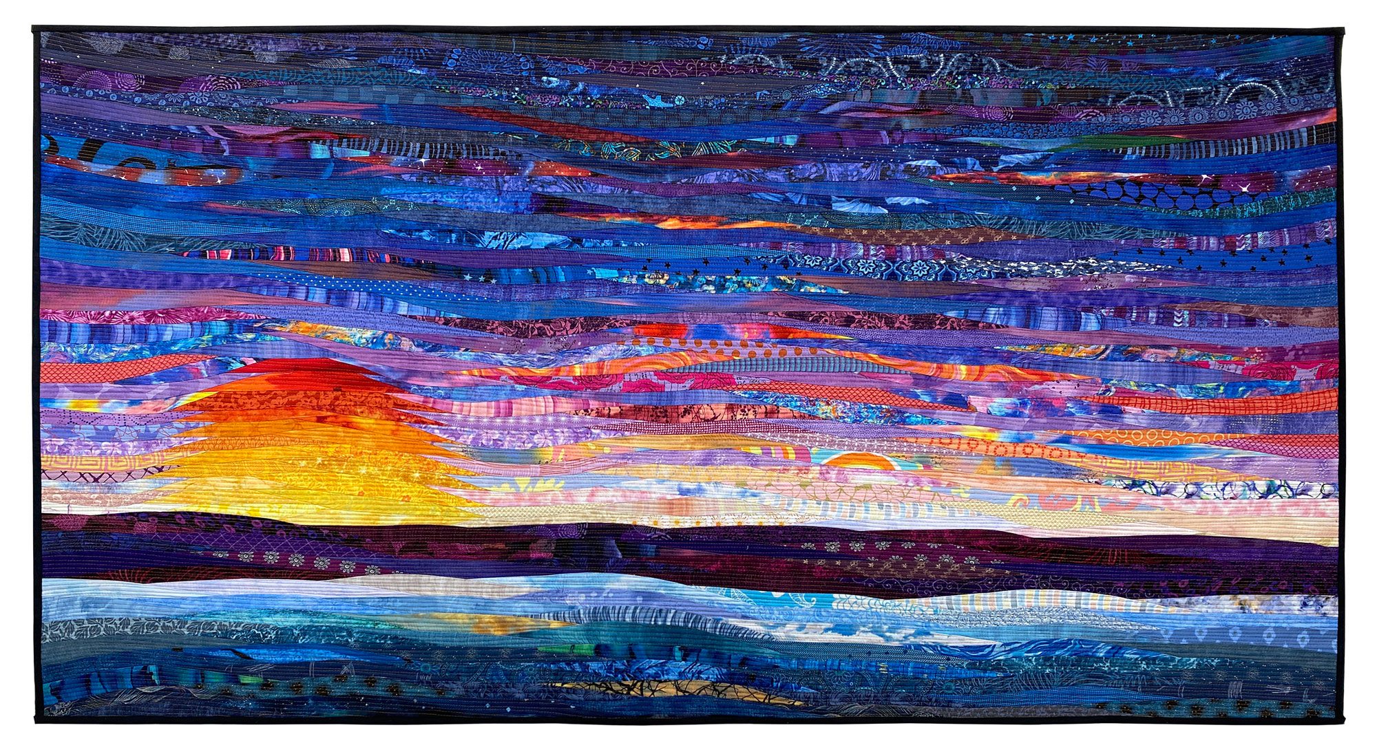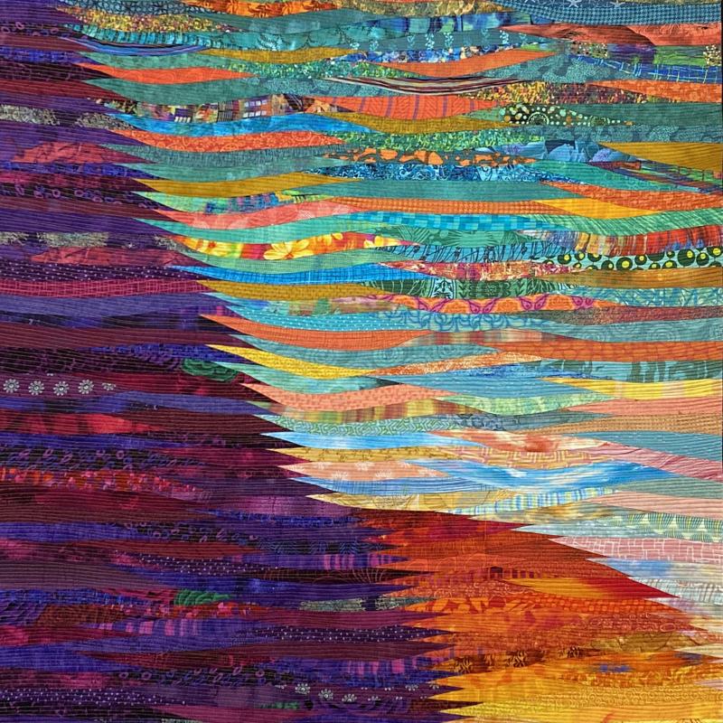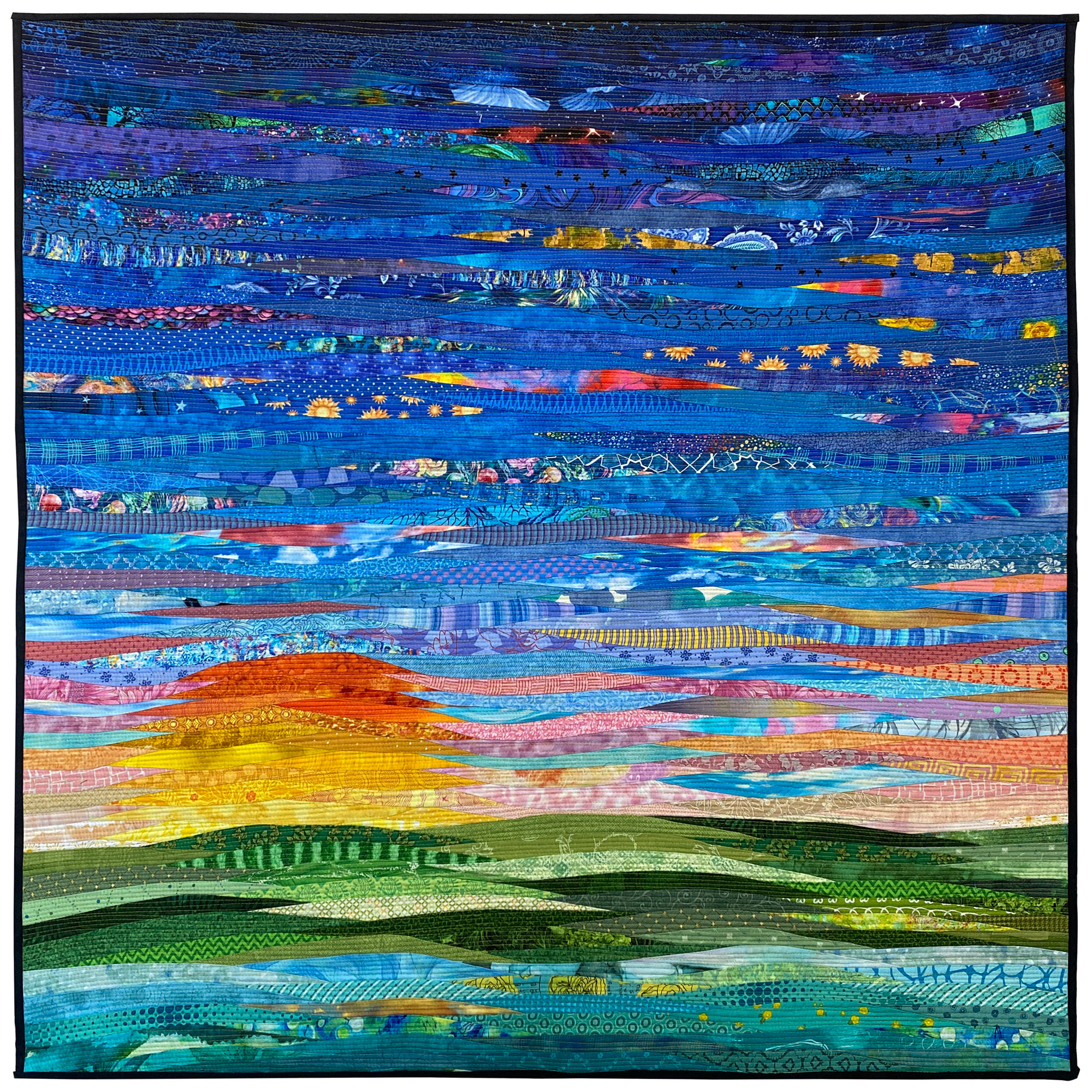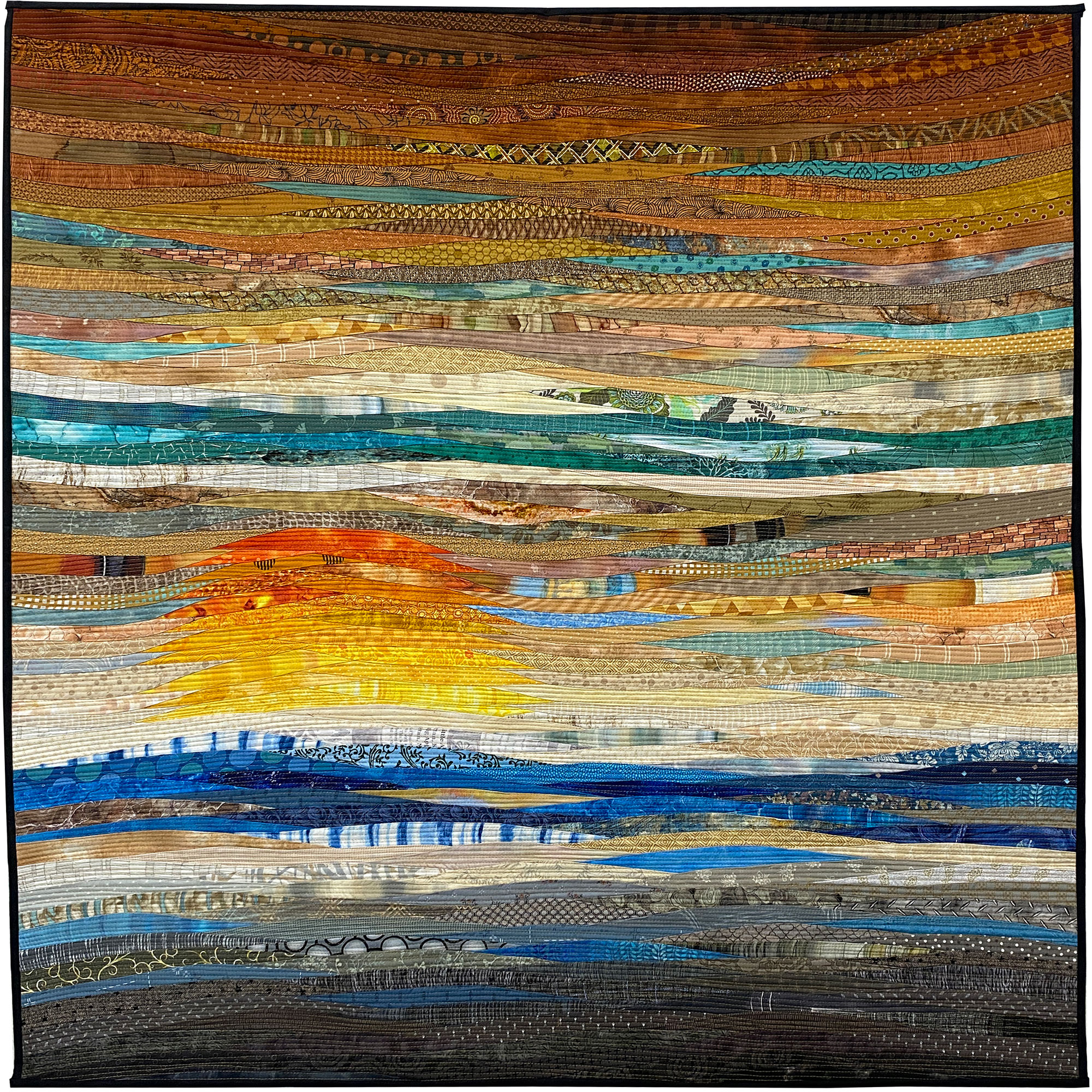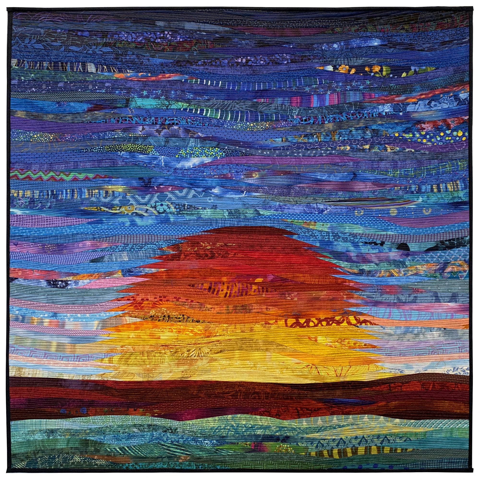 For over forty years I have been supporting myself making art quilts that use color, fabric, and the traditions of quilt making to create abstract landscapes. My quilts are designed to give peace and hope to our life with the promise of dawn and the vast horizons where our imaginations can dream and float. Each quilt is unique and relies on many thin strips of carefully selected quilting fabric to tell a story, which can change with time and the viewer's experiences. I believe in careful workmanship to add to the image. I am constantly pushing myself to create new designs within the framework of my quilts.