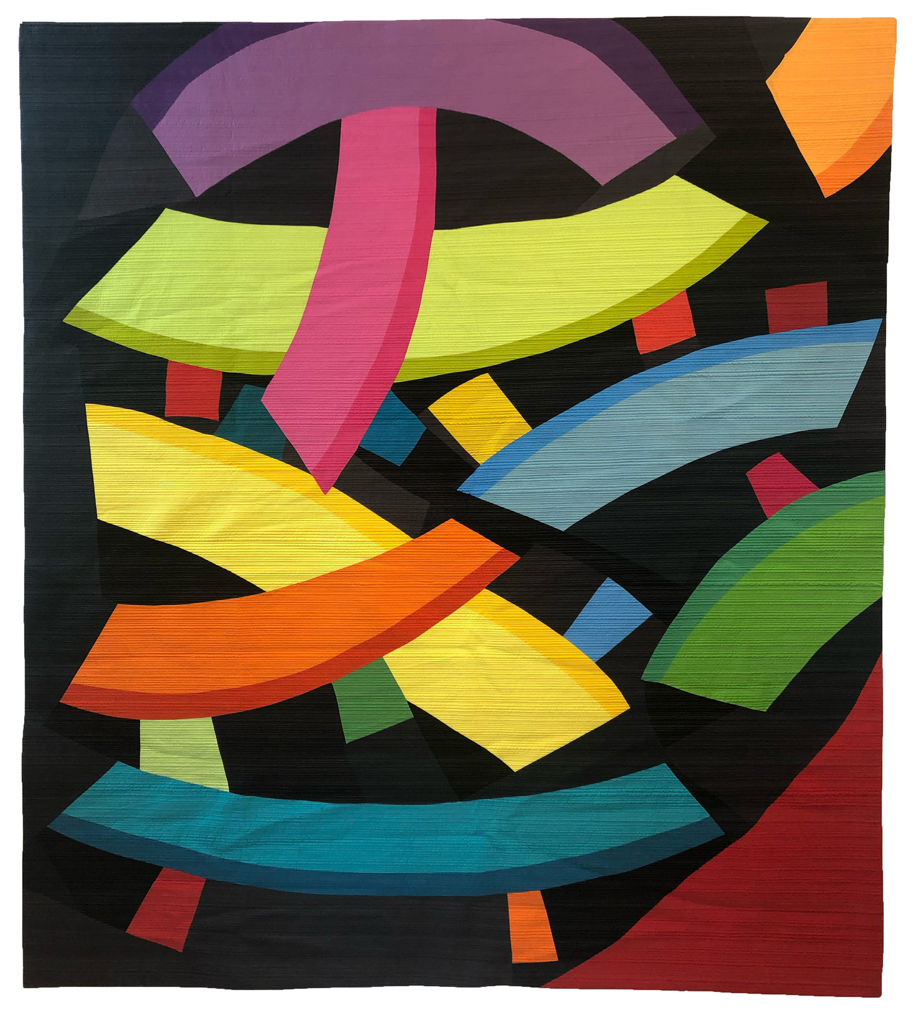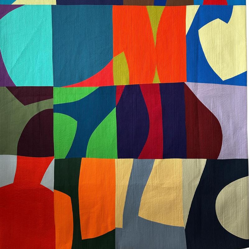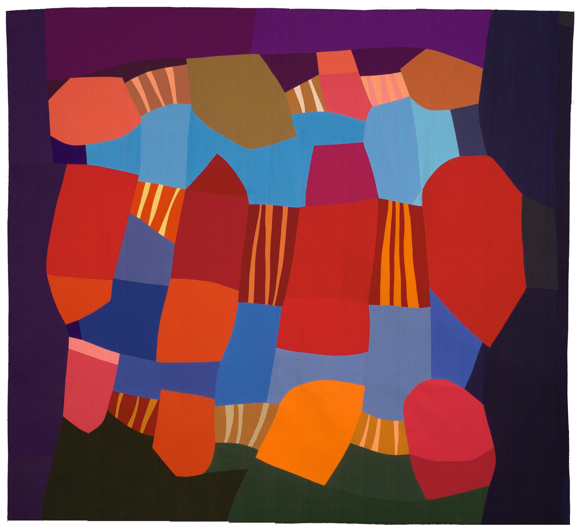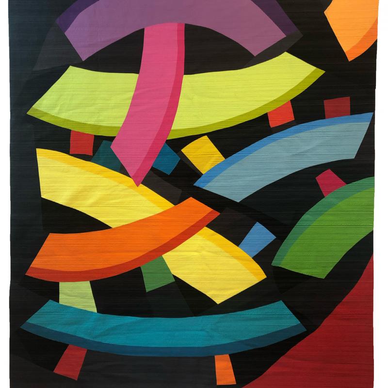 Barbara Danzi is an artist who makes large-scale improvisational abstract quilts. Her approach of freehand cutting each line or shape individually while composing the design on her design wall creates quilts with a painterly aesthetic where the seams look hand drawn. Her color palettes bring a sophisticated lens. Barbara merges her engineering degree and design study with her outdoor adventures to create compelling designs based on organic shapes in the natural world. Besides exhibiting her award-winning quilts around the world, Barbara lectures to quilt and fiber art groups and serves as a curator, juror and judge for exhibits. Barbara is a Juried Artist Member of SAQA, the Studio Art Quilt Associates, and a member of Textile Arts Los Angeles, and the Textile Study Group of New York.