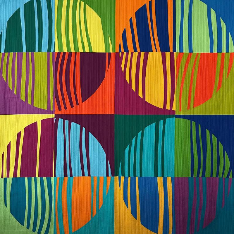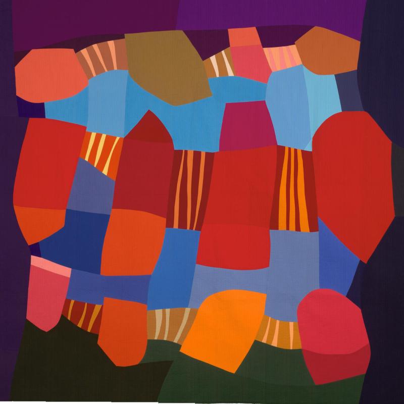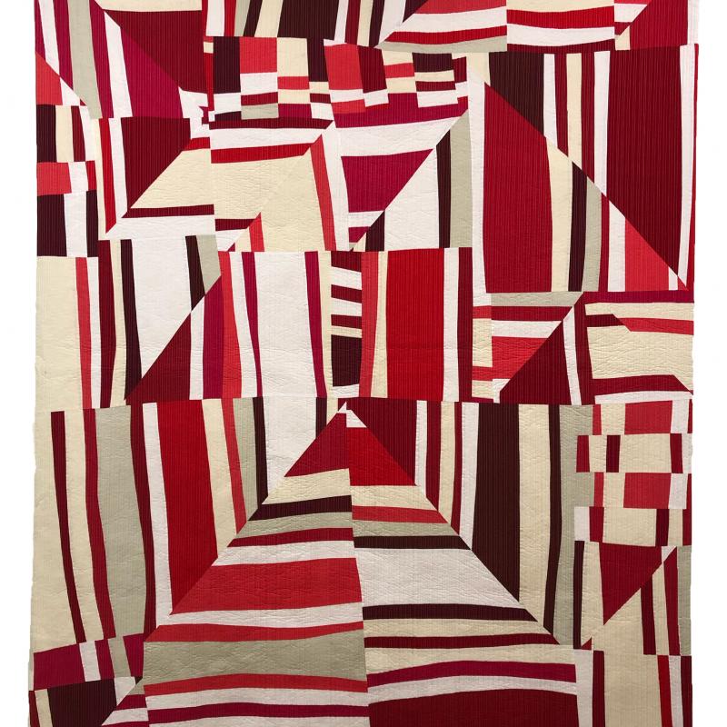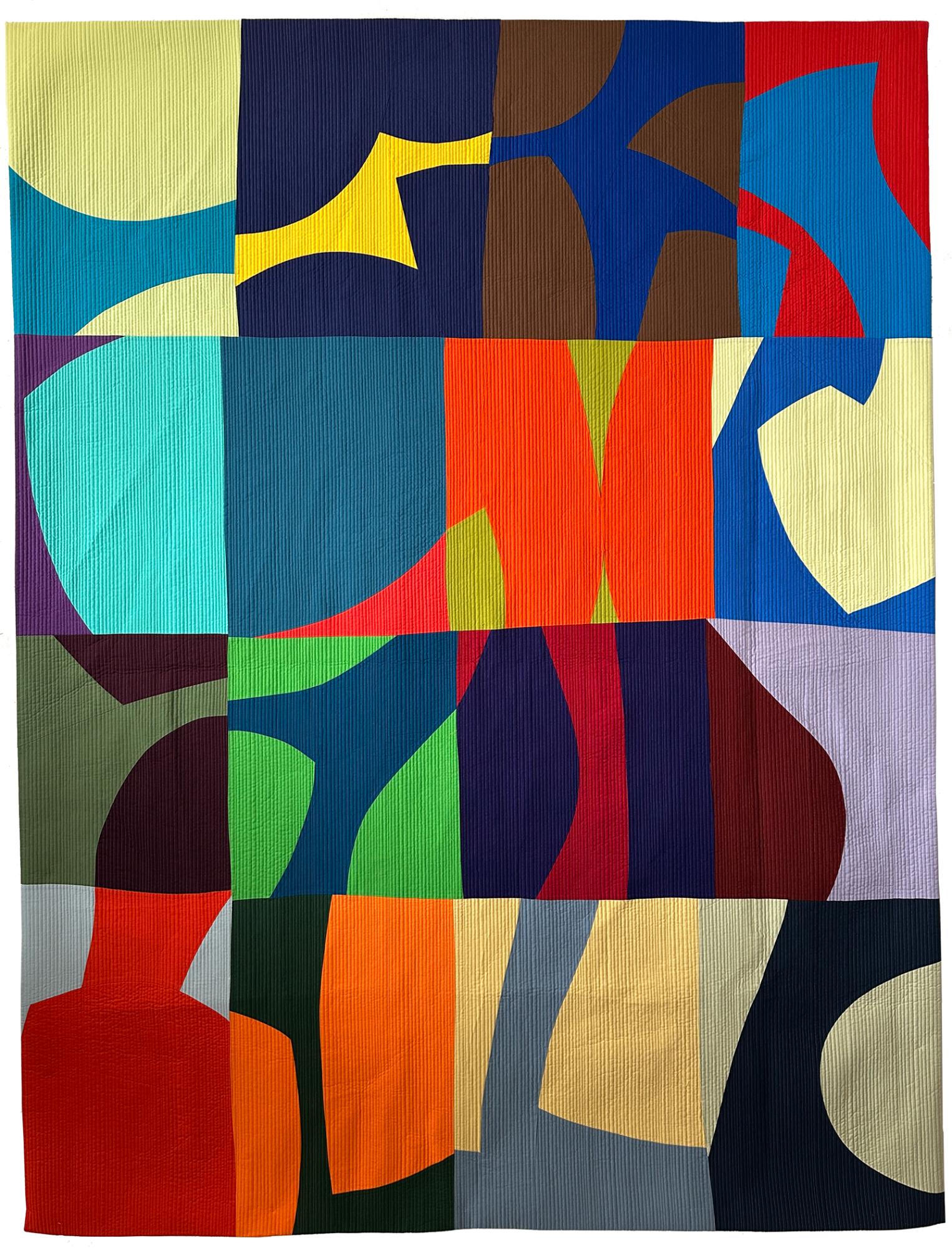 Barbara Danzi is an artist who makes large-scale improvisational abstract quilts. Her approach of freehand cutting each line or shape individually while composing the design on her design wall creates quilts with a painterly aesthetic where the seams look hand drawn. Her color palettes bring a sophisticated lens. Barbara merges her engineering degree and design study with her outdoor adventures to create compelling designs based on organic shapes in the natural world. Besides exhibiting her award-winning quilts around the world, Barbara lectures to quilt and fiber art groups and serves as a curator, juror and judge for exhibits. Barbara is a Juried Artist Member of SAQA, the Studio Art Quilt Associates, and a member of Textile Arts Los Angeles, and the Textile Study Group of New York.