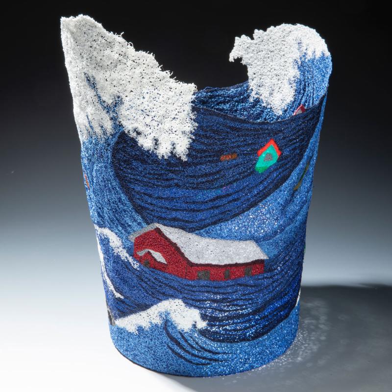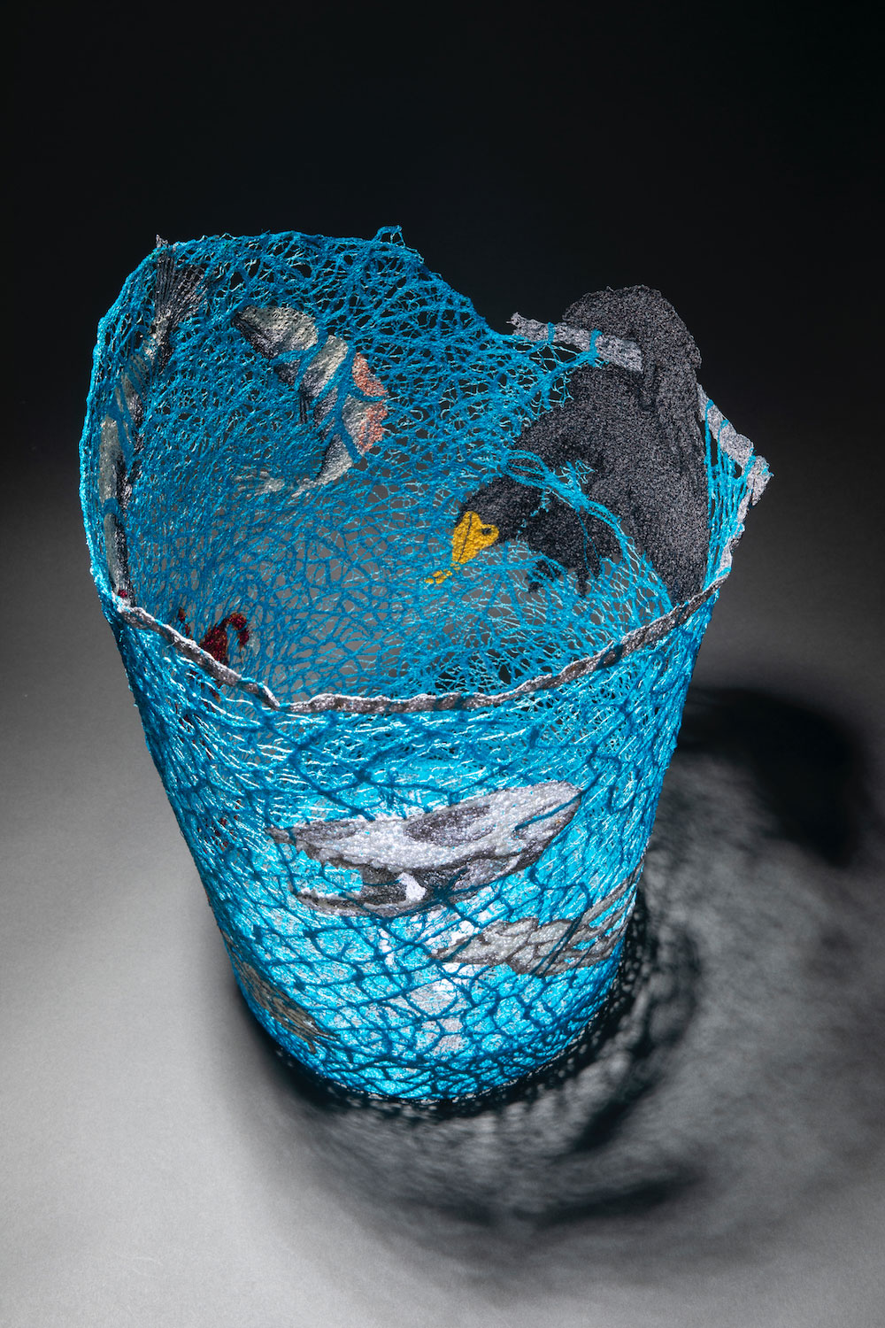 I use stitch to examine the world around me. Telling stories that focus on the fragility and resilience of the natural world and our place in it—how all earthly things are linked, sometimes by the slimmest of threads, and how we humans can alter those connections.
