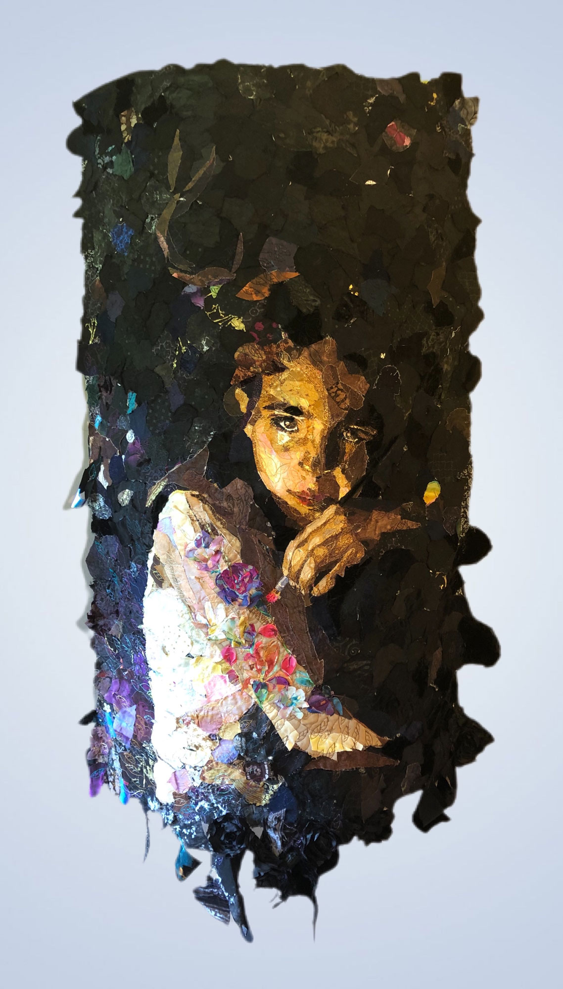 I’m a storyteller who paints with fabric and draws with thread. As the only white person in my Native American family, my work is about my reflections as an outsider and the emotional rollercoaster I often ride as I stand fixed on the outside but privileged enough to look in. It’s not simply about the pieces of Ojibwe culture I’ve been allowed to see, but instead what it’s allowed me to see within myself and even to recognize what cannot be found there. I'm not afraid to explore new approaches to fabric or afraid to engage in challenging topics. My portraits explore intimate parts of my life centering on the juxtaposition between my white culture and my husband’s traditional indigenous culture, and have ranged in topics from drug abuse, social ostracization, body image, femininity and masculinity, sexual abuse, and aging, with spirituality deeply woven into their narratives.