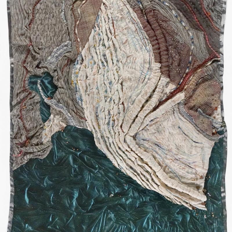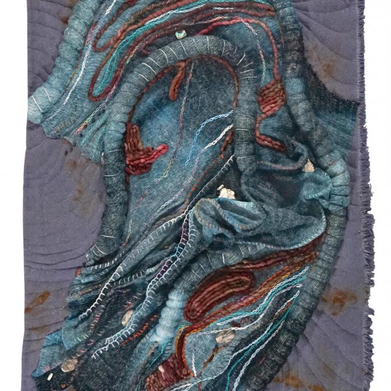 Today, my art seeks that limitless place for creation, where I make or alter or find; where handwork is important because it is evocative and engaging, where viewers can fly with me over imagined landscapes. Using stitch, color, and texture, I strive to capture power, mystery, enigma--forces far larger than myself. Everything is warped and bent. The edges move with the continental plates or the massive flood, the earthquake and tidal wave, the warming planet. There is always a next step, something over the hill.