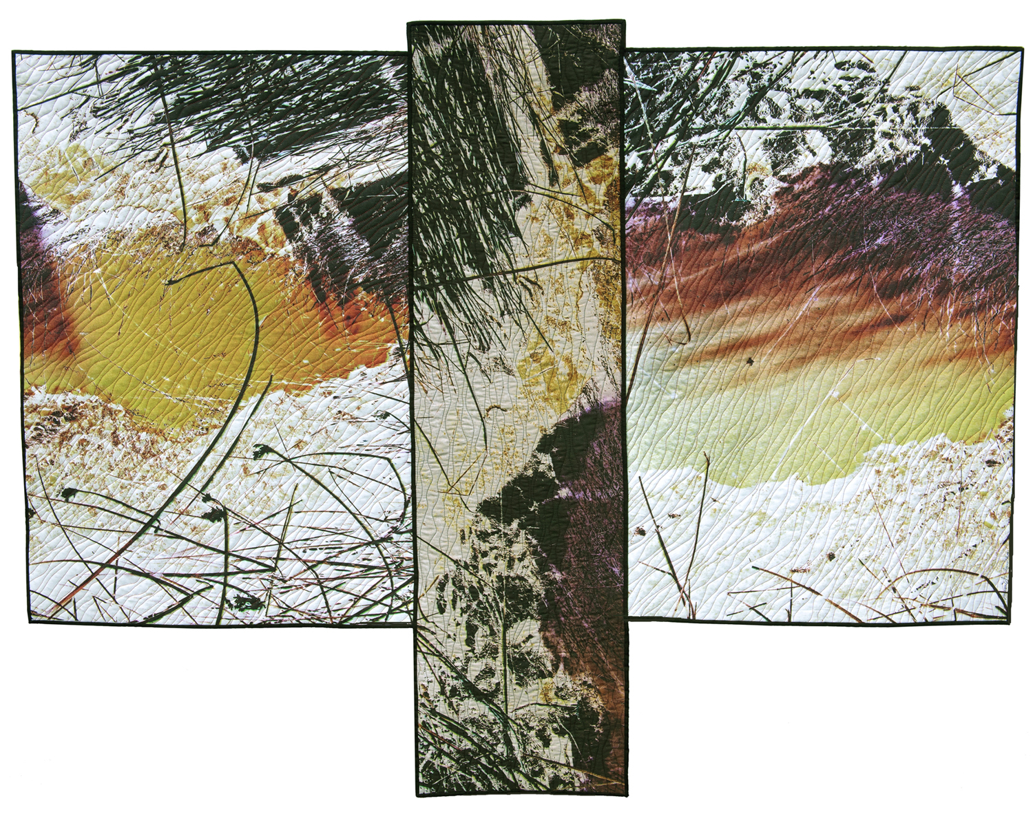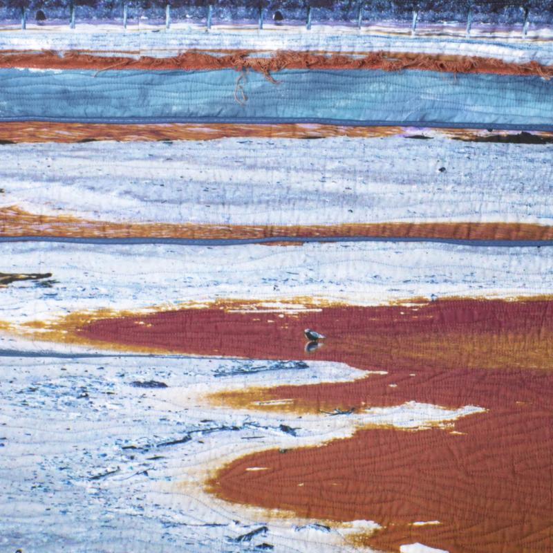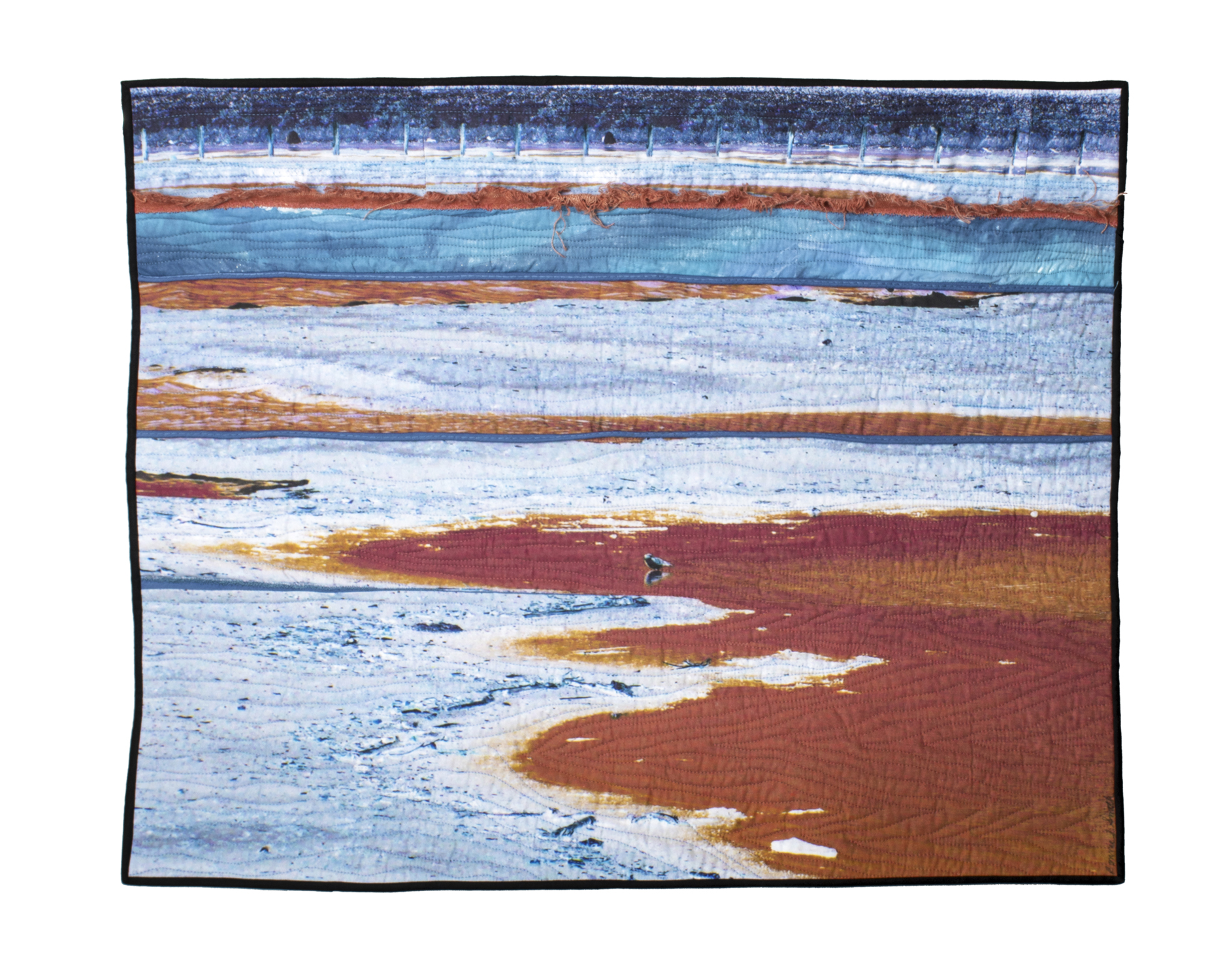 What I have seen as I view the terrain of California is the effect the drought damaged this states environment. This became quite clear when I started taking a series of photos of the Alviso Salt Marshes located in the Bay Area of northern California. The before and after drought images jarred my sensibilities. Watching how the ongoing lack of water has affected this environment overwhelmed me. Creating a drought series of textile artworks allowed me to push this alarming message out into the wo