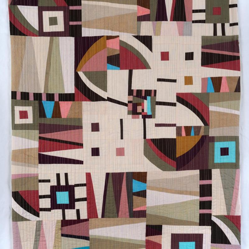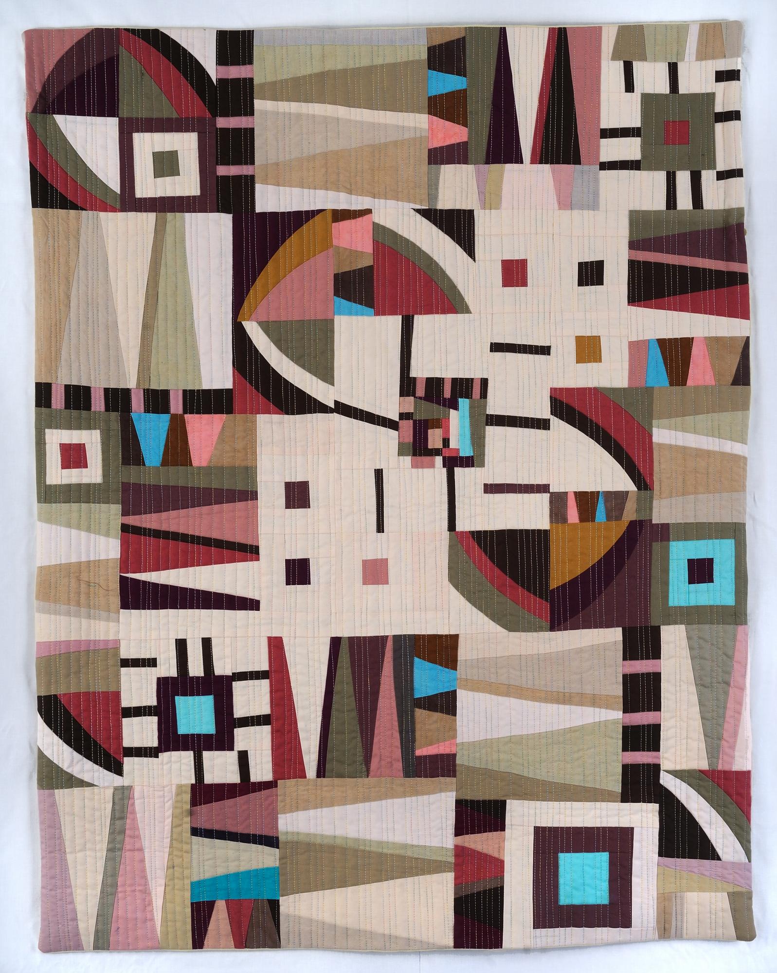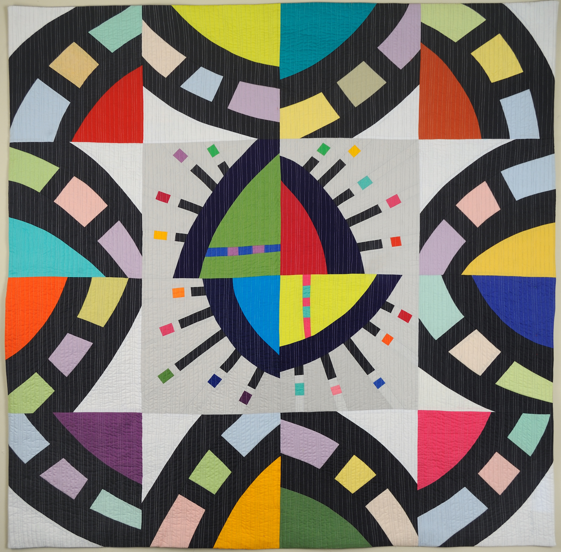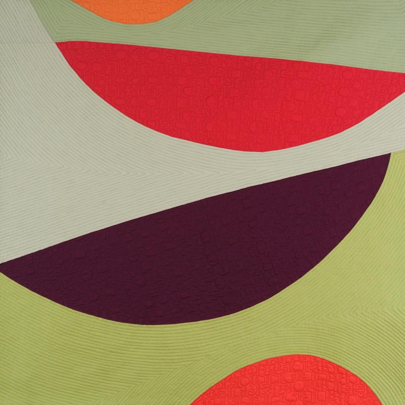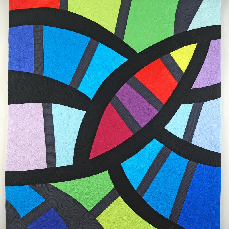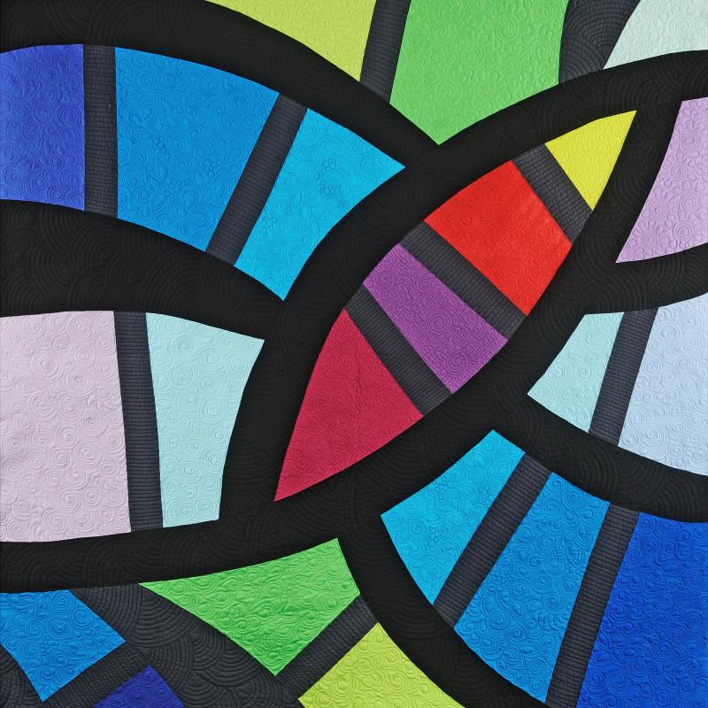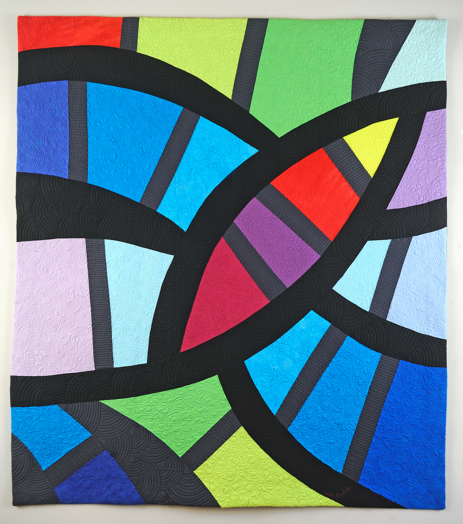 I am an artist, teacher, and author of Artful Improv: Explore Color Recipes, Building Blocks & Free motion Quilting. My abstract art quilts are designed improvisationally without a preconceived pattern, a little bit like jazz music, where each decision about color and shape influences the next. The color is the first step. Putting colors together intuitively, I like to use fabric the way a painter might use paint to create graphic compositions that engage the viewer from a distance, yet invite a closer look. The texture is the second step. The stitching lines provide contrast and dimension to the piece, integrating the different elements into a cohesive whole. I do all my stitching on a sewing machine, but the stitches are entirely hand-driven, without the use of a computer program or marking ahead of time.