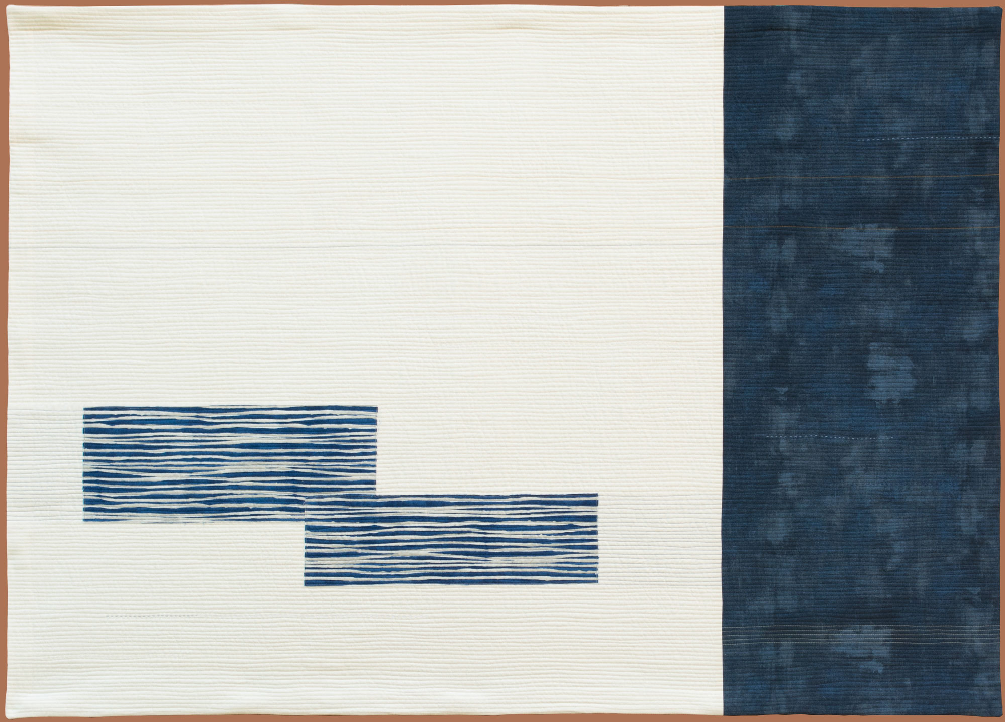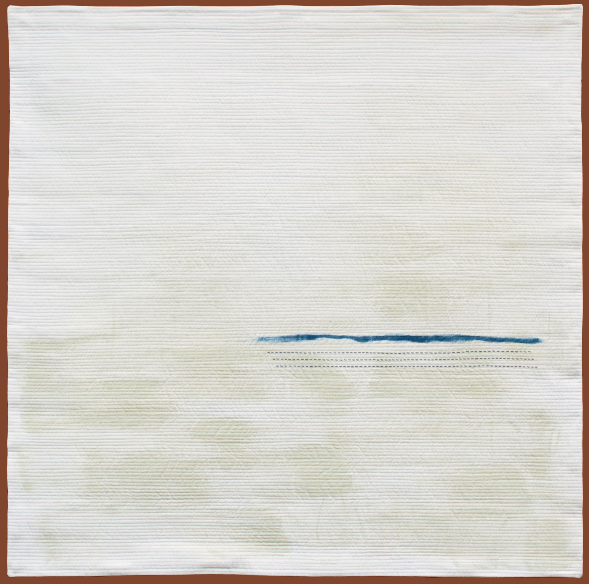 Through much of my work, I have created feelings of serenity and stillness by employing spareness, the soothing effect of horizon lines, and a limited color palette, as well as the comforting familiarity of textiles. Our world changes at a fast pace, and I hope my work provides a place for our souls to pause and be restored.