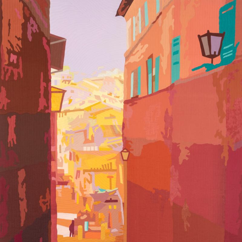 I am influenced and inspired by what I see around me. It can be buildings, landscapes, or designs I see in everyday objects. I look for patterns, textures, and color combinations that can be interpreted in fabric. Nature is a source of constant inspiration for me. I have chosen to work in textiles because they are adaptable to a wide range of processes, and I have been working with some form of fiber for most of my life. It is a medium I can relate to, and other people seem to respond to it.