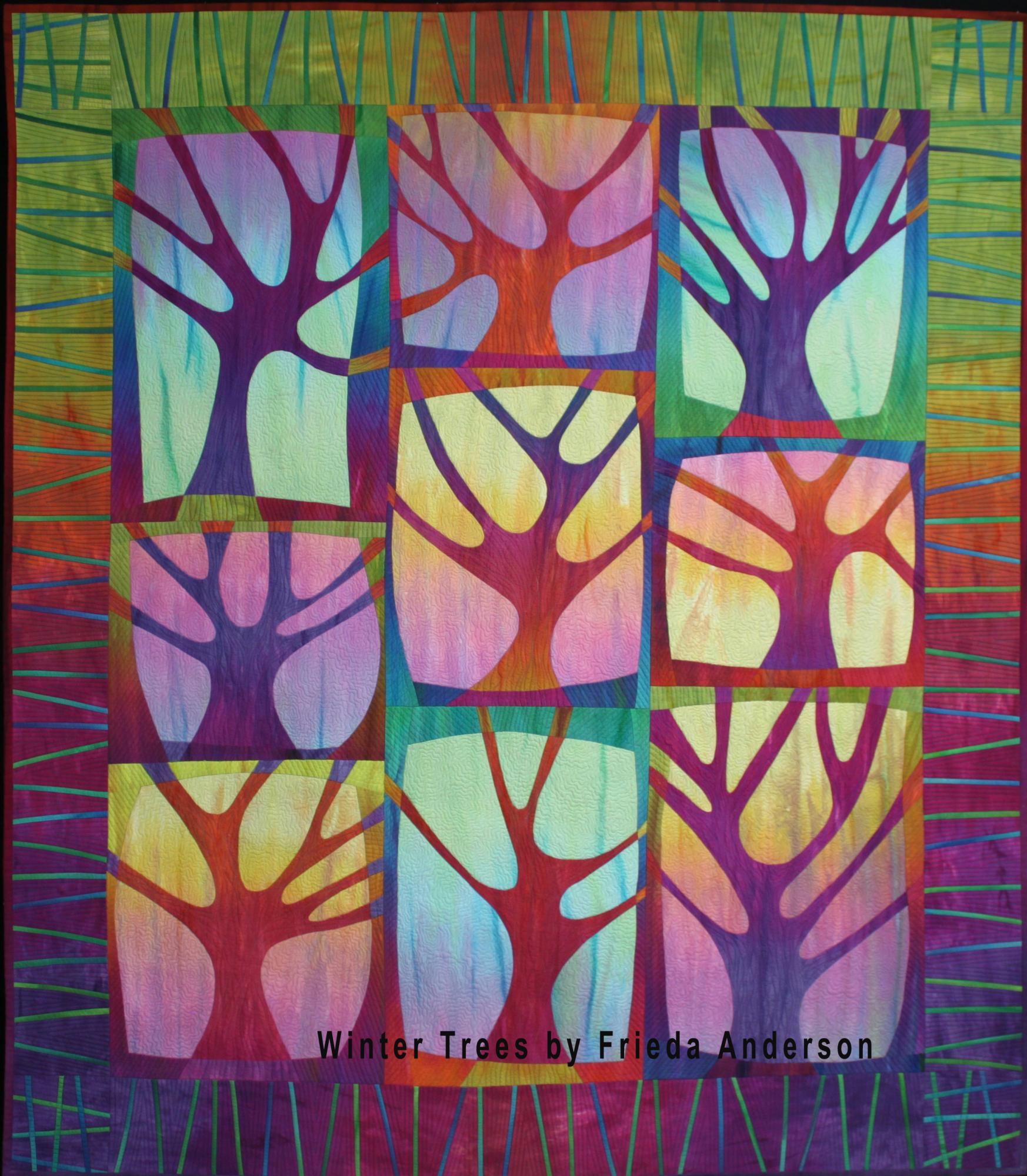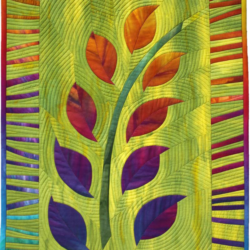 I find each step of quilt making, from beginning to end, a real challenge, and it is hard to say what part I like best. I love the pure creativity involved in conceiving and designing a new quilt. I love to piece and I love to fuse. I have found that by fusing smaller pieces I can work out design issues and then I like to make a bigger bolder statement and piece the same quilt in a large format. My work is machine quilted and nature inspired.