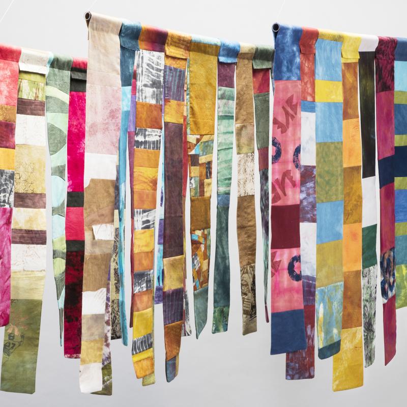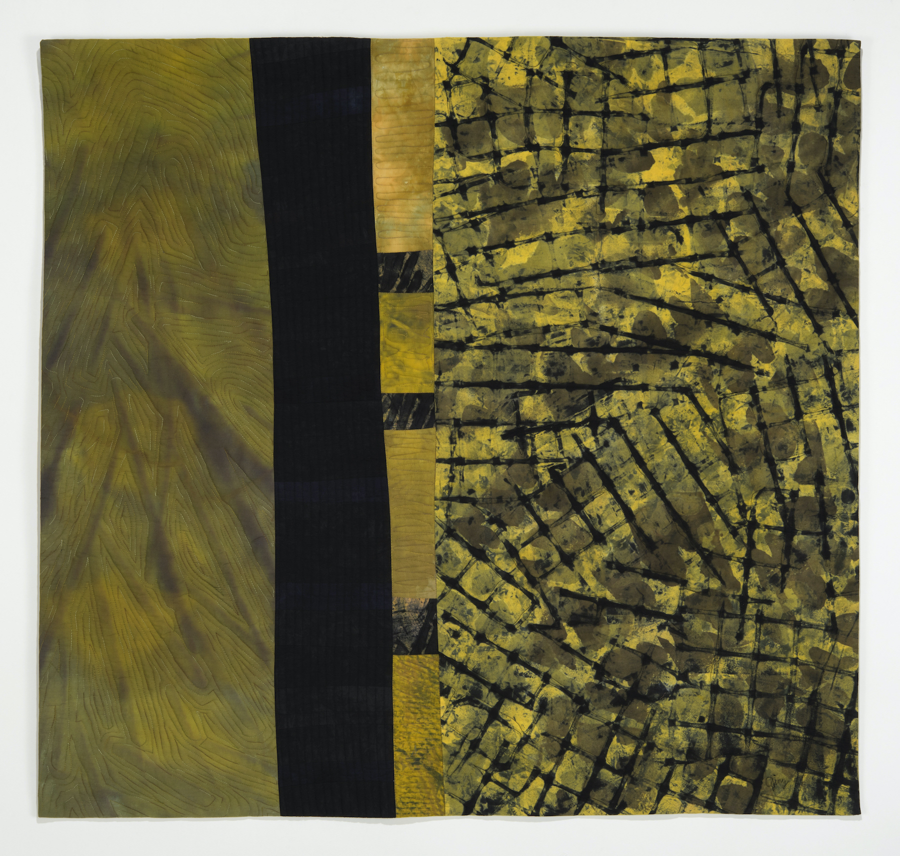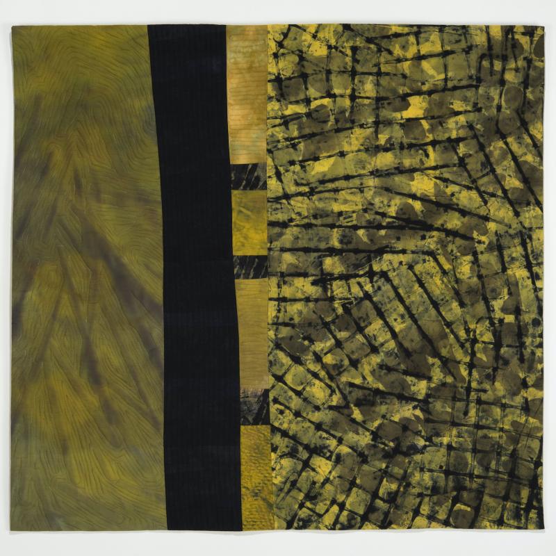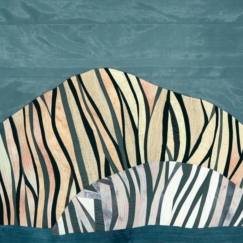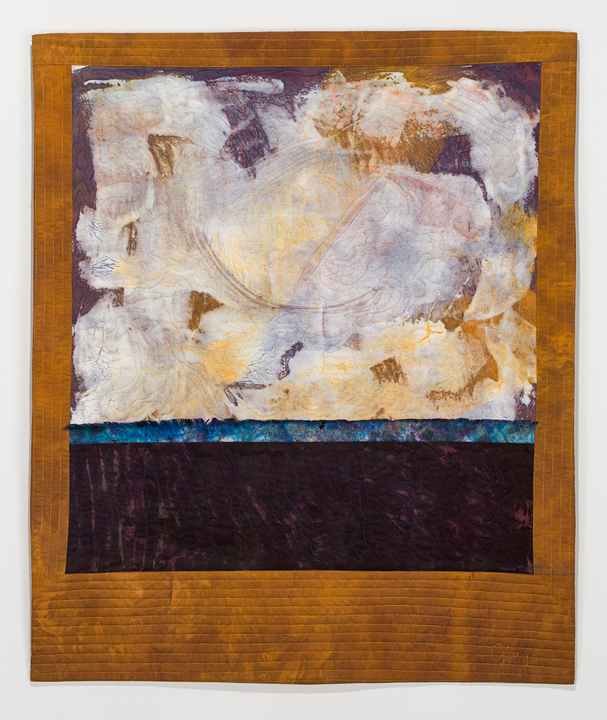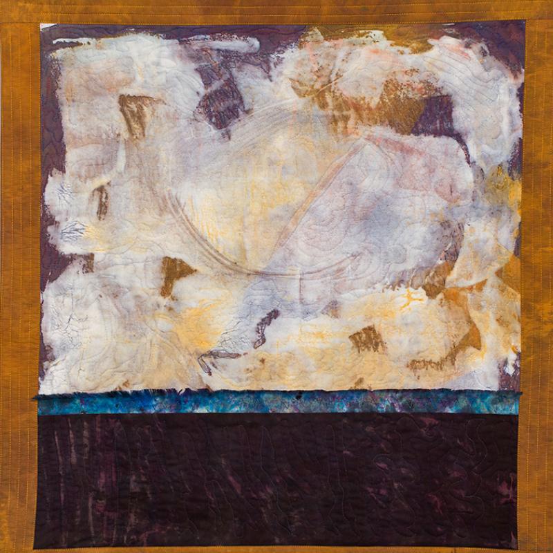 I am a fiber artist that loves to dye paint new and vintage white fabrics, using free form cutting and sewing to build segments of each composition. The quilting design with various kinds of threads and stitching is the final layer.
