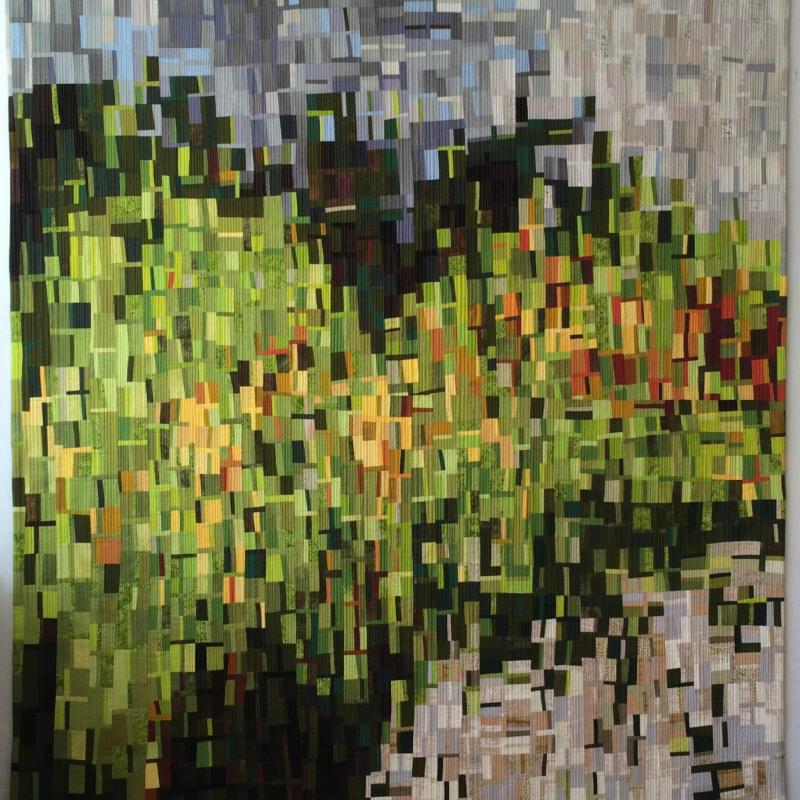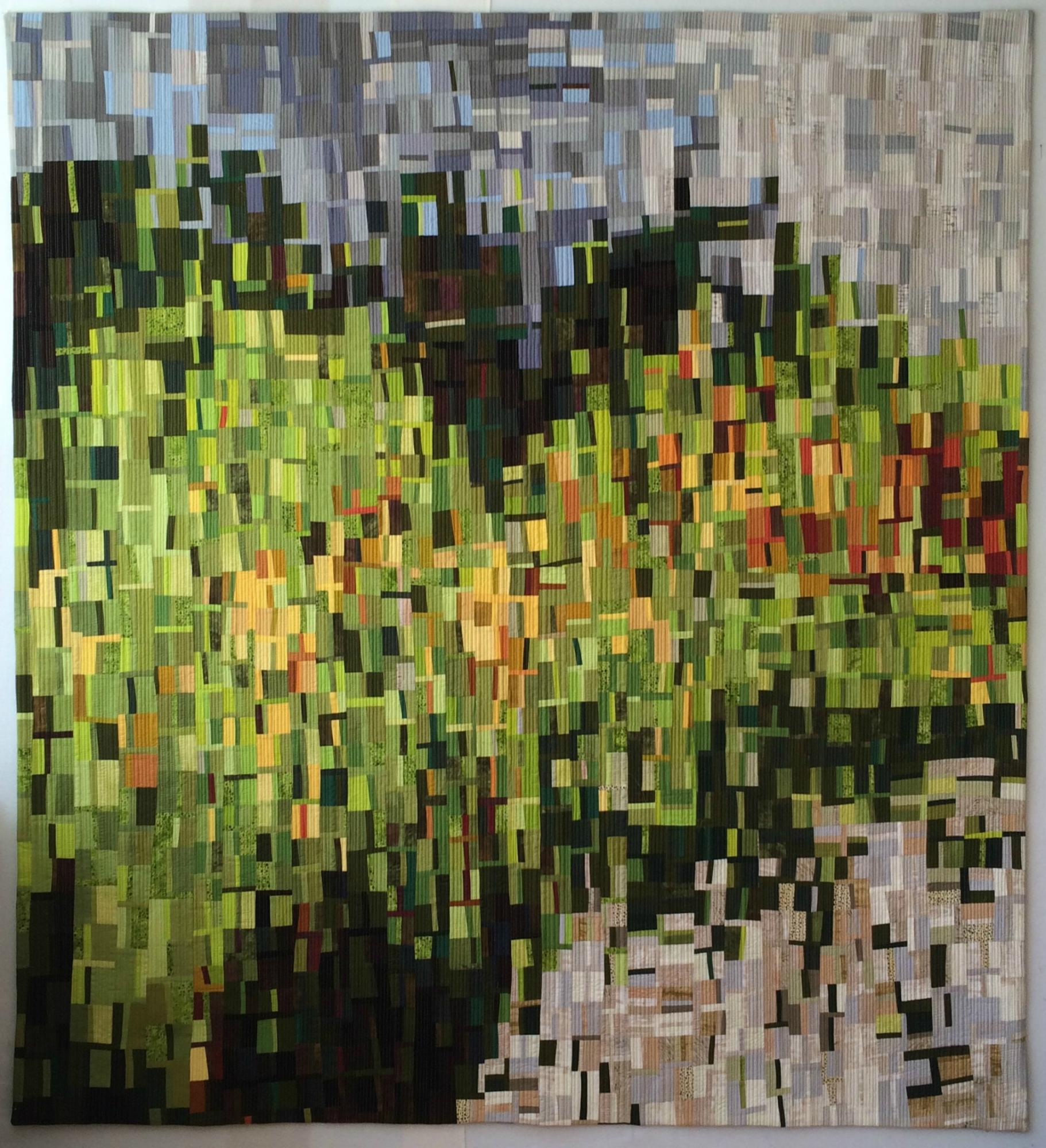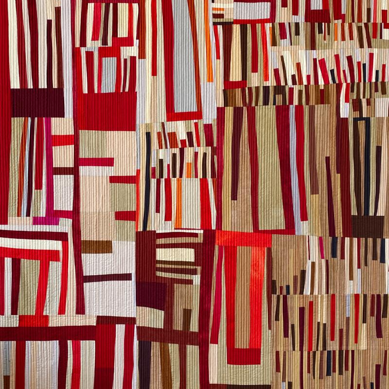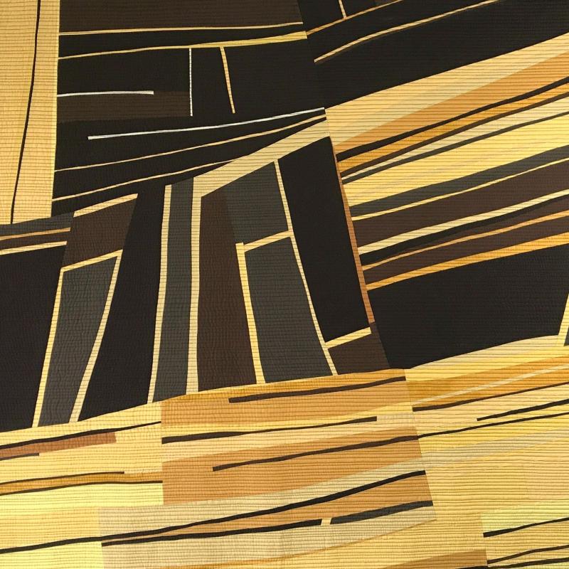 I work in an abstract manner, experimenting with color, line, and shape in constructing geometric and free form compositions. My work is pieced and machine quilted, using both hand-dyed and commercial fabrics. Individual blocks are arranged and layered, the design developing with the changing interplay of colors and shapes. The emerging color/shape combinations constantly suggest new directions to pursue.