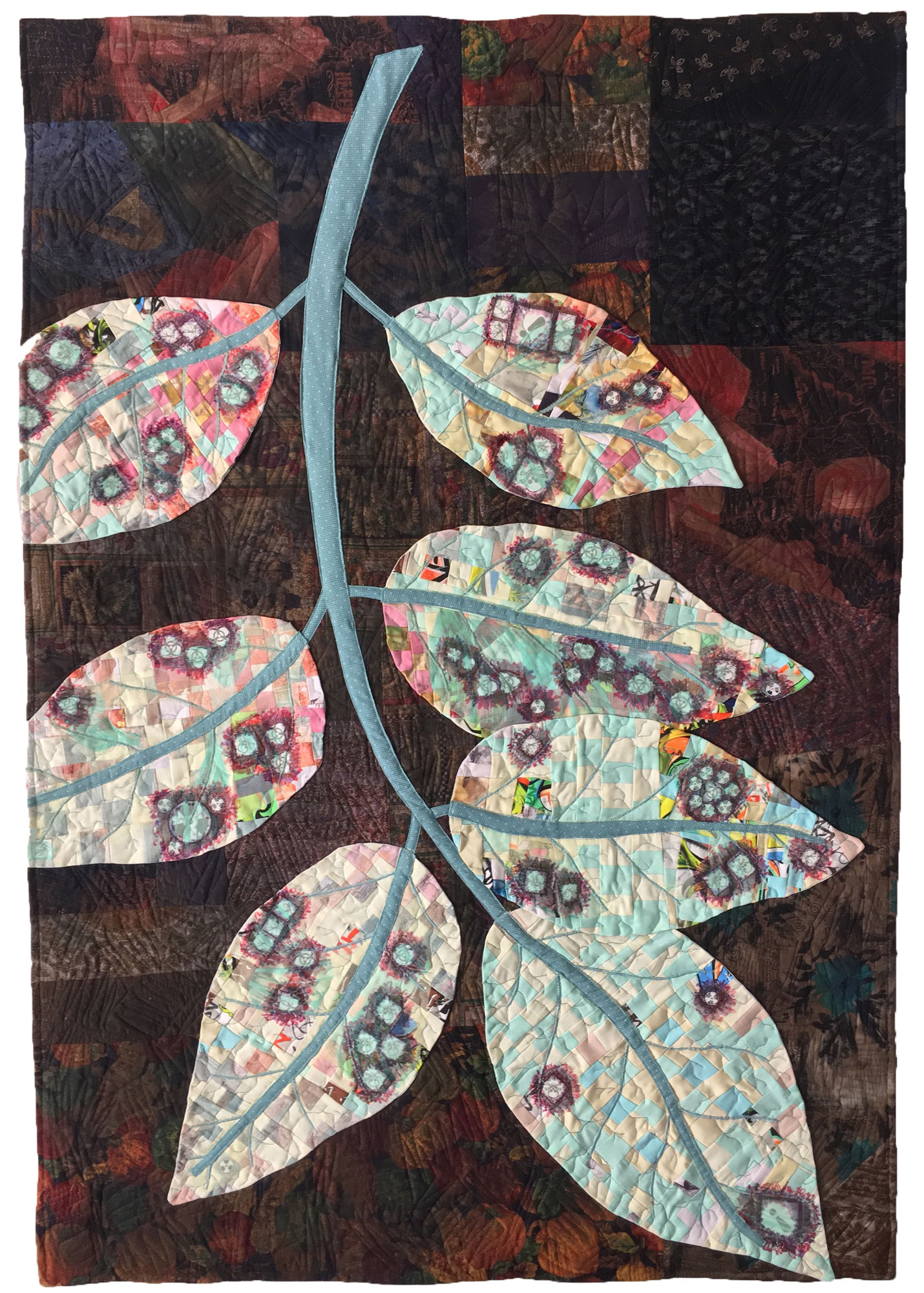 The world we live in, the prairie skies, a garden's cycle of life – these natural elements inspire Himsl’s work. Using hand-dyed, painted, repurposed, and commercial fabric, Himsl interprets nature in macro and micro dimensions. By melding realistic and abstract images, Himsl offers her vision of the environment.