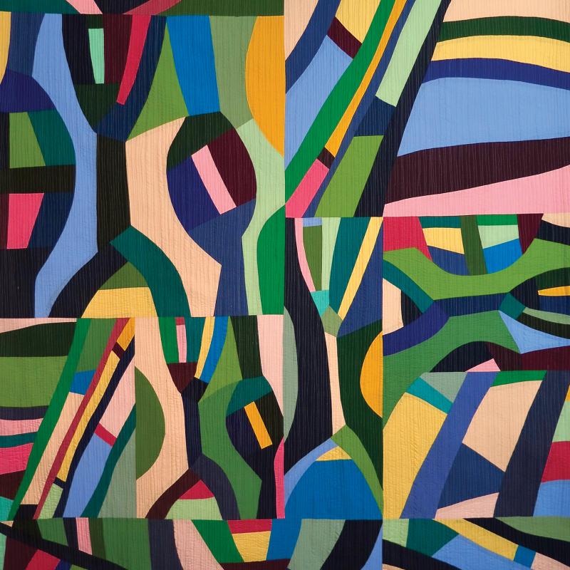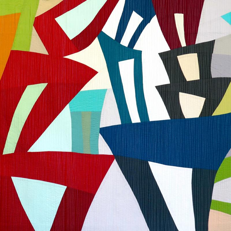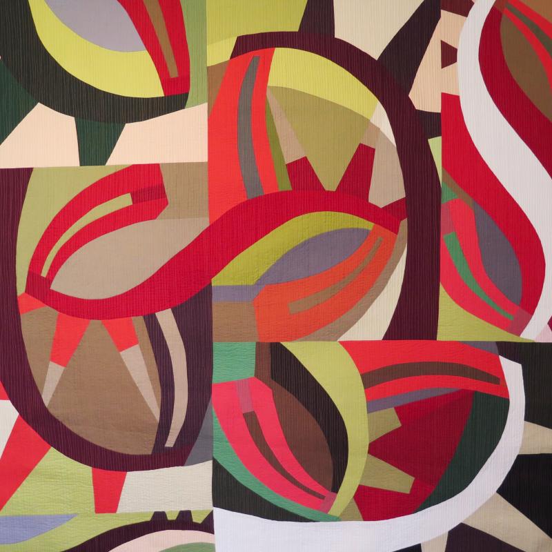 Nature evokes beauty and calm and sometimes a whimsical sense of humor. Nature is an invitation to create. Combining my family tradition of quilt-making and working the land, I employ traditional methods to create lyrical designs. Using colorful hand-dyed and commercial fabrics, I stitch the exquisite colors, lines, curves, and shapes found in nature. From the purple prairie coneflowers of my windswept front yard to the columbine in the protected woodlands behind my home, flowers are an inexhaustible source of inspiration for my art quilts. Using nature’s wondrous sense of humor, I sew accents of unusual colors into my quilts to surprise the viewer and amuse myself. Observing, appreciating, and respecting the wonders of nature enables me to view each morning with excitement and anticipation for the studio.