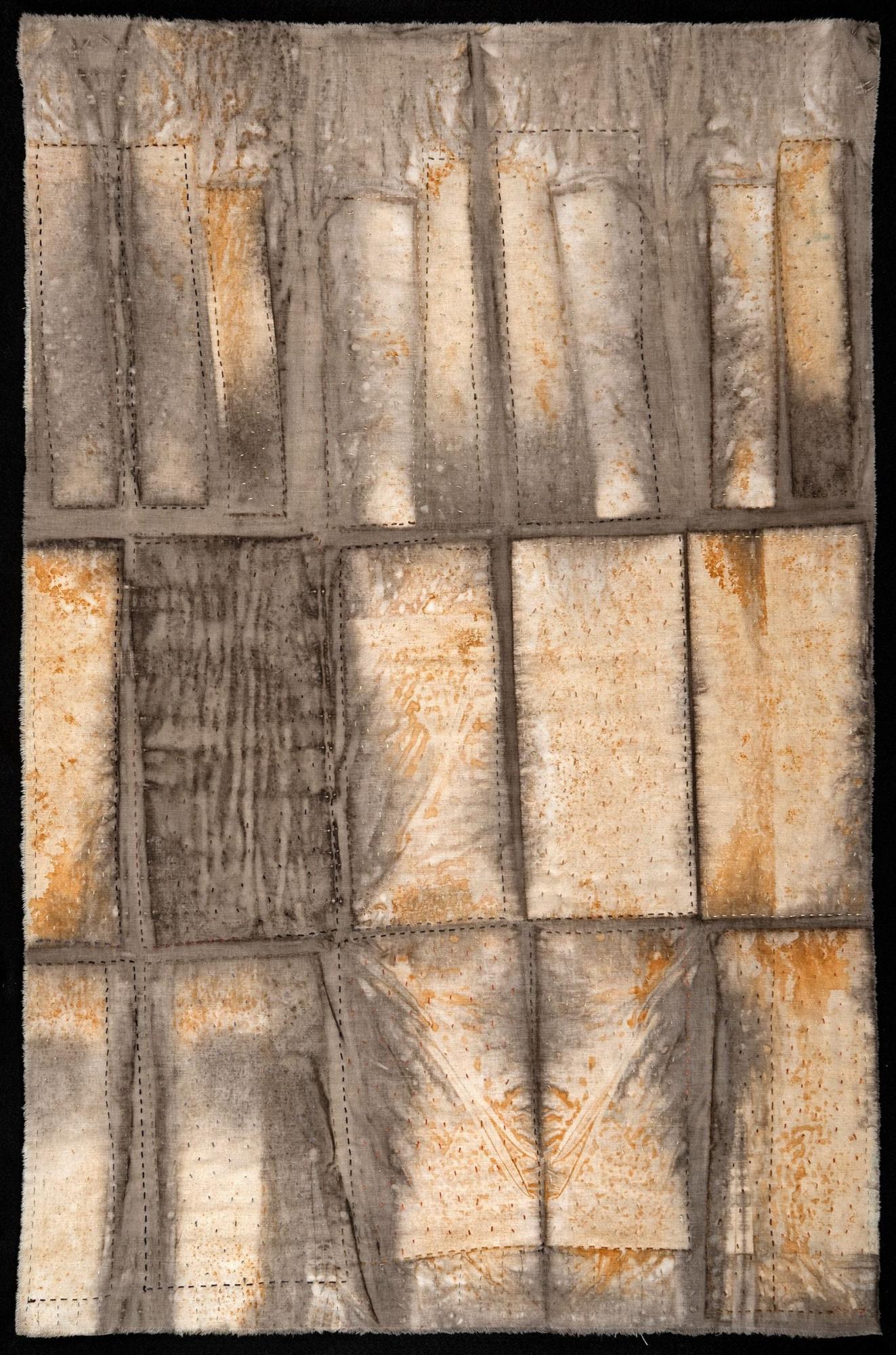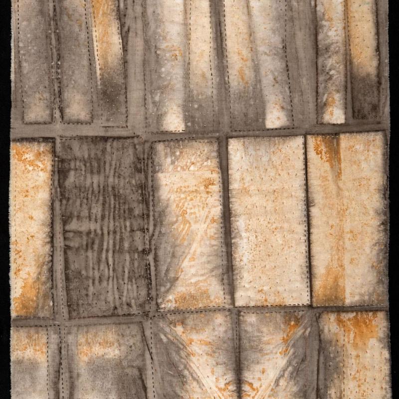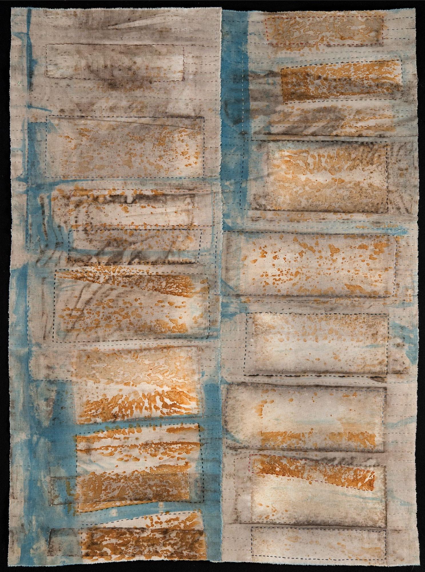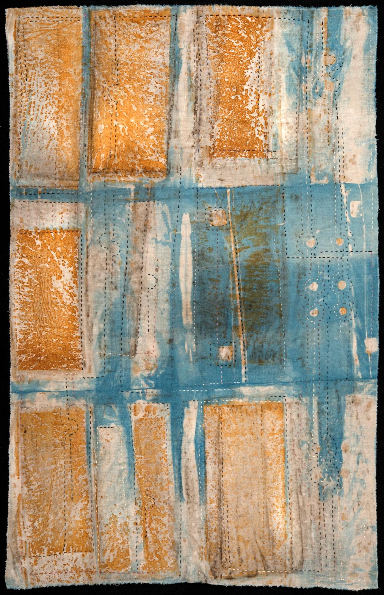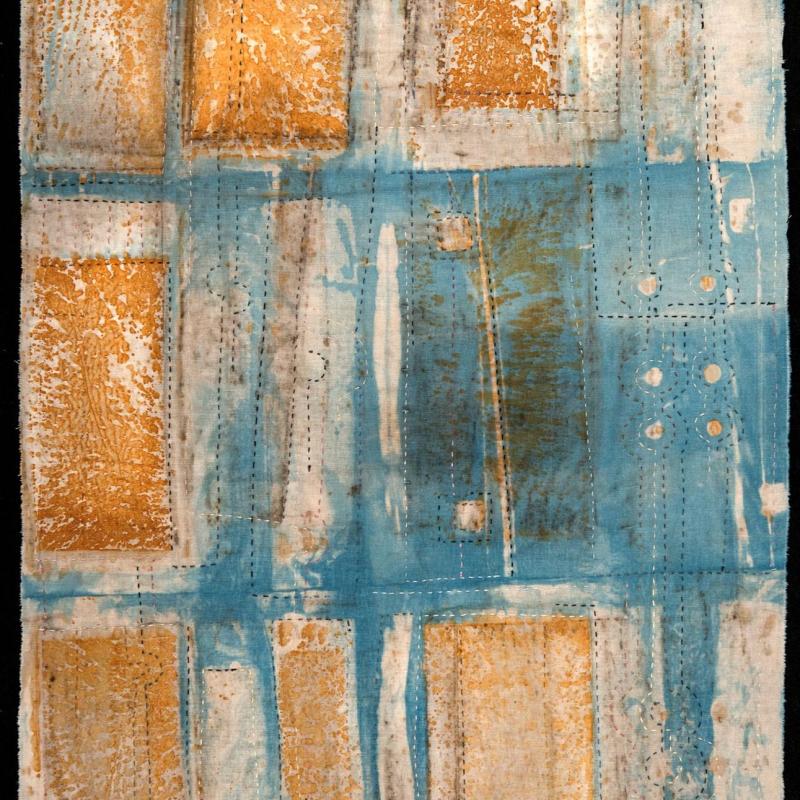 I am drawn to handmade fabrics to express my ideas. My emphasis is always on strong composition, which reflects the spontaneous way in which these fabrics were created. The fabrics seek to express ideas that I am currently exploring. My current work is based on the changing realities of what is happening in the environment. Earth tones and a range of cool colors are the elements that I have been inspired by in my new work. Collaging and hand stitching are used to put my compositions together. The final layer is either hand stitched or knotted.