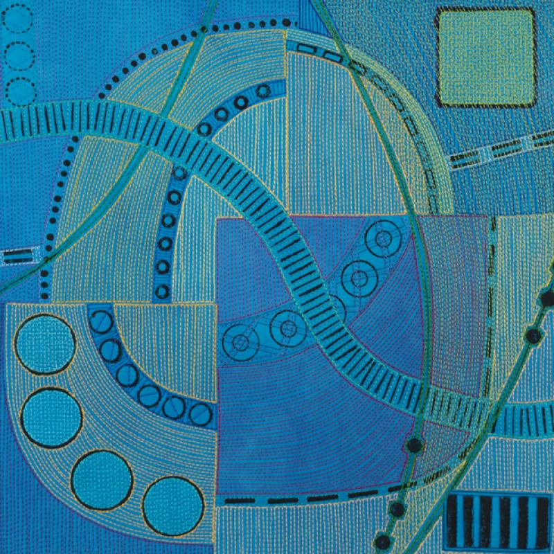 Lisa Call’s contemporary textile paintings explore pattern, connection, memory, and adventure. The influence of her extensive background in computer science can also be spotted in her bold geometric compositions and abstracted landscapes.